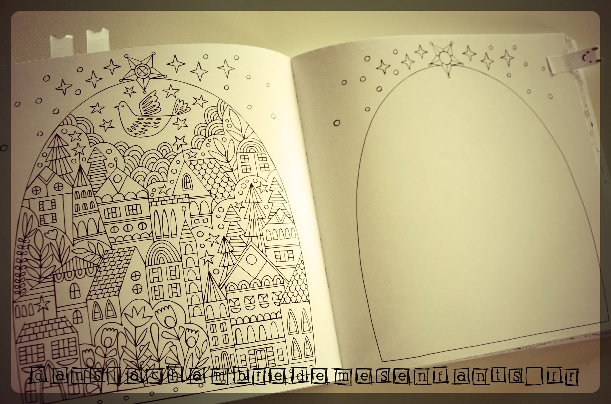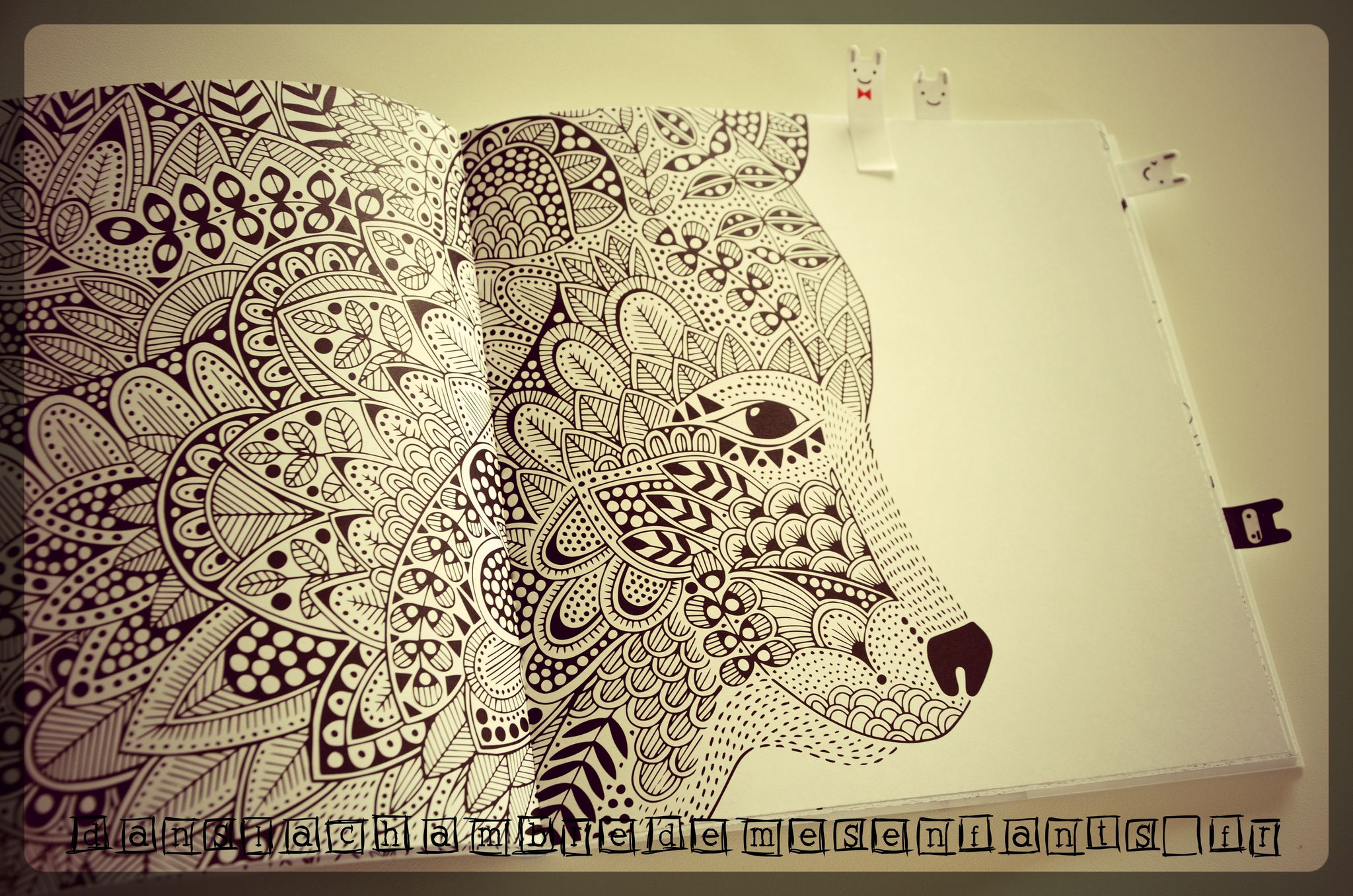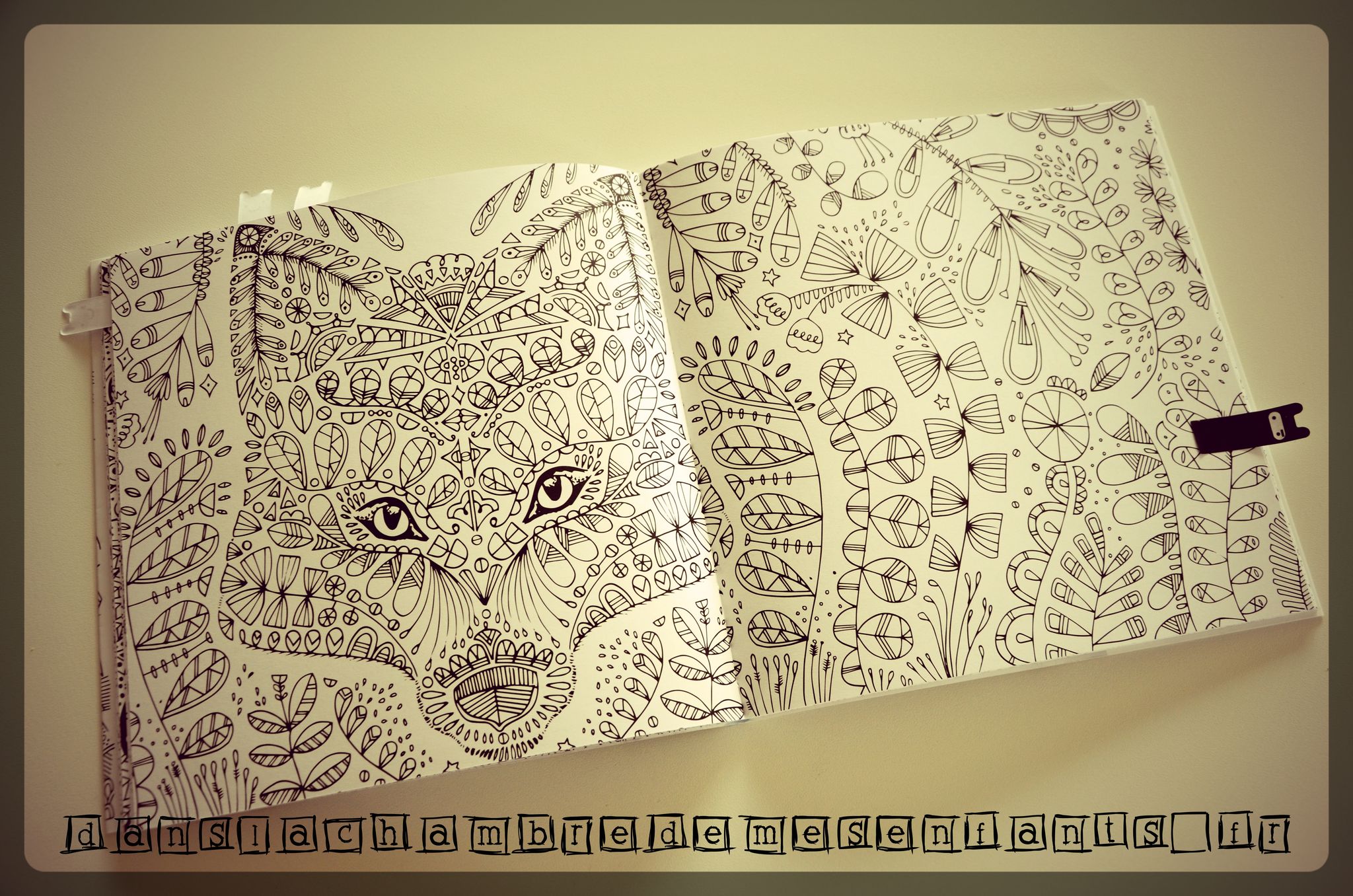 L’avis des enfants : « Trop beau ! » 🙂 L’admiration du début a ensuite laissé place à un peu de crainte pour colorier sans déborder ou pour le choix des couleurs afin de le conserver aussi joli, mais les espaces laissés libres de création sont un très bon moyen de se l’approprier. Décidemment, il est traité en petit bijou du genre ! (j’y vais fort ?! quand on aime…)