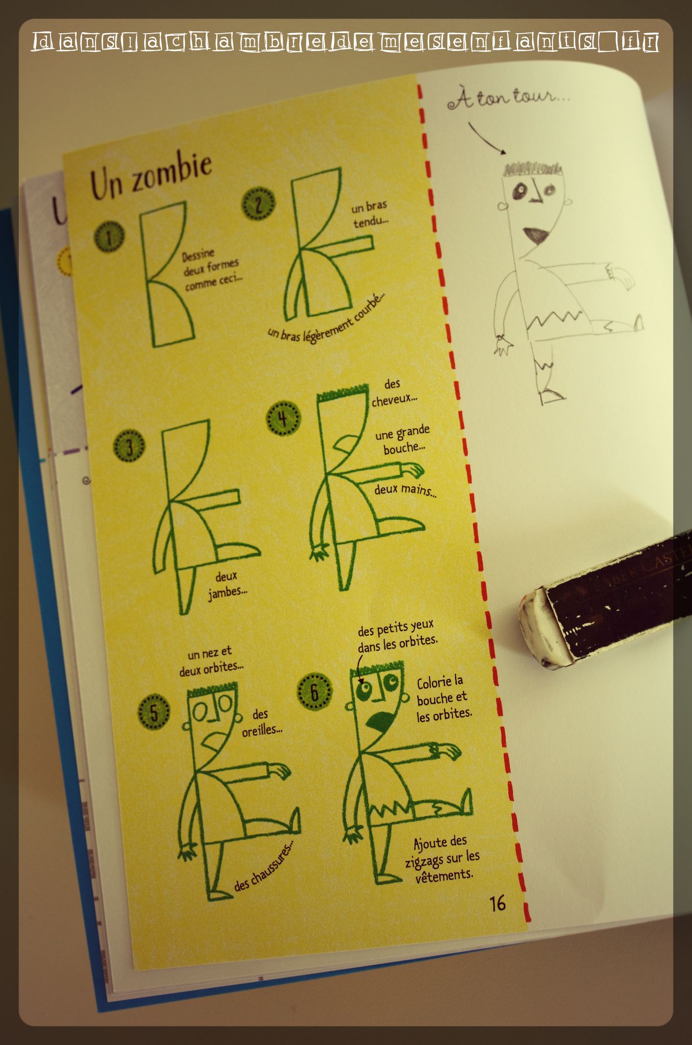 Ce livre est bien réalisé, de qualité et pertinent, si bien que les adultes apprécient aussi l’exercice. En effet, mon papa testeur s’est prêté au jeu spontanément et il a réalisé un zombie (j’ai ajouté la photo à l’article 😉 ). D’autres thématiques existent mais j’ai trouvé plus intéressant de s’attarder sur les personnages car c’est l’élément qui se répète le plus dans les dessins d’enfants tous âges confondus.
