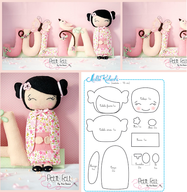 Il y a donc : le kit à coudre complet de Lila fait des bulles à 29 €, le tuto d’Alice au Pays des Merveilles (feutrine), le tuto d’une poupée de chiffon simplifiée de Viliv, le Tuto poupée de chiffon gingermelon_doll par Michelle Down en pdf (source : http://gingermelondolls.blogspot.fr ), le patron d’une poupée en feutrine (voir ci-dessous la photo qui suit le visuel de la poupée), le tuto poupée en feutrine Reine des Neiges de Meia Tigela, le patron de la poupée de chiffon Kokeshi (voir ci-dessous avec le visuel), le tuto poupée de chiffon de Mimin dolls, le patron (à télécharger) poupées en feutrine Petit Chaperon rouge et Loup de Kosucas à environ 7 €, le patron (à télécharger) poupée en feutrine Dark Vador de Kosucas à environ 5 €, le kit poupée Waldorf à personnaliser de Littlemissw à 68,00 €, le patron (à télécharger) poupée en feutrine Maléfique de Kosucas à environ 5 €, le patron de poupée en feutrine Alice de Meia Tigela (voir ci-dessous avec le visuel des poupées), le kit complet poupée de chiffon Tilda de Sweetheart à 29,99 €, le patron de poupée en feutrine Blanche Neige de Erica Catarina (voir ci-dessous), le patron (à télécharger) poupée en feutrine Peek-a-boo fox de Gingermelon à environ 8 €, le DIY poupées en tissu des Fashion biches, le patron (à télécharger) poupées en feutrine sirène et ange de Gingermelon à environ 14 € et le kit de couture poupée Kimono de Wuwu à 18,00 €.