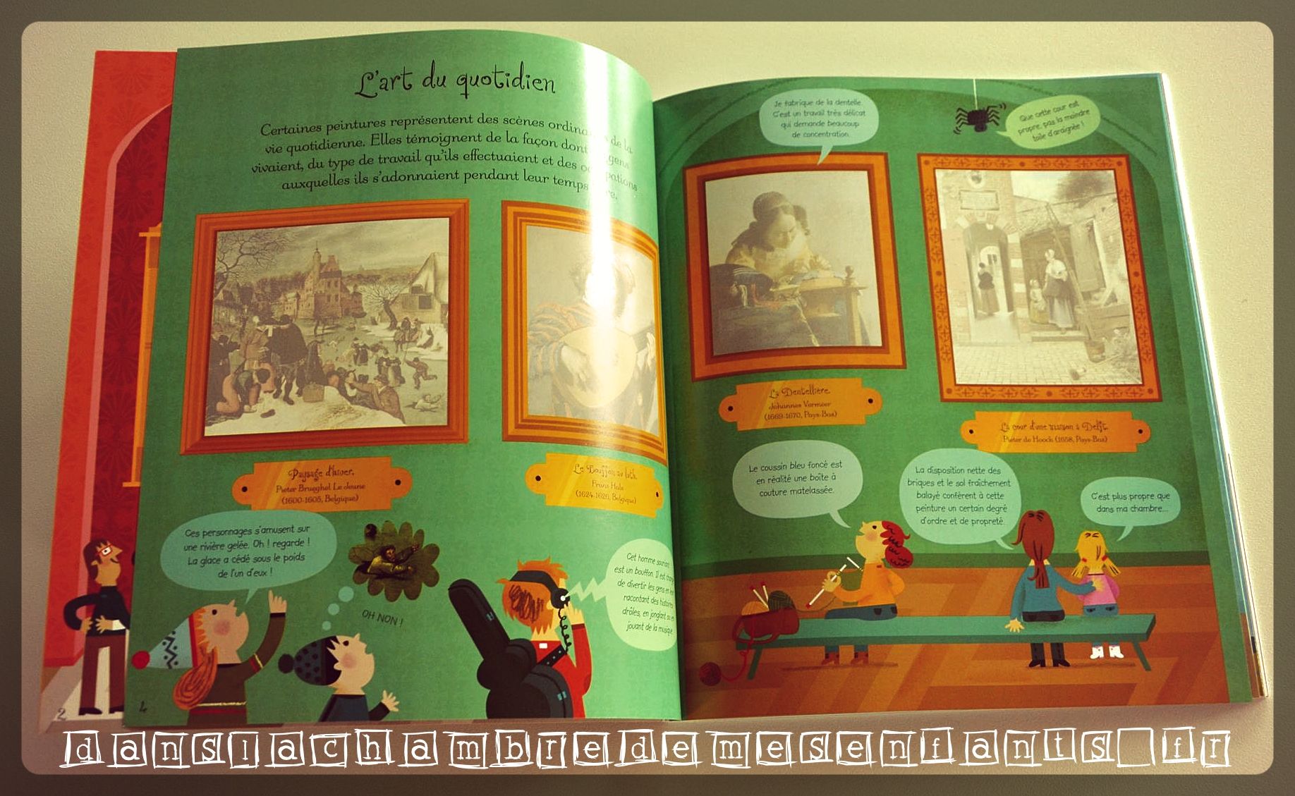 L’avis des enfants : C’est bien sûr moi qui ai sélectionné cet ouvrage mais Alex s’est laissé tenté par sa découverte. Il a aimé le fait qu’il puisse apprendre des choses réelles, avoir des explications sur des scènes ou des personnages qu’il ne connaît pas. Il n’a pas souhaité le regarder en entier de suite mais en plusieurs fois. A chaque nouvelle visite (on retourne à la galerie !), il a été très attentif et le but est bien qu’il l’entreprenne avec plaisir, à son rythme.