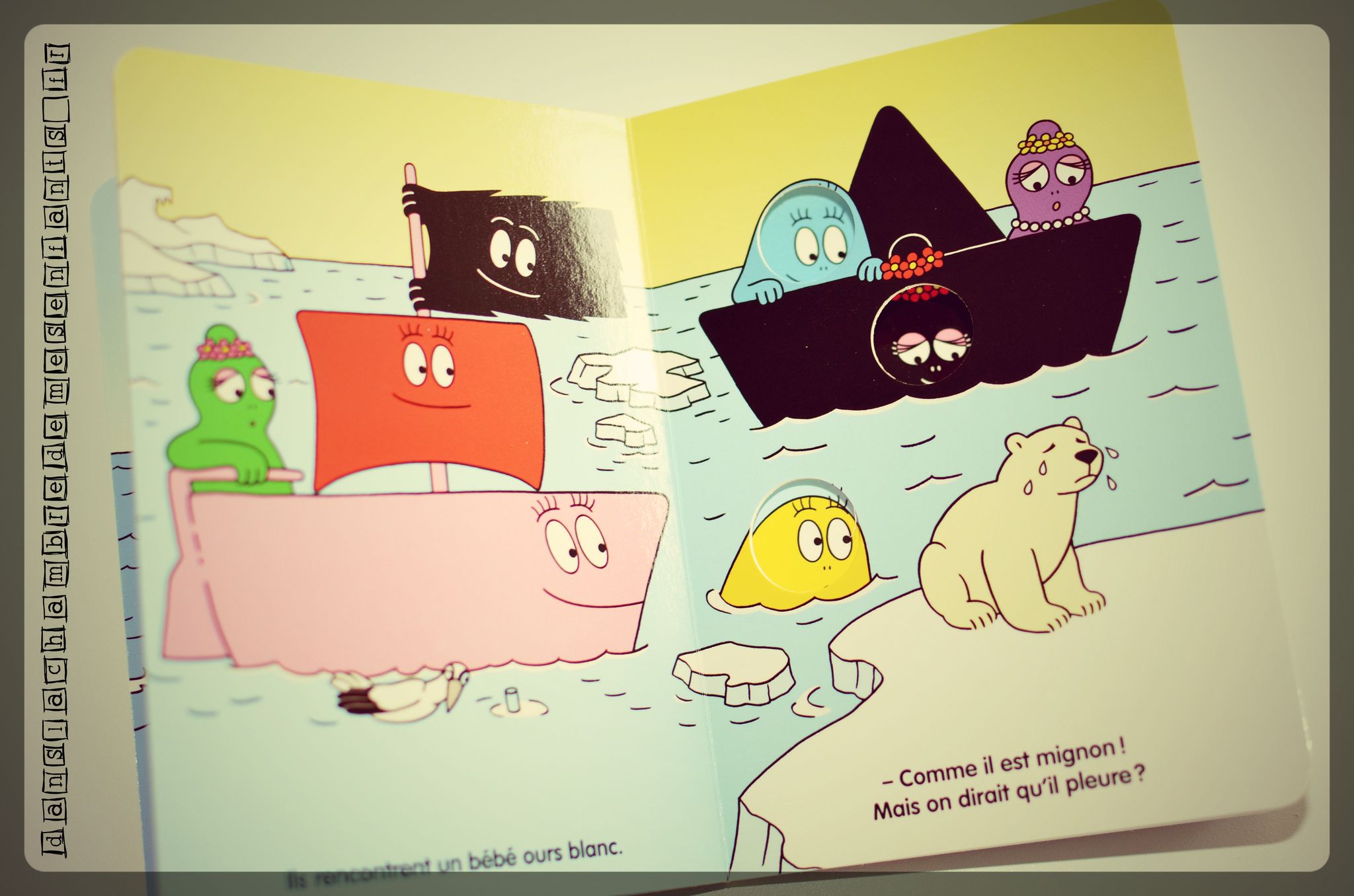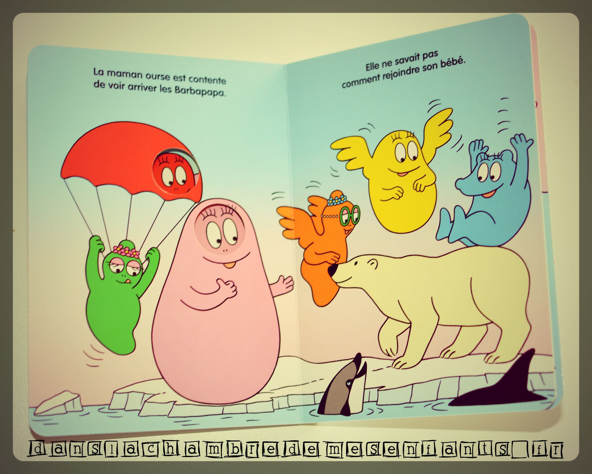Partis pour rendre visite aux phoques de Scandinavie, les Barbapapa découvrent un ourson sur la banquise à la recherche de sa mère. Ils ne manqueront pas d’imagination pour se transformer et ils finiront (bien sûr) par réunir la famille de cet ourson. Au passage, on découvre des phoques, une baleine et d’autres animaux qui plaisent bien aux enfants.