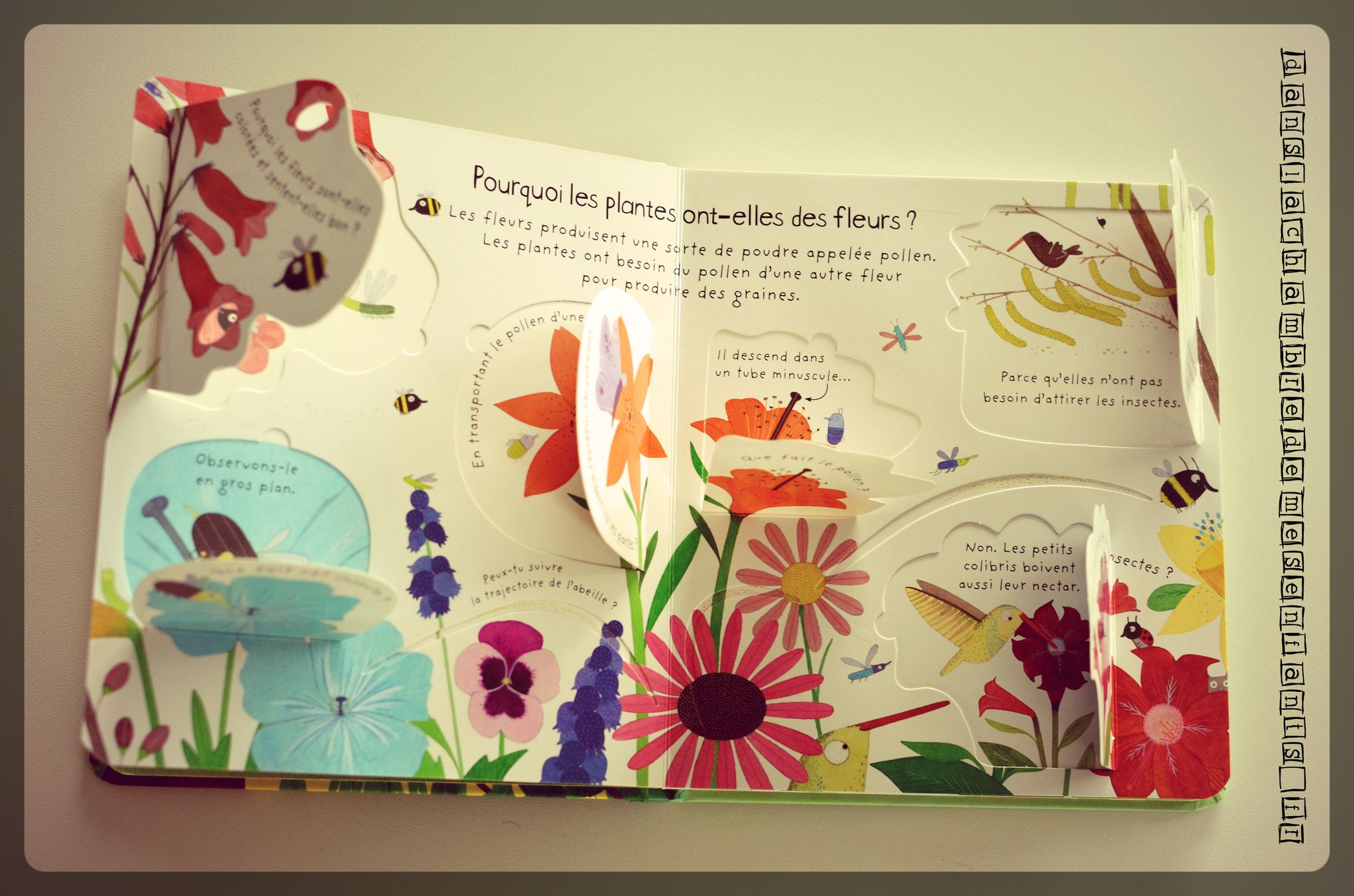 L’avis des enfants : Alex connaissait cette collection mais il lui restait encore plein de questions en stock. Savoir si toutes les plantes poussent des graines ou que fait le pollen, ce sont des points qu’il était curieux d’éclaircir. Ce livre le fait en peu de mots, simplement et les illustrations permettent d’en faire une bonne projection. Avec les jeux de rabats, la découverte capte encore plus longtemps l’attention de mon fils. Et des questions, il en a même trouvées avant même d’y avoir pensé comme « Les fleurs n’attirent-elles que les insectes ? Non. Les petits colibris boivent aussi leur nectar ainsi que certaines chauves-souris la nuit. » Alors là, il est bluffé !
