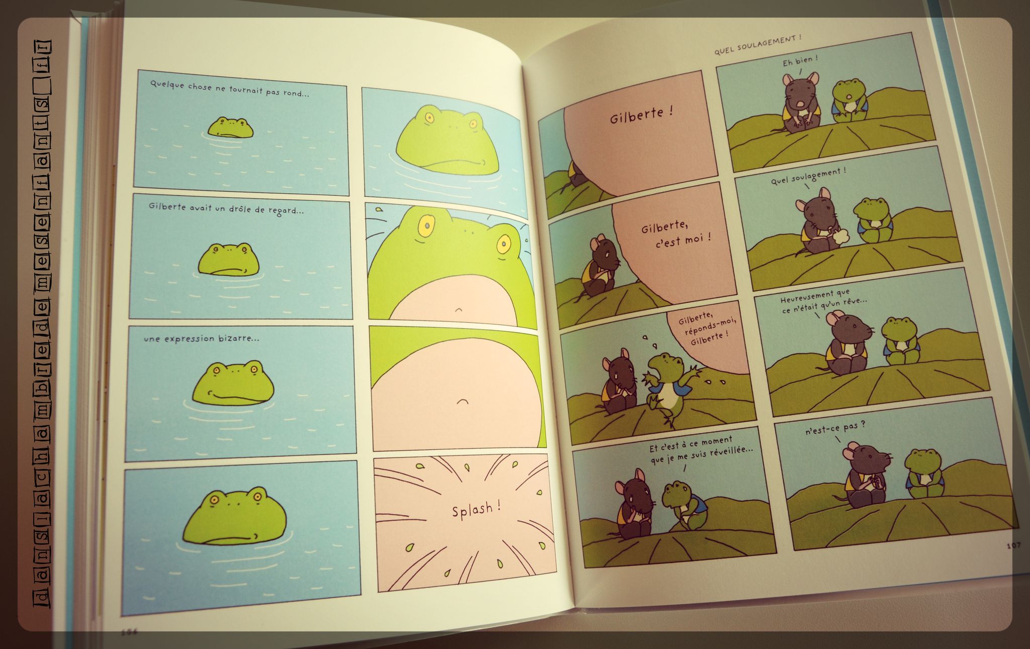Les réflexions d’une grenouille avec un côté naïf, gentil, curieux, amusant, parfois même poète, tout cela à travers une BD au style japonais (comme son papa).