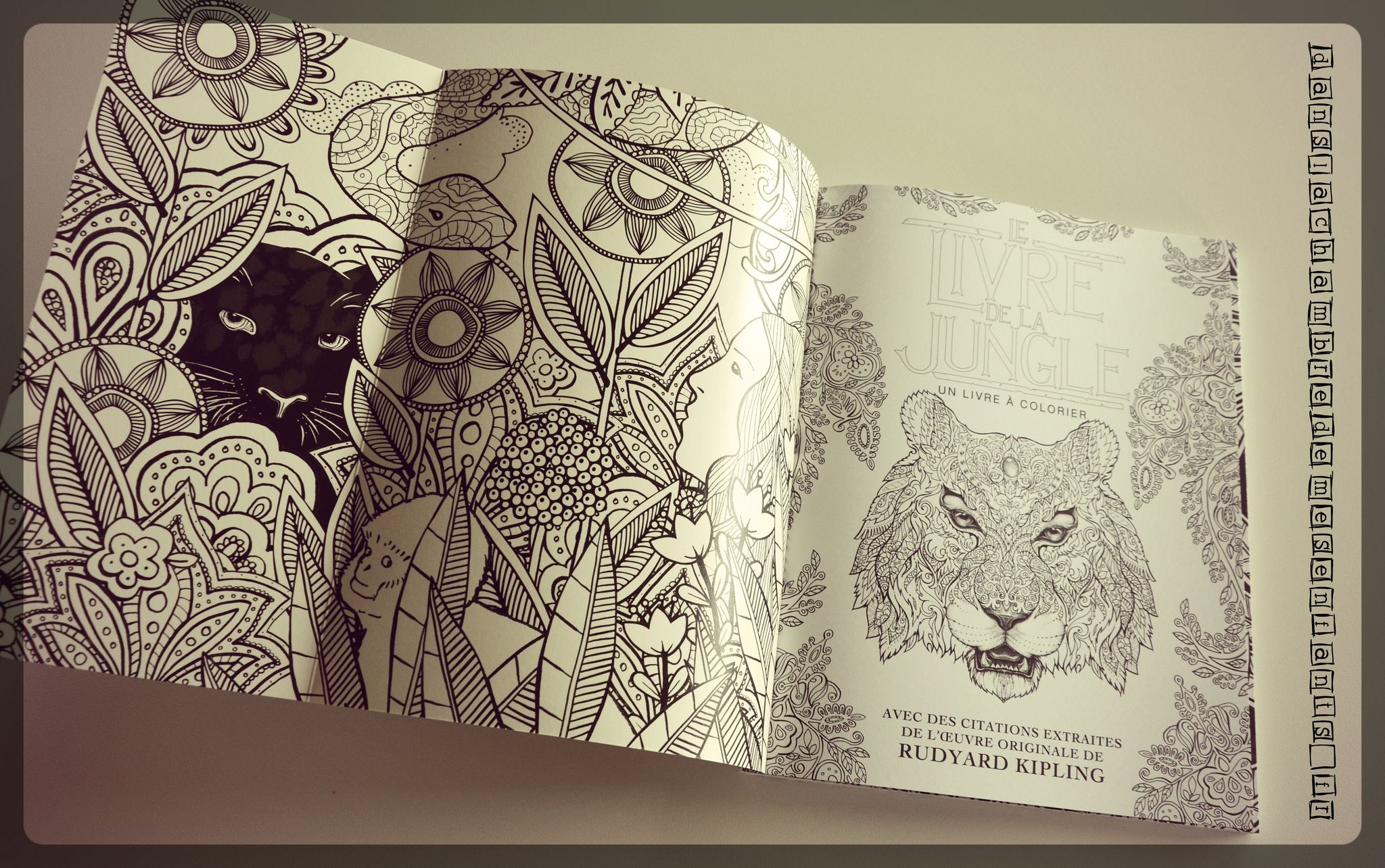 Voici mon dernier chouchou en date (il y en aura d’autres bien évidemment ! 😉 ) dont je vous ai parlé sur les réseaux sociaux. J’avais déjà noté votre intérêt pour les beaux livres de coloriage et, moi-même, je me suis surprise à aimer le coloriage avec « Merveilles de l’hiver ». A la veille des vacances et à l’approche de l’été, c’est dans l’univers du Livre de la jungle que je vous emmène cette fois.