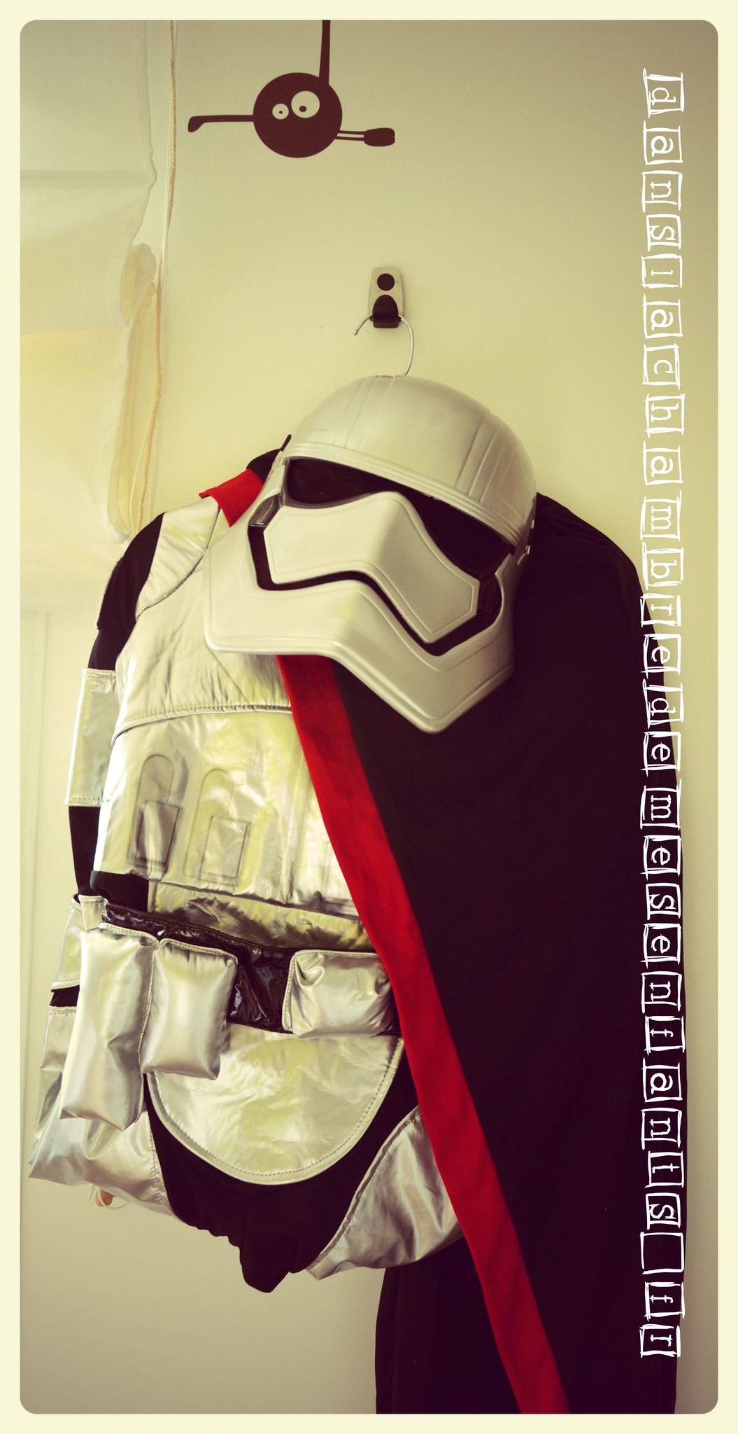 Je vous ai déjà parlé de la bonne qualité et des détails des costumes, voici le dernier venu dans la chambre d’Alex (chut ! ce sera pour son anniversaire) : le costume de Captain Phasma à 27,40 € qu’il convoitait tant !