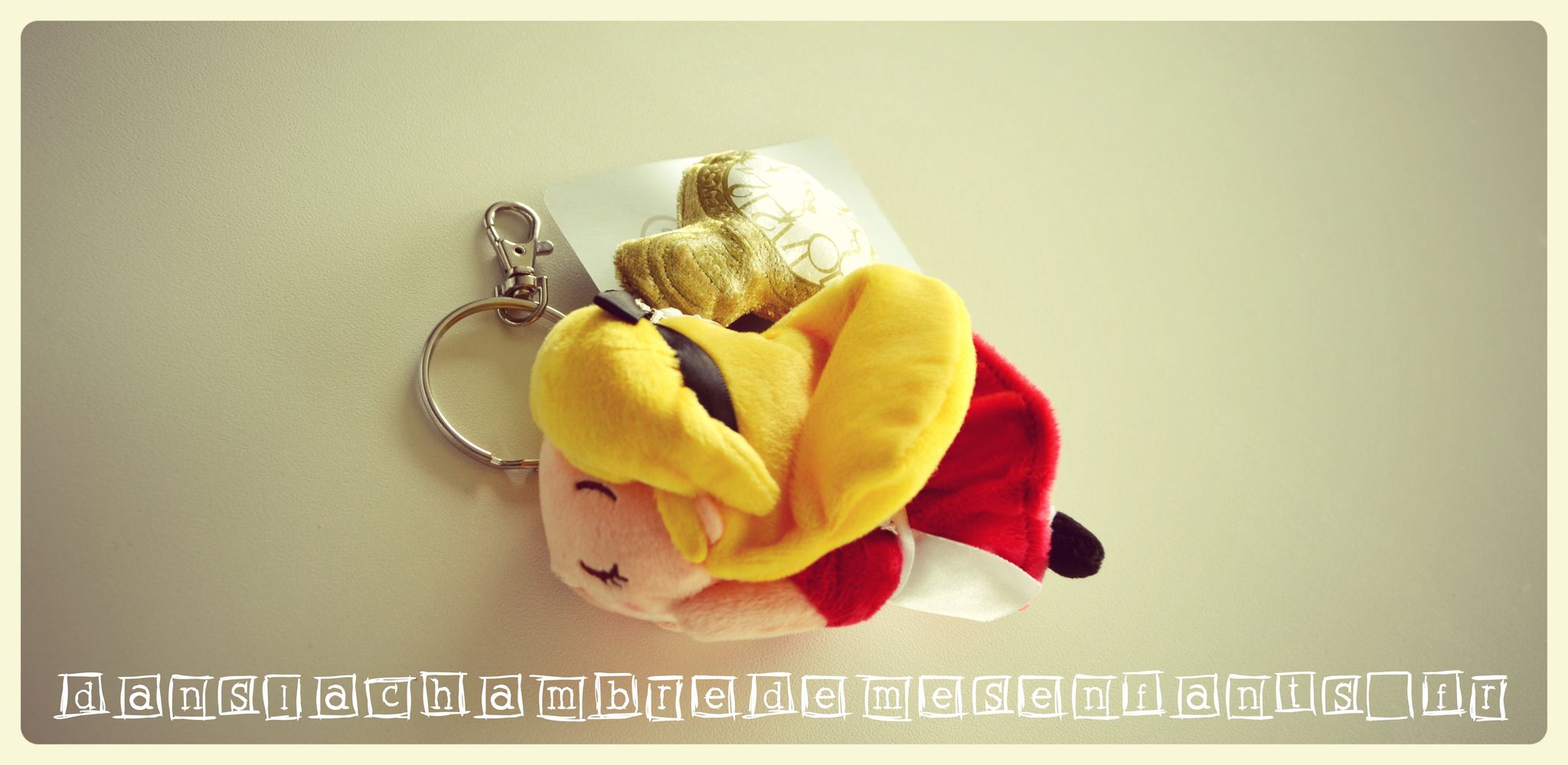 J’avais flashé depuis longtemps sur le porte-clés Alice aux pays des merveilles à 6,93 € et j’avoue qu’il est assez volumineux : tant mieux car j’utilise les porte-clés fantaisie pour agrémenter les sacs et bagages de mes enfants. Il est en tissu, très bien fait et adorable ! Il sera parfait sur le sac de week-end d’Emi que je vous ai déjà présenté précédemment (voir le lien en bas de page).