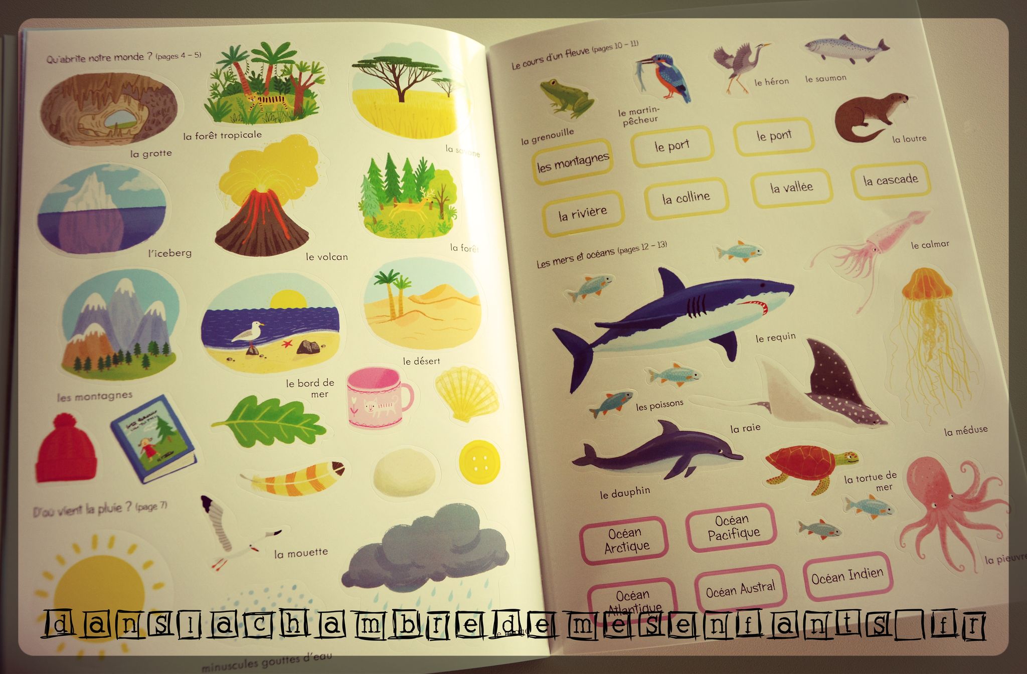 Si cet ouvrage ressemble à un joli cahier d’activité, ce n’est que pour être plus agréable aux enfants et leur rendre accessible la visite de notre monde. En effet, les illustrations sont très présentes, colorées, et assez fidèles, notamment les autocollants.