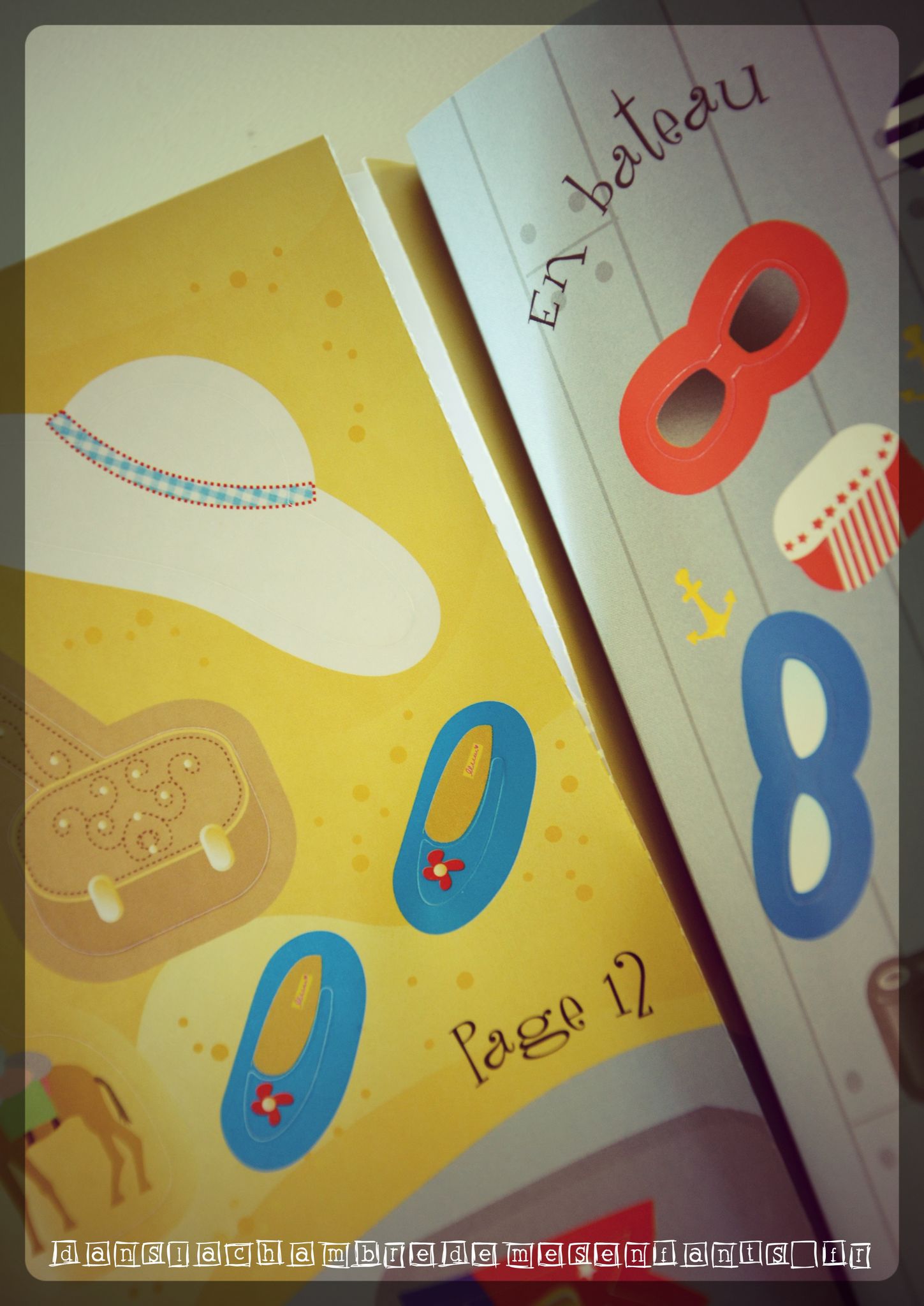 L’avis des enfants : Alex a souhaité compléter cet ouvrage non pas pour son sujet mais pour le type d’activité. En effet, il a 5,5 ans et, en ce moment, il a envie de faire des activités avec des stickers. Il a trouvé les illustrations jolies mais certains autocollants étroits ne lui ont pas facilité la vie et le décollement de nombreuses pièces l’a agacé. Il a terminé l’activité avec moi car j’ai souhaité vérifier la difficulté : en effet, s’il est vrai qu’Alex ne prend pas le temps de bien appuyer sur les contours de chaque sticker, le détachement du bord des pièces a été quasiment systématique.