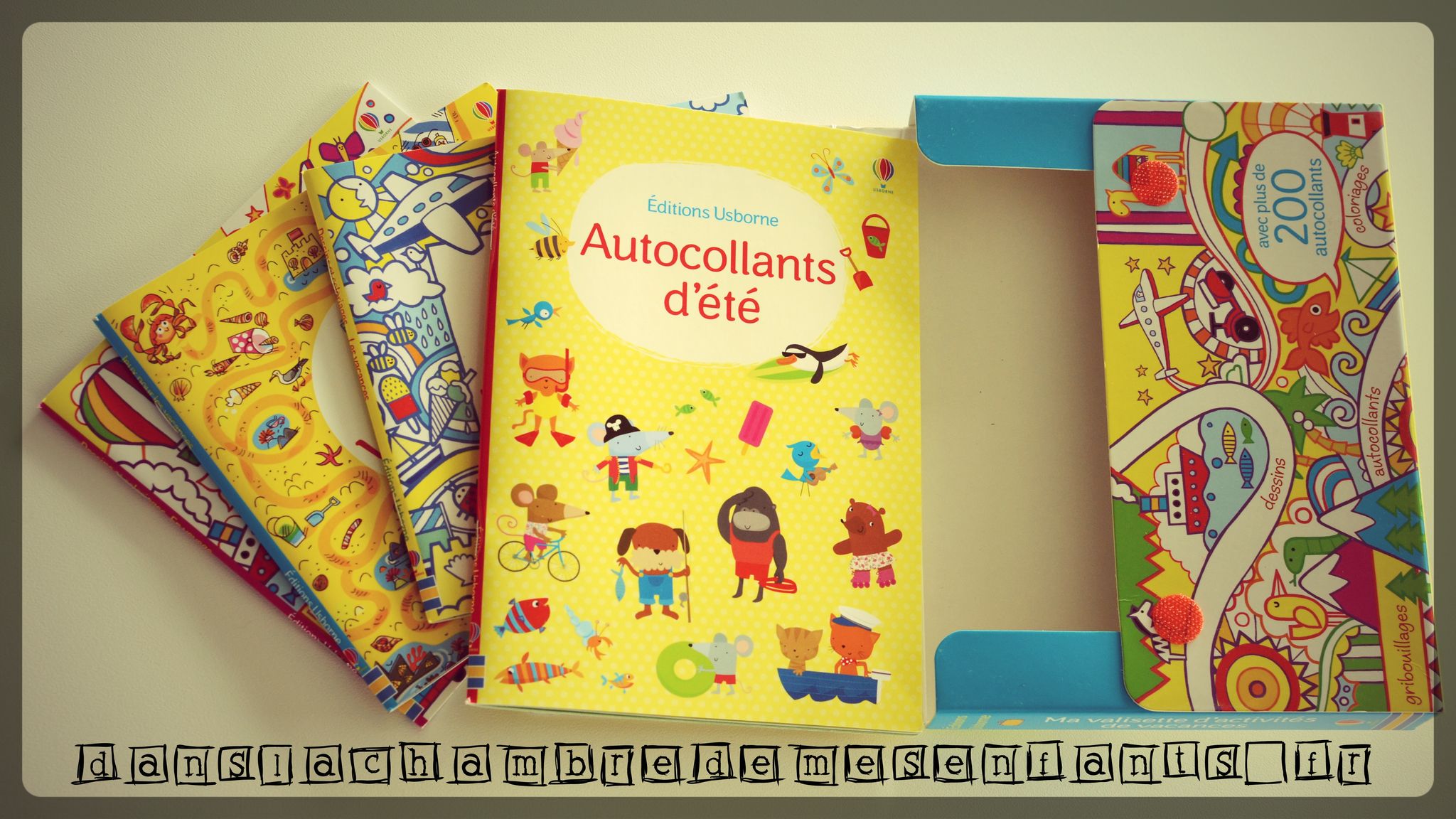 Il est aussi possible de se détendre avec une variété de jeux sans vouloir s’attarder sur un apprentissage rappelant la prochaine rentrée (chacun son programme pour l’été). Dans ce cas, j’ai sélectionné cette valisette cartonnée de petit format qui regroupe 4 livrets :