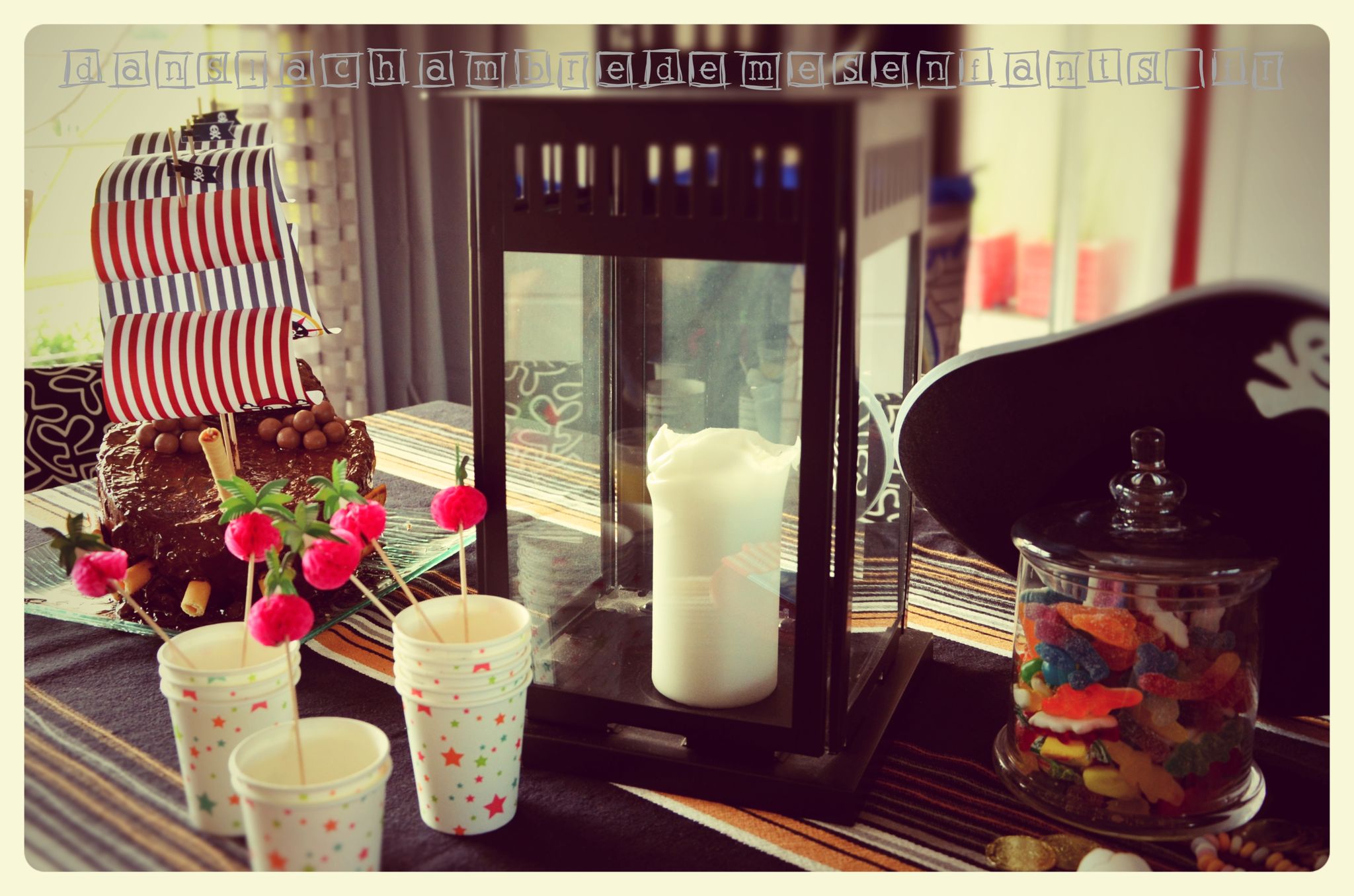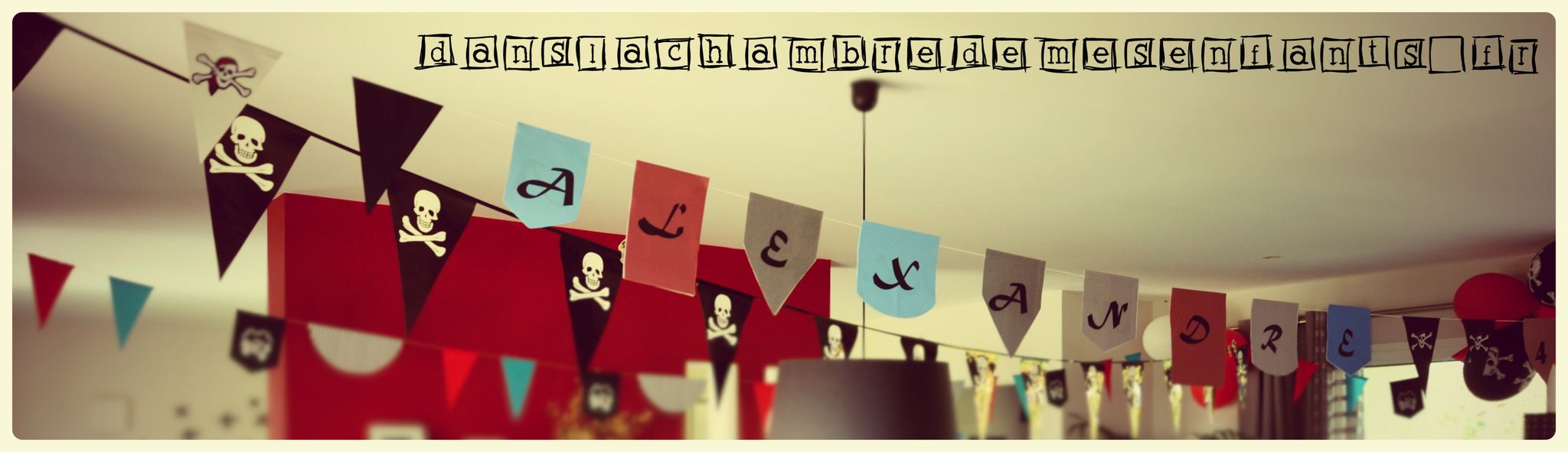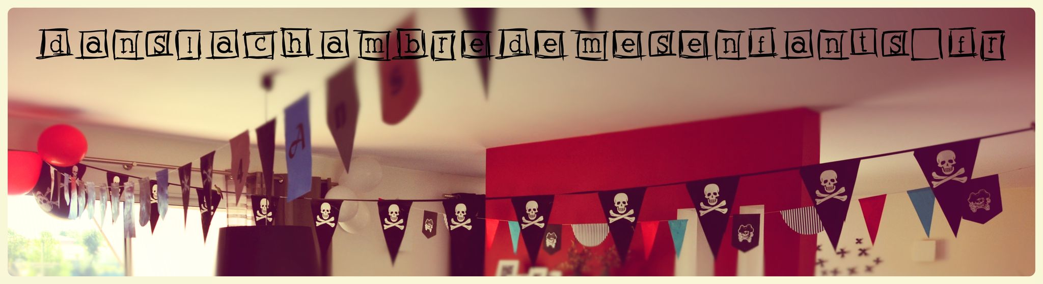 Parmi les thèmes incontournables des fêtes d’enfants, on retrouve celui des pirates. Mon fils l’a choisi pour ses 4 ans sans être attaché pour autant à une figure de dessin animé (tel que Jack le pirate). En l’absence de modèle à suivre, j’ai fait une décoration sur des tons de noir, en dominante, puis de rouge et de bleu.