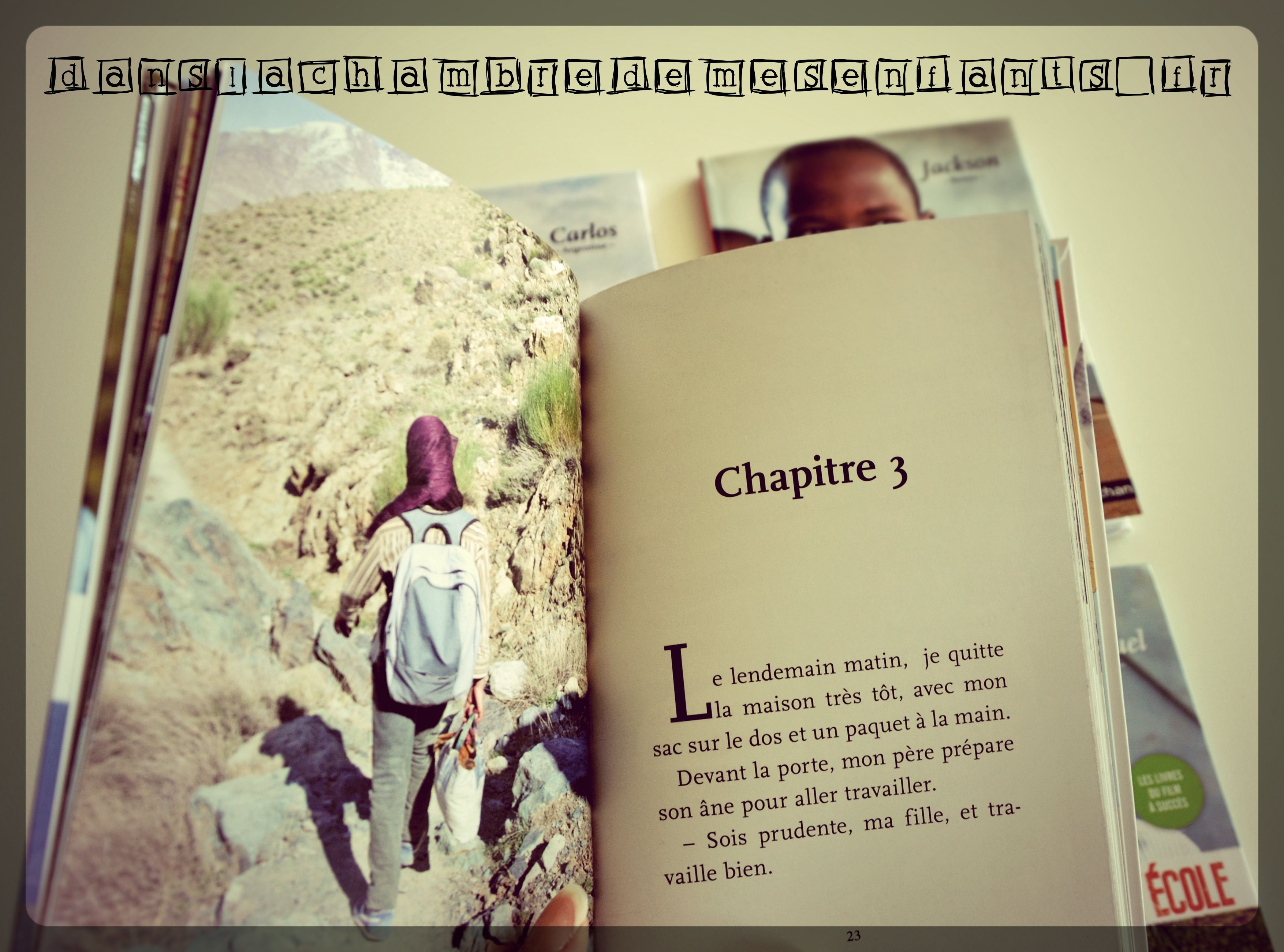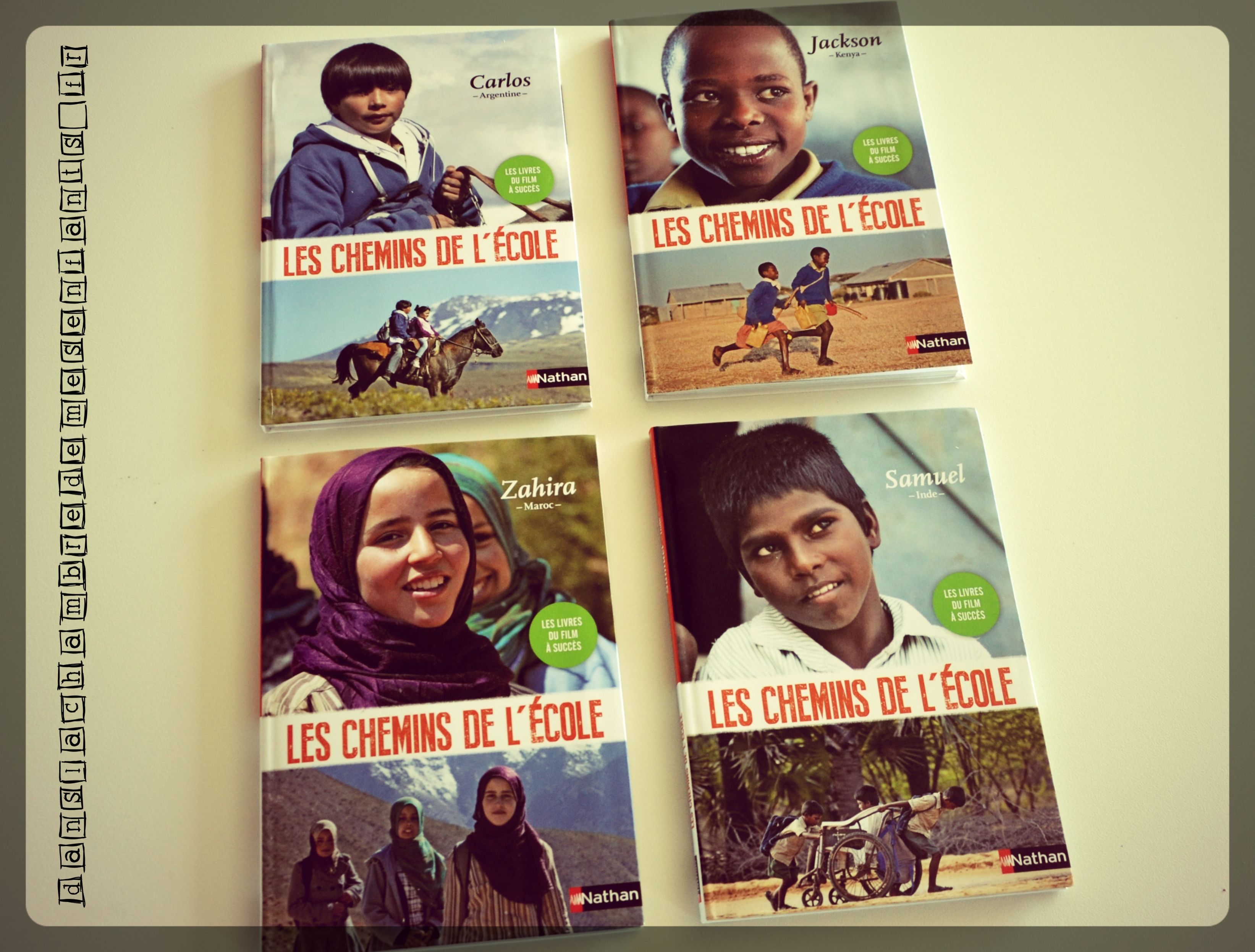 Cette collection de romans fait suite au film documentaire de Pascal Plisson qui retranscrit le parcours courageux d’enfants, vivants aux 4 coins du monde, pour bénéficier d’une éducation. Carlos fait une traversée dangereuse à cheval tous les jours avec sa petite sœur pour se rendre à l’école, Jackson et sa sœur traversent la savane, Samuel est aidé de ses frères pour réaliser des kilomètres de trajet et Zahira réalise 4h de marche dans les montagnes pour rejoindre l’internat.