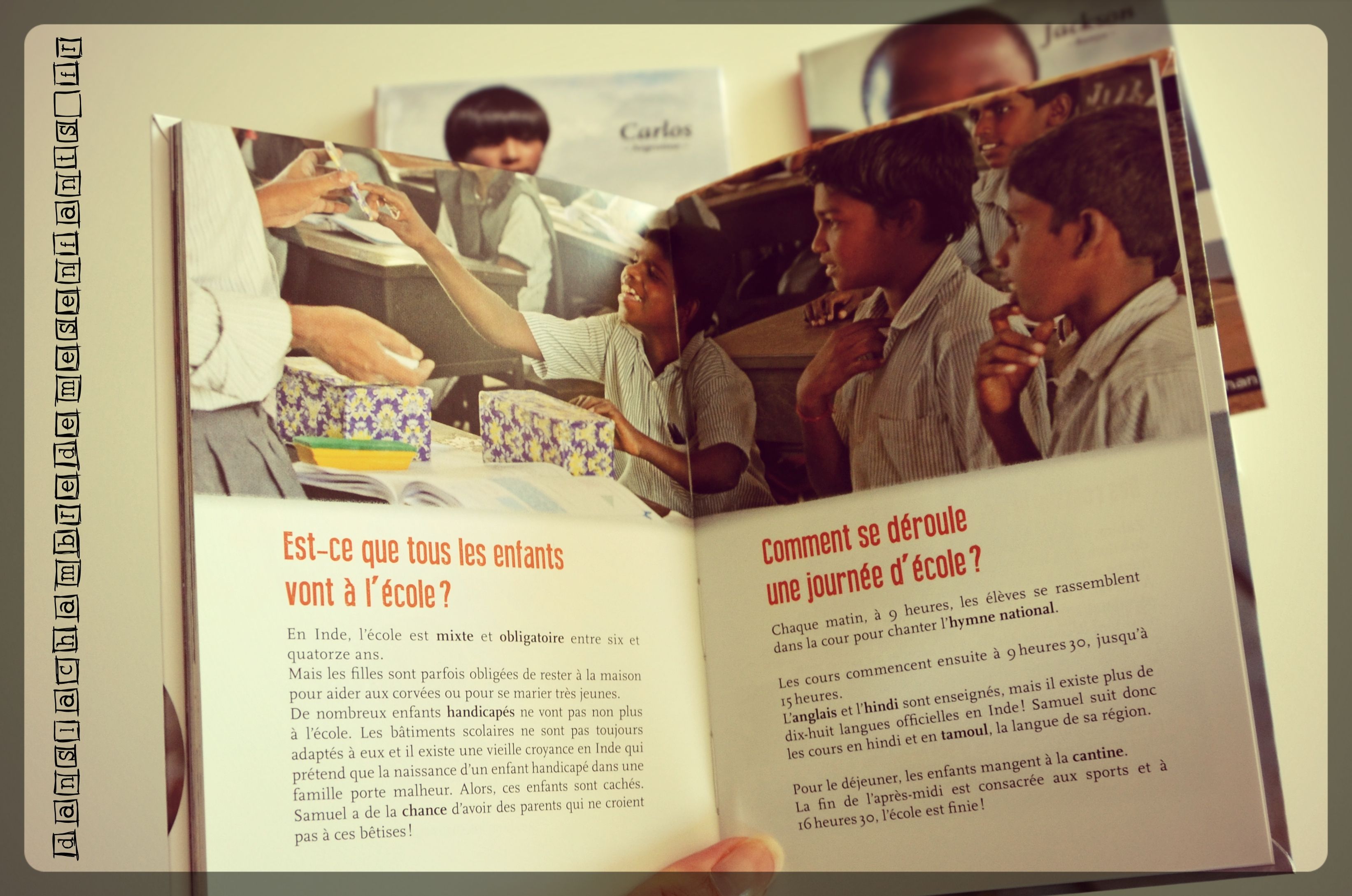 Les chemins de l’école : « Carlos, Argentine » « Jackson, Kenya » « Samuel, Inde » « Zahira, Maroc »