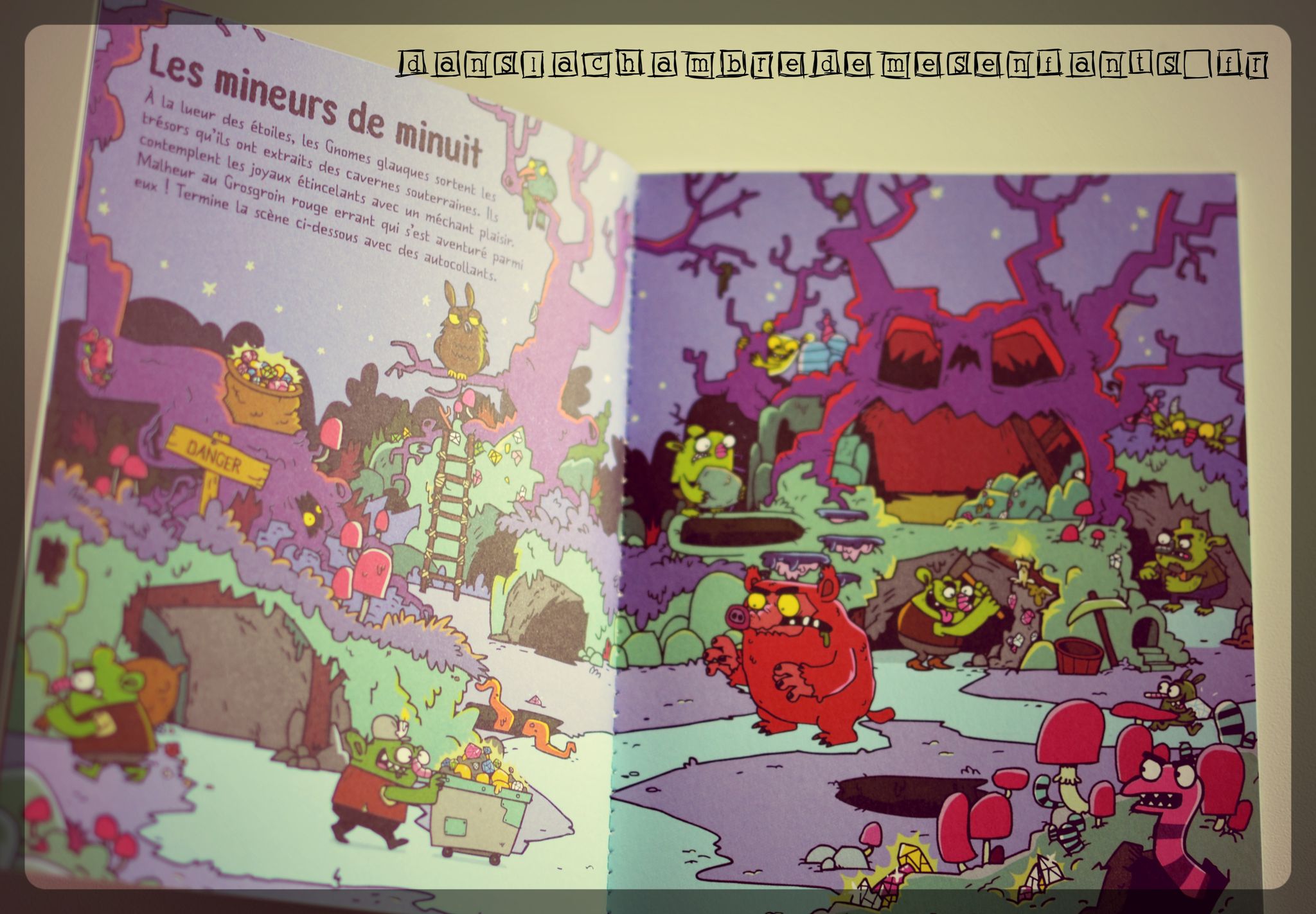 - « Les monstres » : il s’agit d’une version courte d’un plus grand ouvrage (à découvrir dans les prochains jours 😉 ) où l’on découvre des scènes commentées à compléter avec 300 autocollants.
