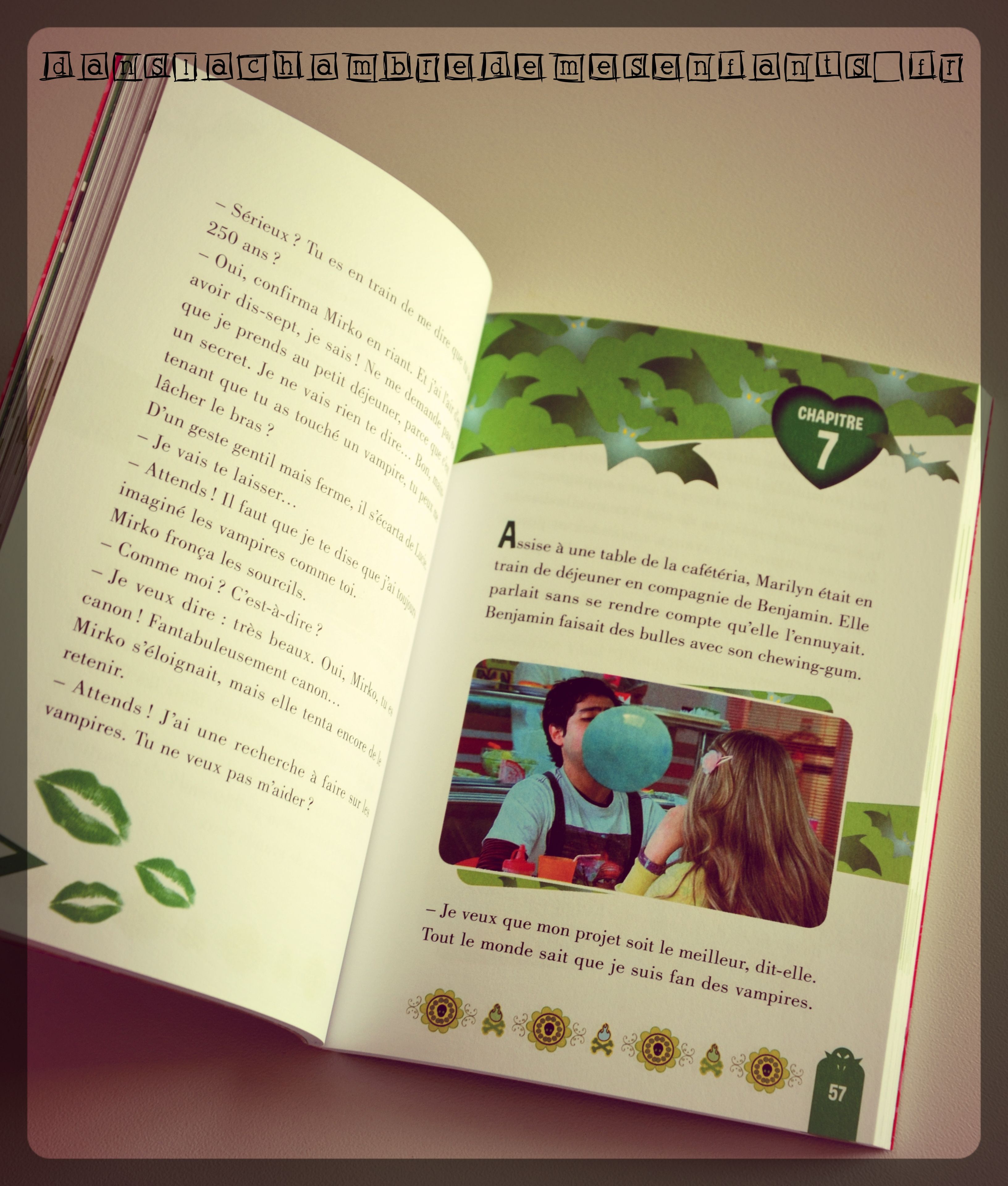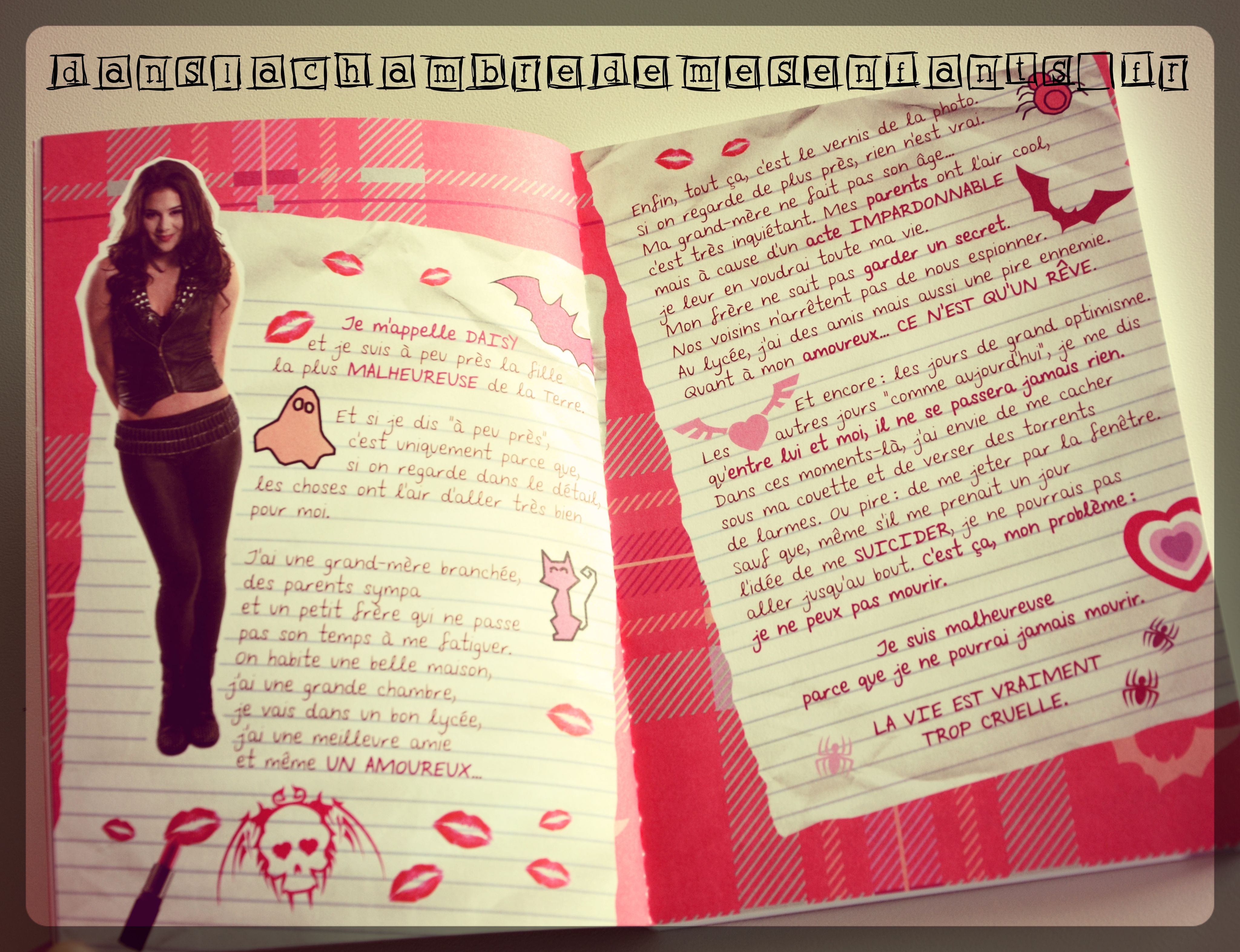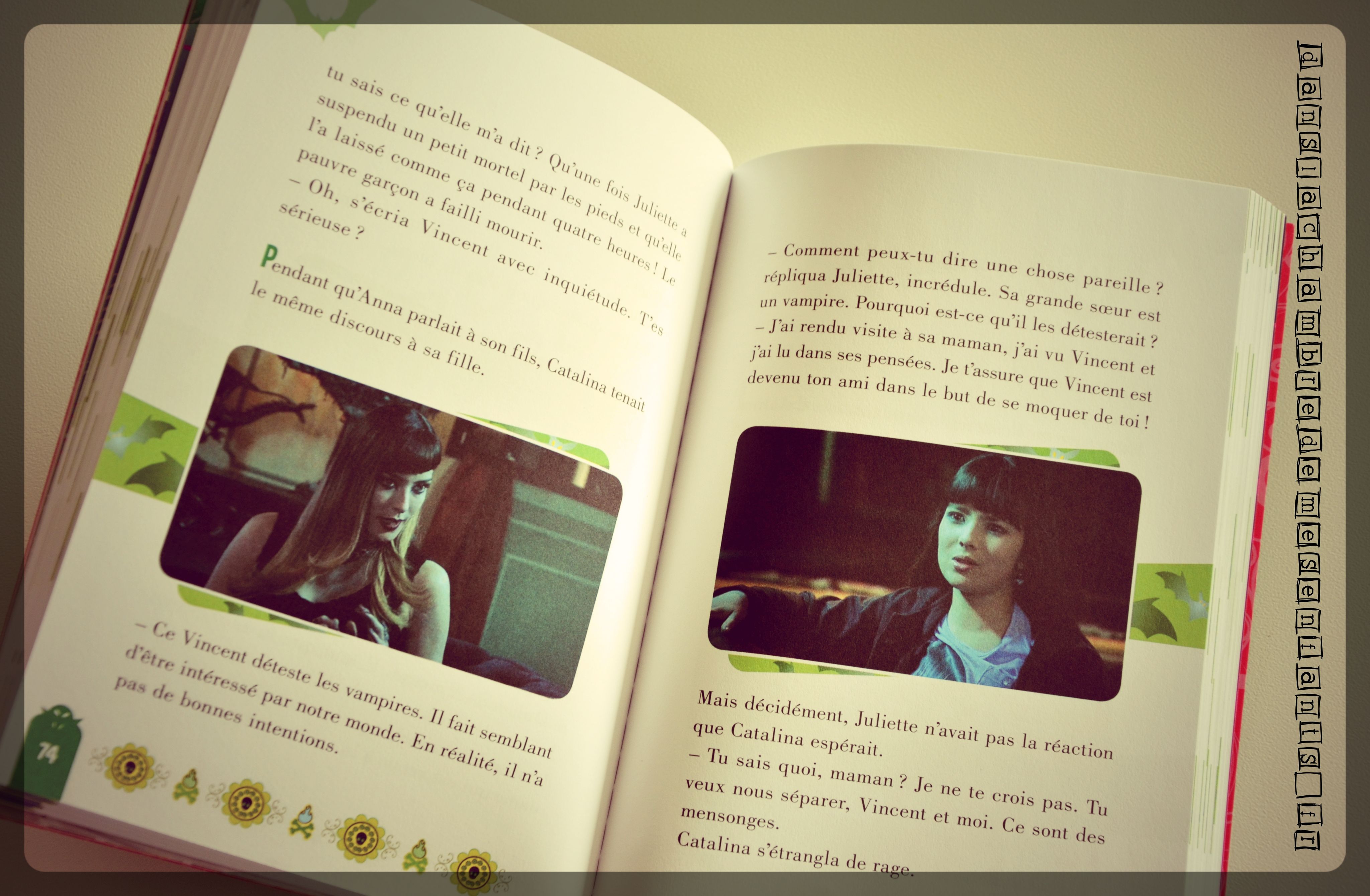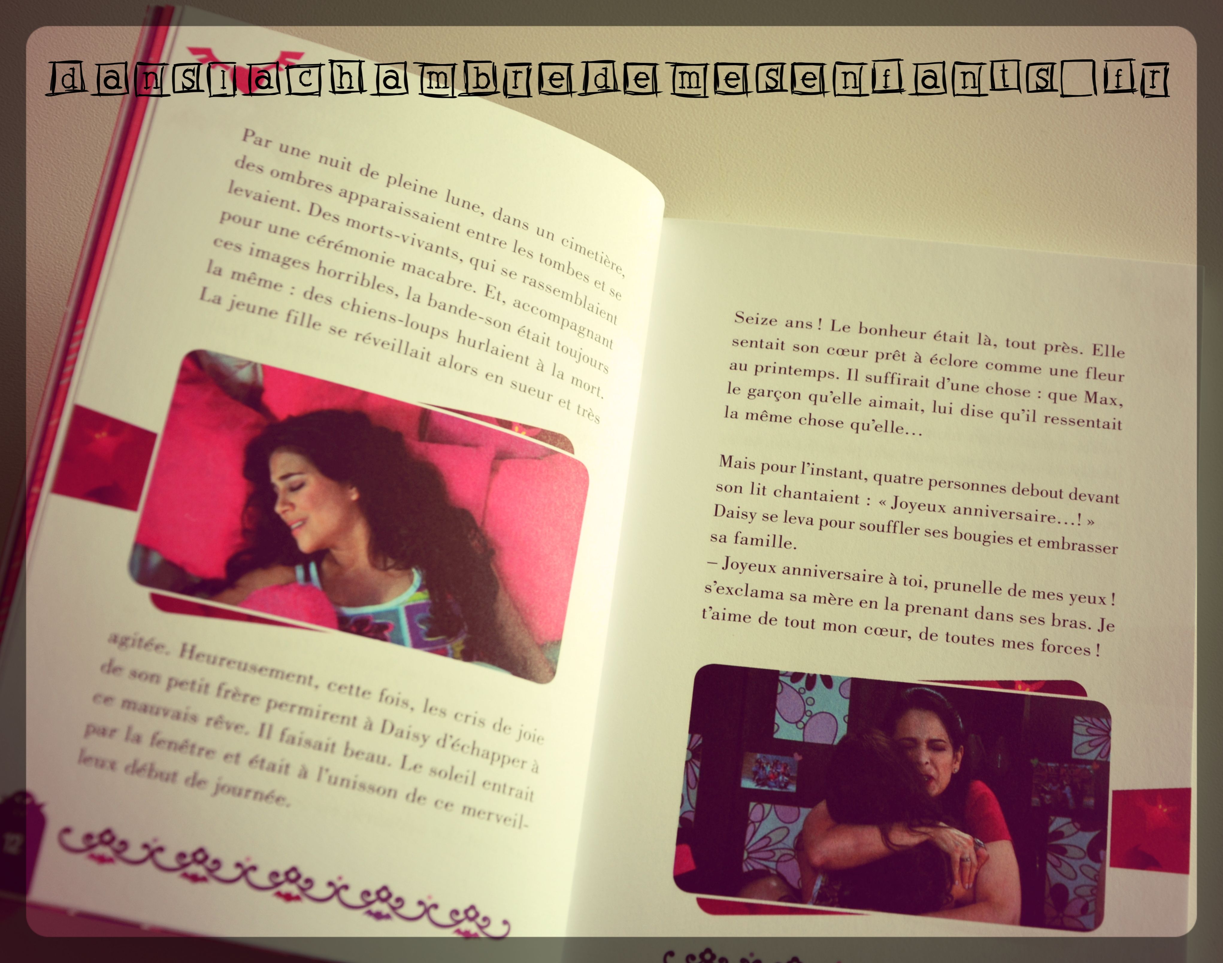 Ils commencent par une brève présentation des personnages et un extrait du journal intime de Daisy. L’histoire est sous chapitre, régulièrement illustrée de photos couleurs de la série et les pages sont systématiquement décorées de frises et de petits dessins (chauves-souris, marques de rouge à lèvres, étoiles…). Le côté girly est encore marqué pour un récit assez complet des épisodes, notamment avec les paroles des chansons. Je conseille leur lecture à partir de 9 ans. Je regrette, cependant, des formules assez longues et peu personnelles à l’opposé de celles de l’extrait du carnet de Daisy.