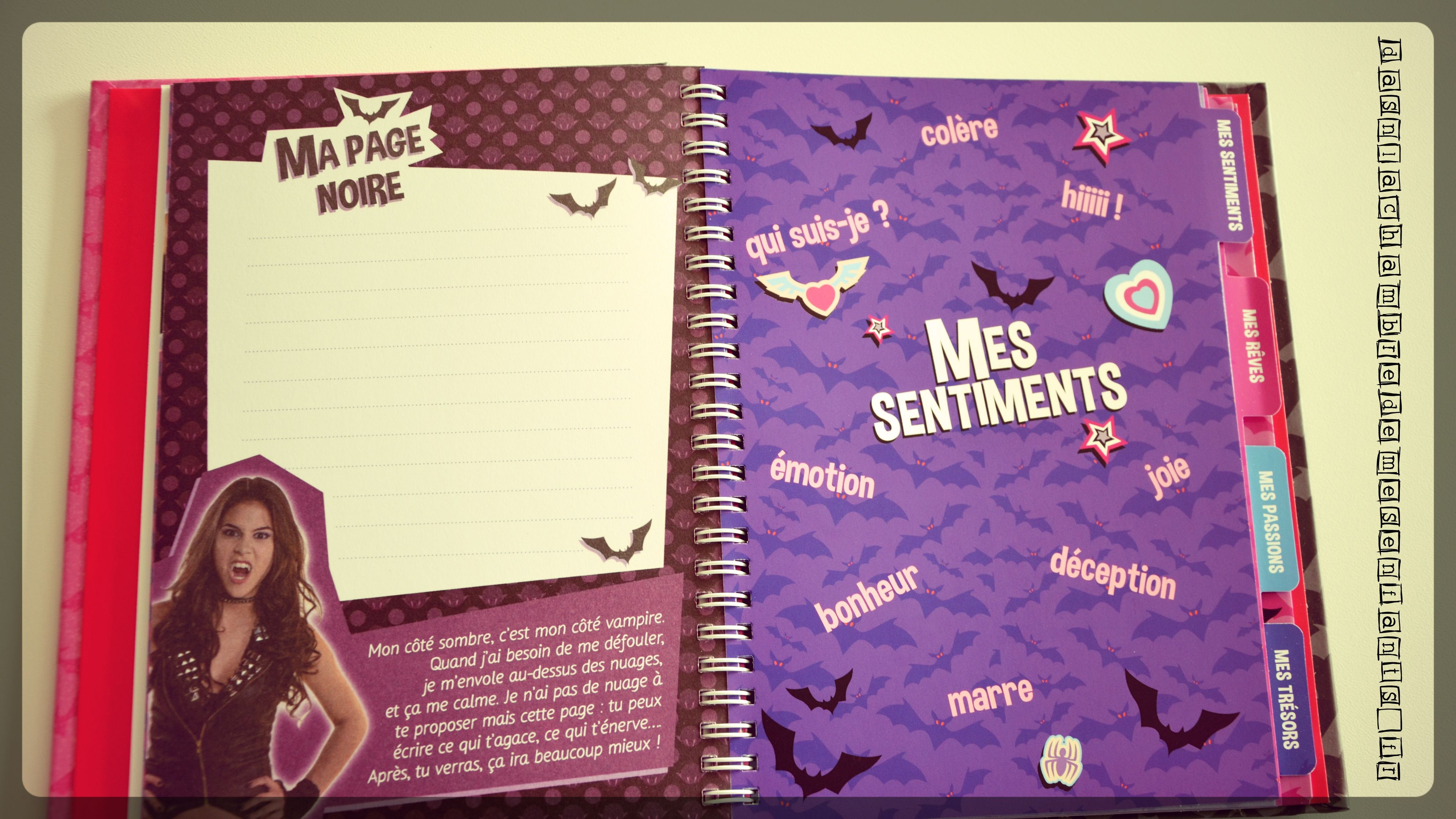 C’est un ouvrage assez chargé mais on retrouve bien l’esprit adolescent avec ses centres d’intérêt, l’esprit de la série et le côté ludique notamment grâce aux parties à compléter, surtout celles à choix multiples. Un journal intime, c’est avant tout s’exprimer et collecter des souvenirs : ce carnet est donc pertinent et le côté ludique peut être poussé en le complétant avec des amis (attention aux secrets !).