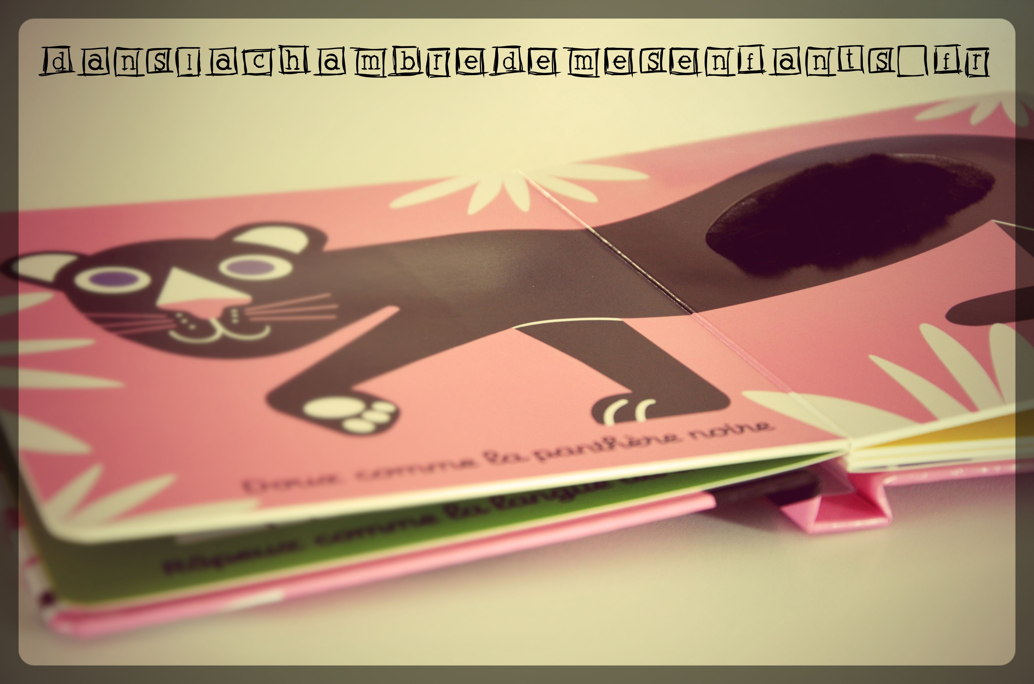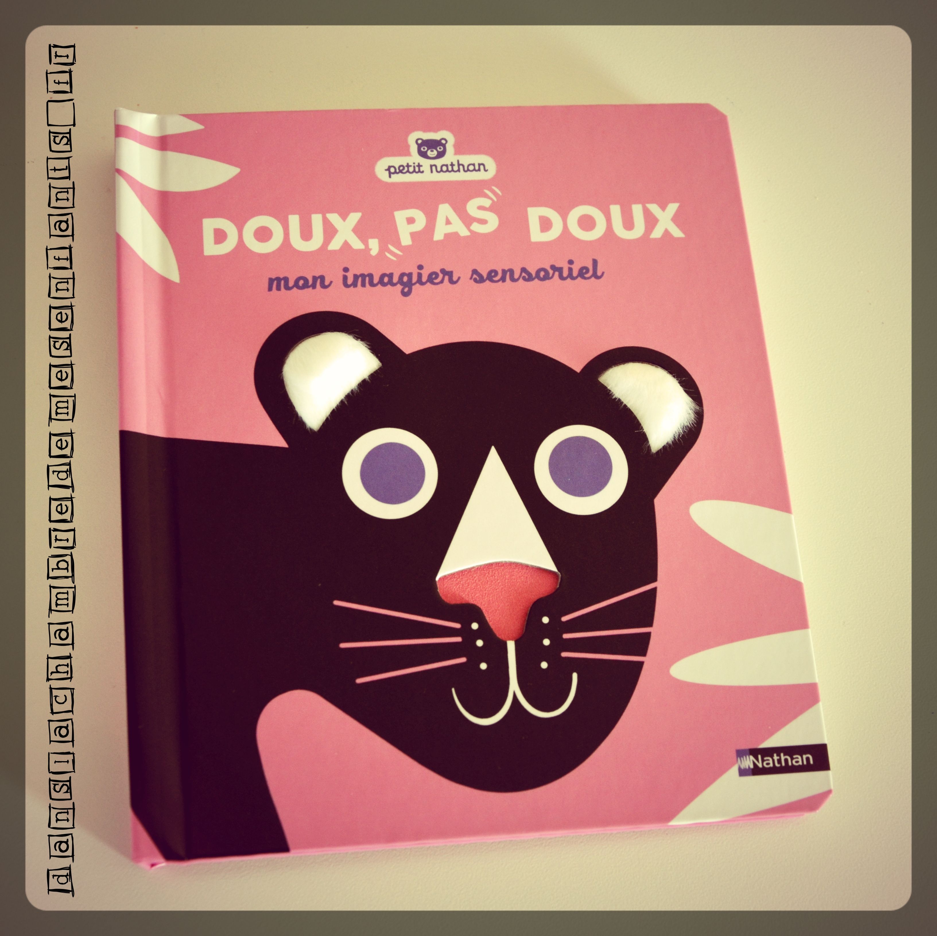 Il s’agit d’un imagier aux pages cartonnées éveillant plusieurs sens : la vue avec un jeu de contrastes forts et le toucher grâce à des zones à textures différentes (ex : en couverture, les oreilles en peluche de la panthère). Le choix des couleurs est idéal pour des enfants très jeunes, dès 9 mois, et leur curiosité grandissante y trouve toujours de quoi apprendre. En effet, à travers les dessins et leurs textures, les opposés sont présentés et mis en scène (ex : la langue du chat râpeuse, la fourrure douce de la panthère).