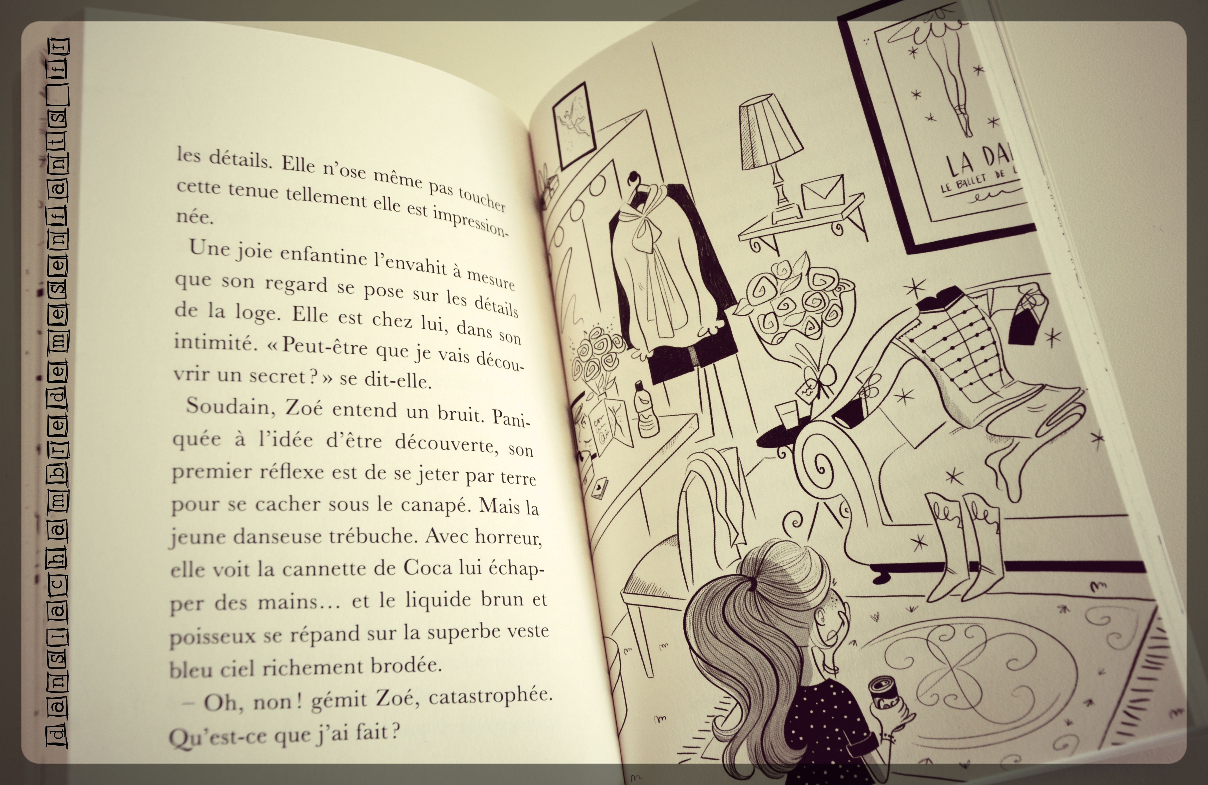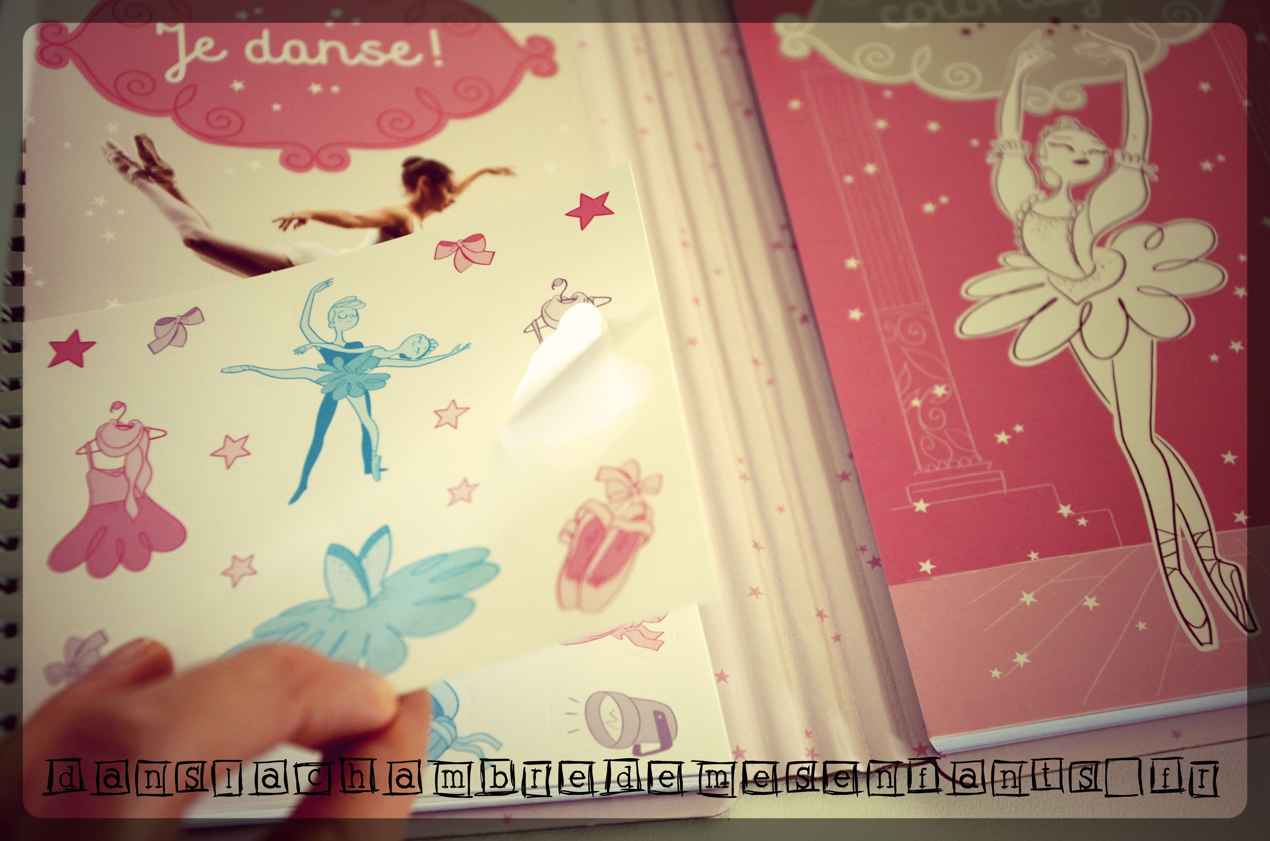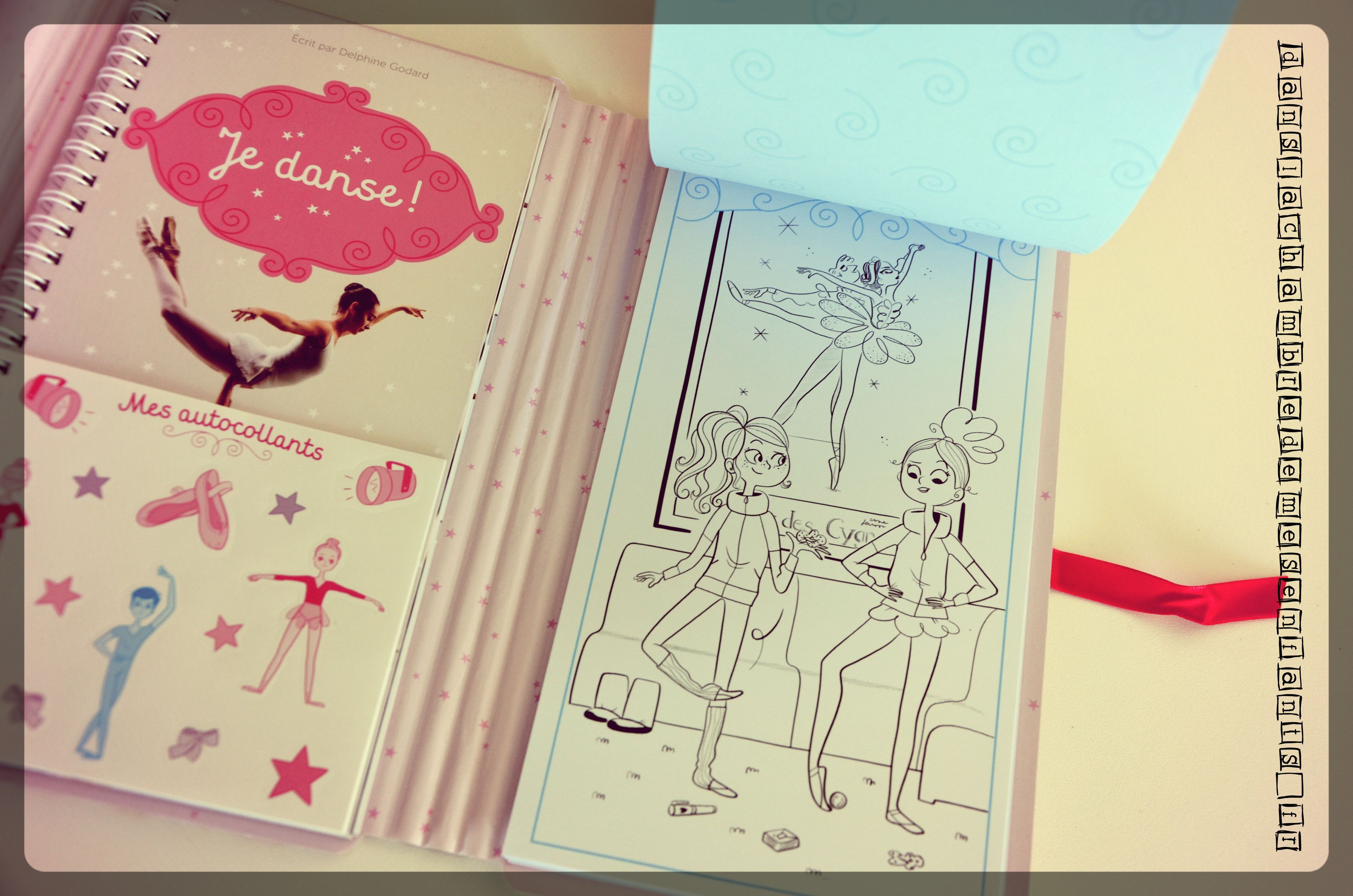 - un bloc « Mes coloriages » : les scènes des romans, et plus, sont reprises sous légende : le cours de danse, exercice à la barre, les accessoires de gala, Casse-Noisette, des maquillages élégants…