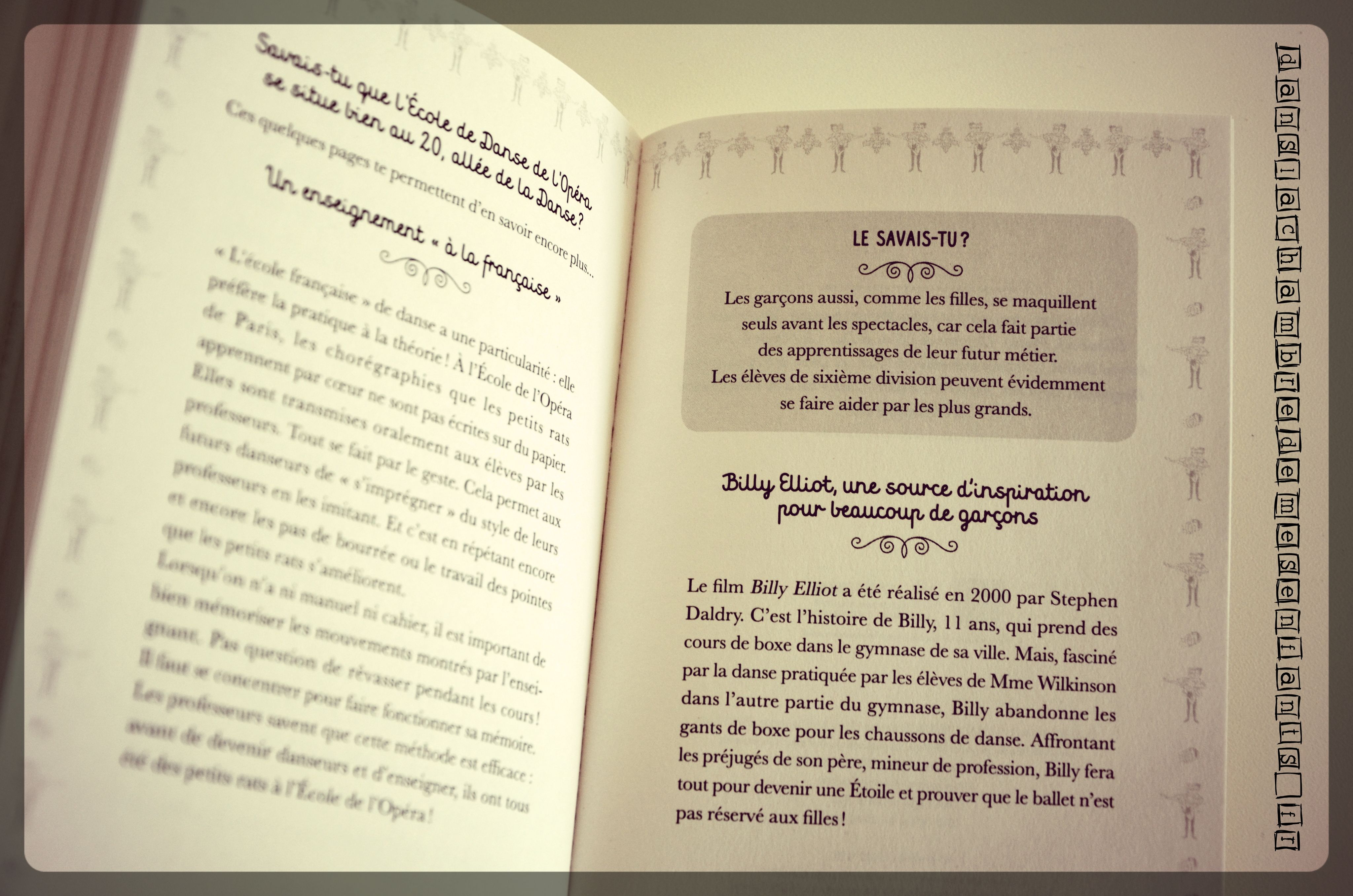 - un carnet de découverte « Je danse » (à spirale) : sont présentés, en photos, les essentiels des petits-rats et leurs secrets, des pas de base… comme pour initier ou, à tout le moins, nourrir la curiosité des enfants :