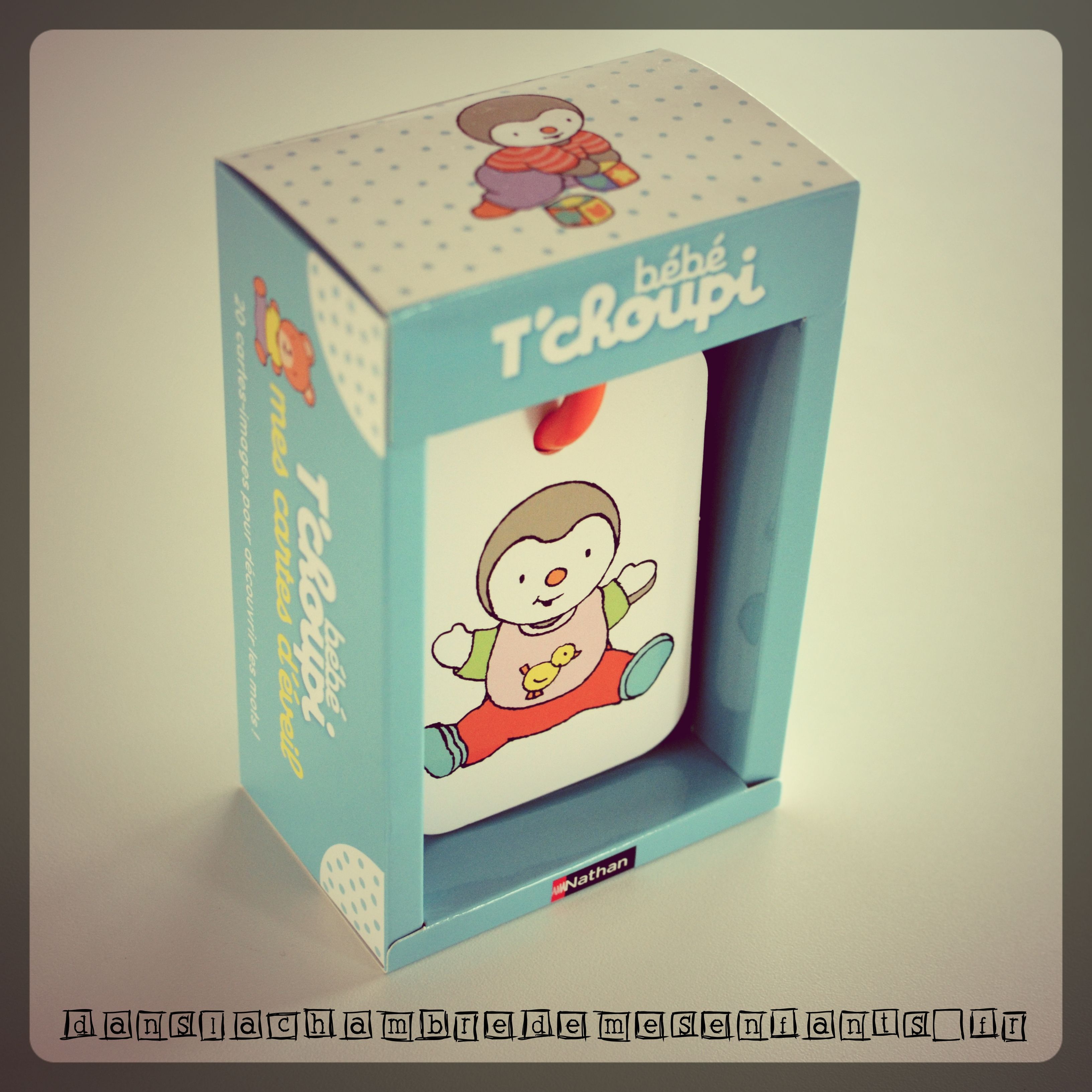 L’avis des enfants : Emi, 21 mois, l’a d’abord entrepris comme un jouet : elle a reconnu immédiatement son grand ami T’choupi et elle a cherché une façon de le découvrir au mieux. Pour ce qui est de l’apprentissage, c’est avec moi que ce la se passe puisque je reprends les cartes avec elle : d’abord en désignant l’objet, puis, en la laissant intervenir lorsque T’choupi utilise ledit objet (sinon j’engage moi-même le commentaire et je l’accompagne pour désigner dans la maison [ex : le biberon]).