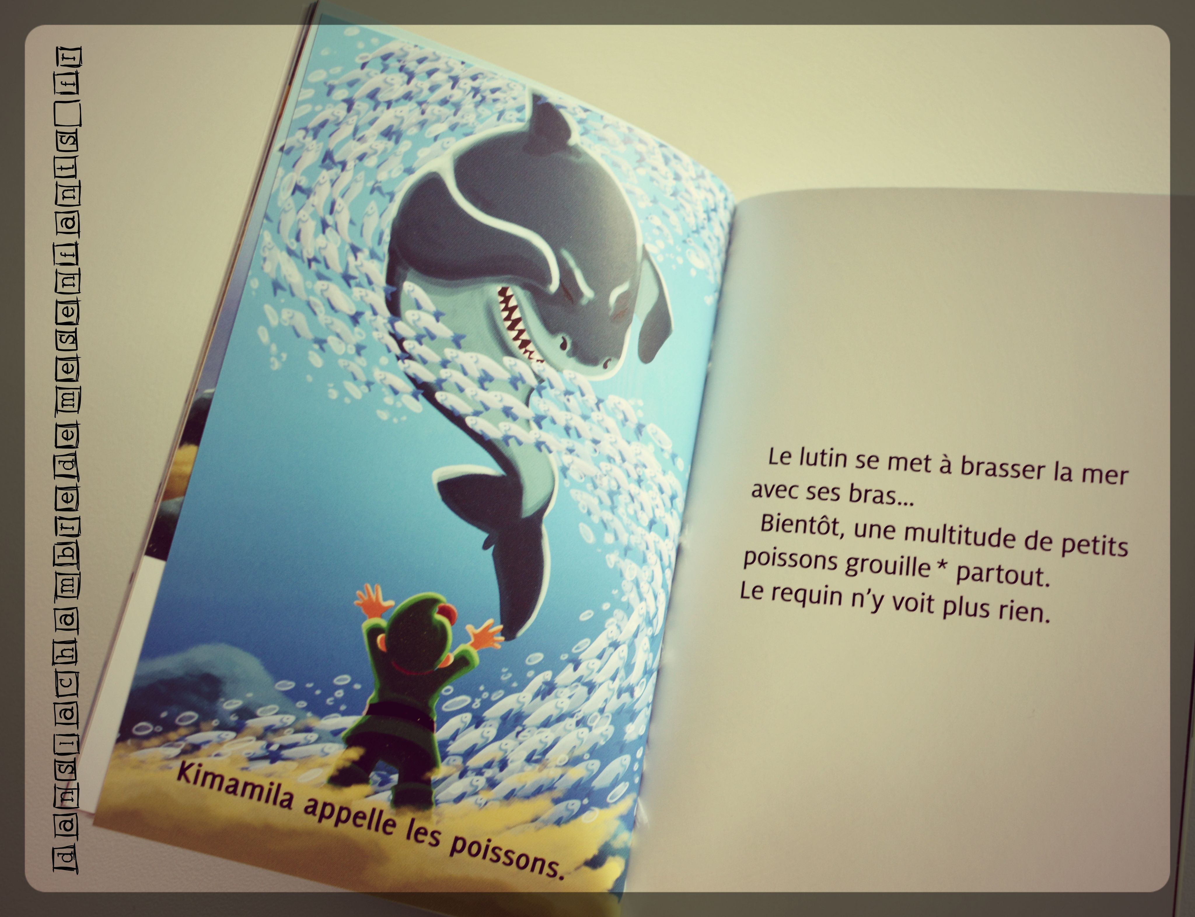 Kimamila intervient dans le quotidien d’Alorie et Manu : dans le 1er titre, il découvre le petit rongeur qui est à l’origine de dégâts dans la salle de classe et, dans le second roman, il permet aux enfants de s’échapper de la menace d’un requin qui les a surpris alors qu’ils faisaient de la plongée sous-marine avec leur cousine. Des histoires courtes avec un rebondissement et un cadre qui varie. De plus quelques mots nouveaux sont utilisés (ex : chambouler, hublot, épave).