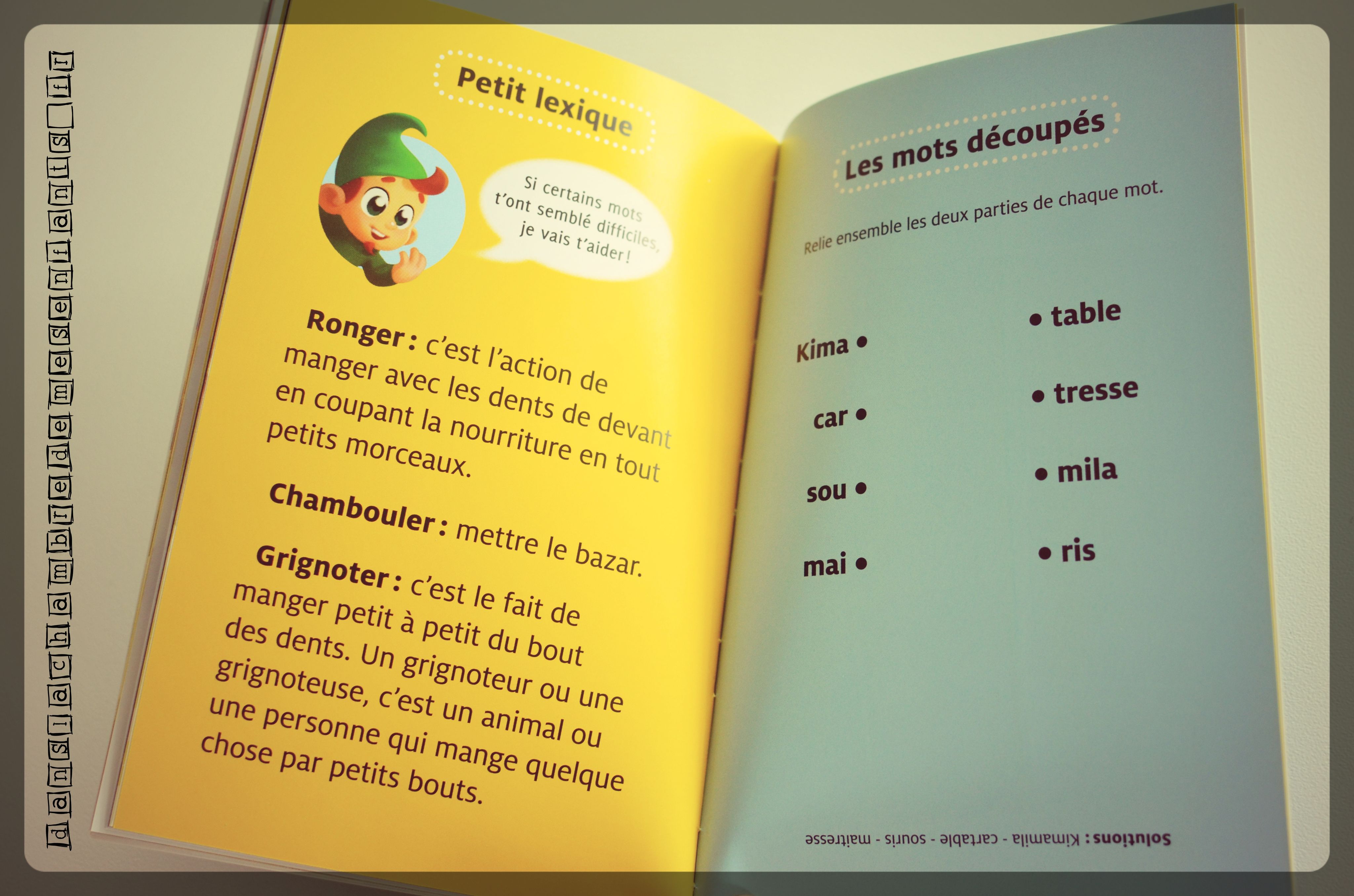 Vous avez déjà fait connaissance avec Kimamila et la poursuite de son histoire nous donne envie de le faire revenir dans la chambre de mes enfants. Ses récits se présentent sous forme de petits romans illustrés, terminés par un petit lexique et quelques jeux de compréhension, et de cahier d’activités avec une histoire entrecoupée de 60 petits jeux se rapportant au texte.