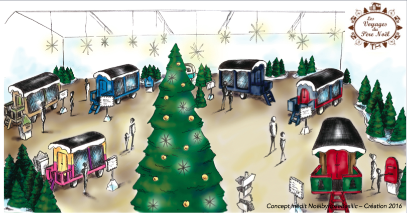 Noël a quelque chose de magique alors, à force de courir après, j’en ai un peu attrapé et je vous l’offre ici en avant-première (Merci Aurélie 😉 ). Il s’agit de 400 m² d’exposition mettant en scène le Père Noël à travers le monde (Amérique, Inde, Afrique…) dans 7 « roulottes vitrines » animées et sonorisées, entièrement fabriquées à la main. Vous y trouverez également des animations telles que les 7 boîtes aux lettres pour un courrier en partance pour un pays de votre choix (avec réponse), le fameux grand sapin de Noël de RoseBasilic, 1 studio à selfies avec le Père Noël, 1 conte, 1 calendrier de l’avent géant…