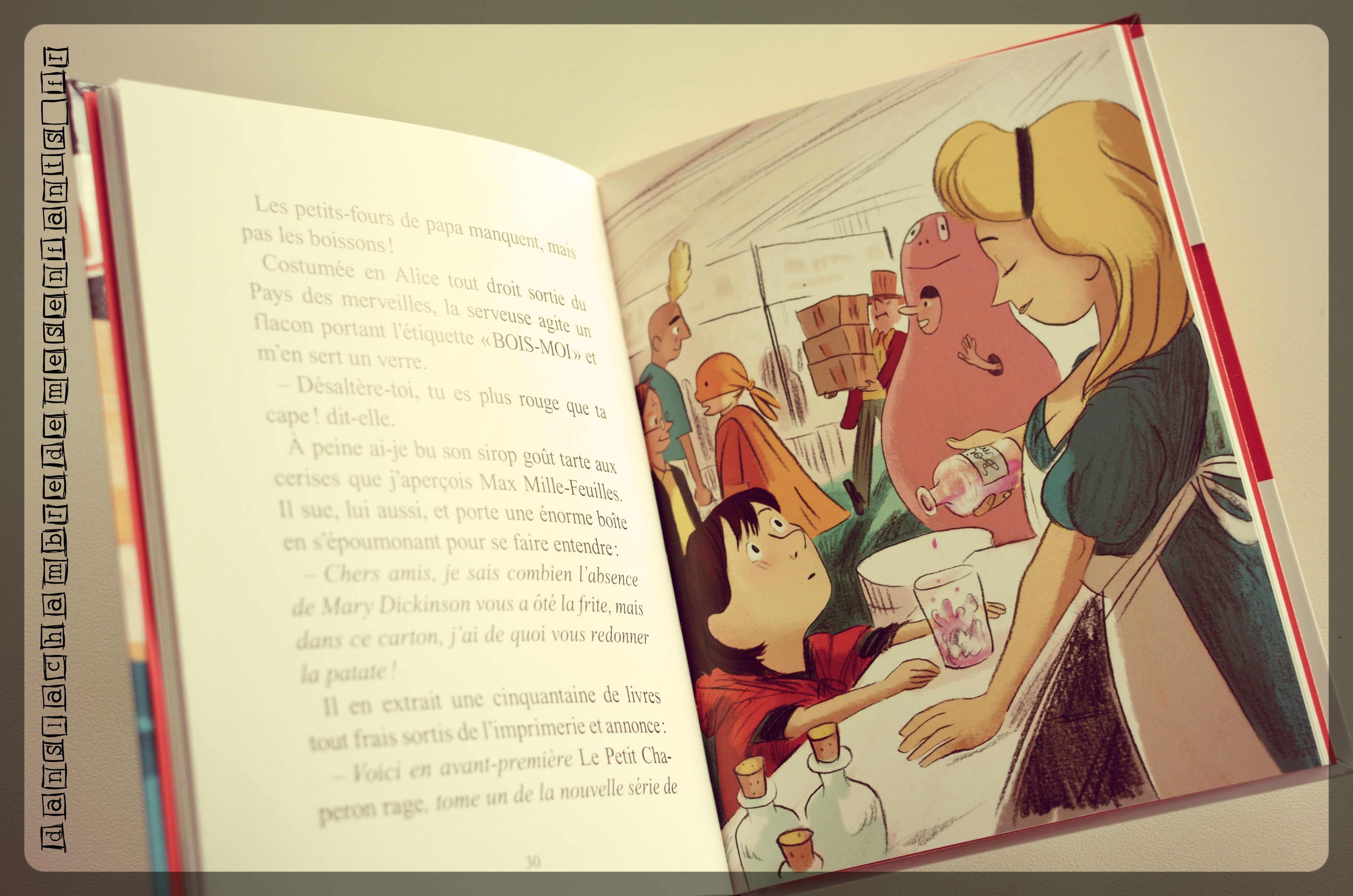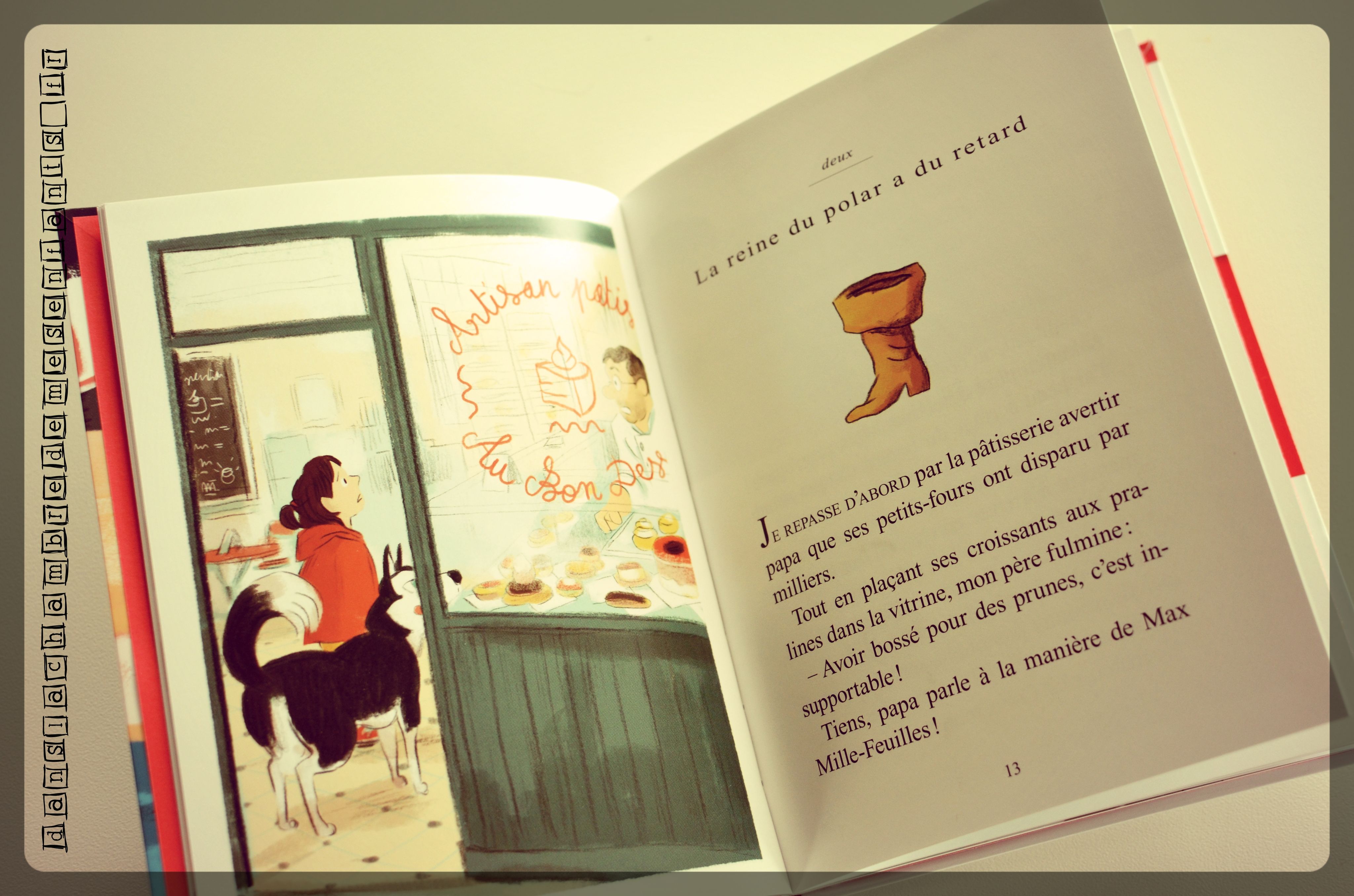 Dans « Le petit chaperon se bouge », ils se rendent au salon du livre où a disparu la plupart des pâtisseries livrées par son père. Sa première enquête l’emmène jusqu’au stand de la reine du polar, introuvable, ainsi que Benji qui finit par disparaître à son tour. Son enquête, semblant se mêler aux contes des personnages qu’elle croise, avance en suivant les pas de son Husky.