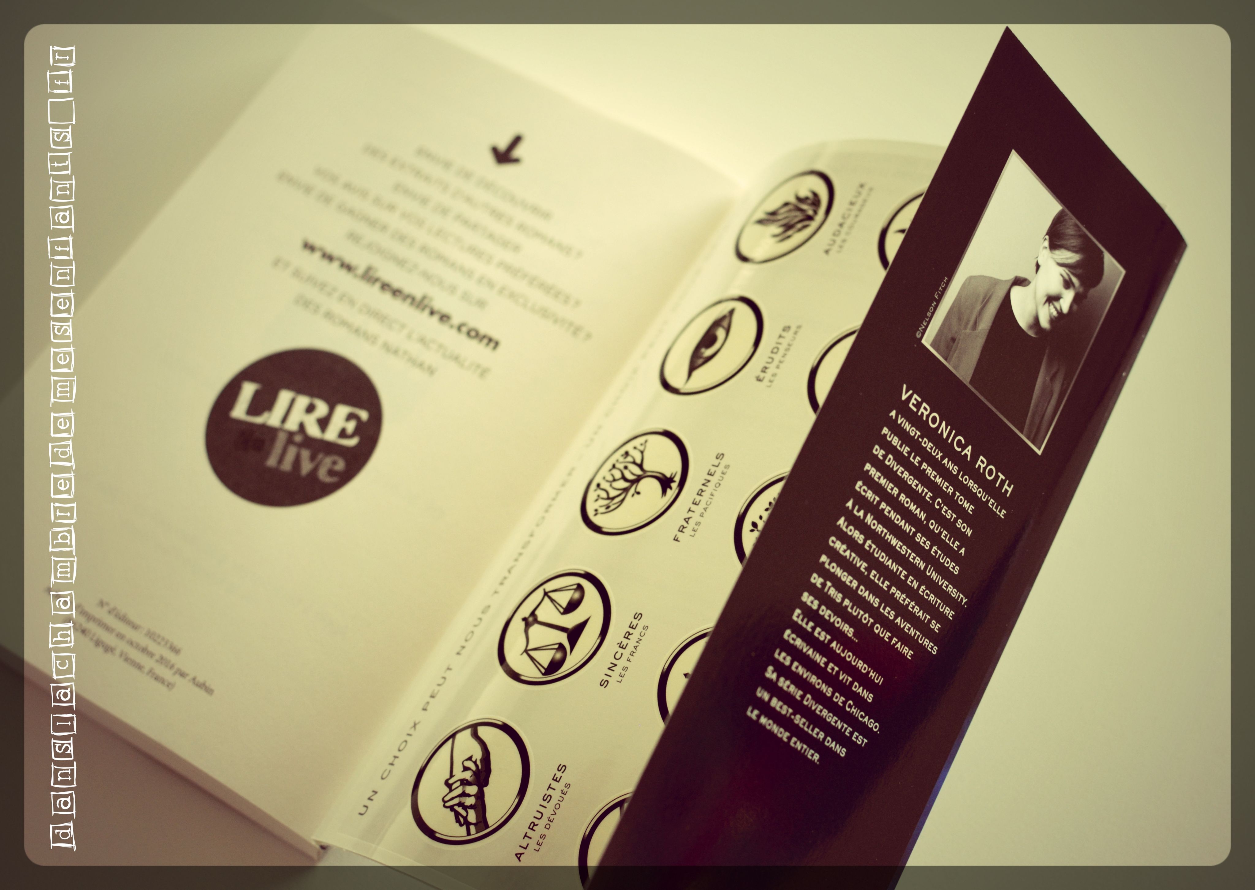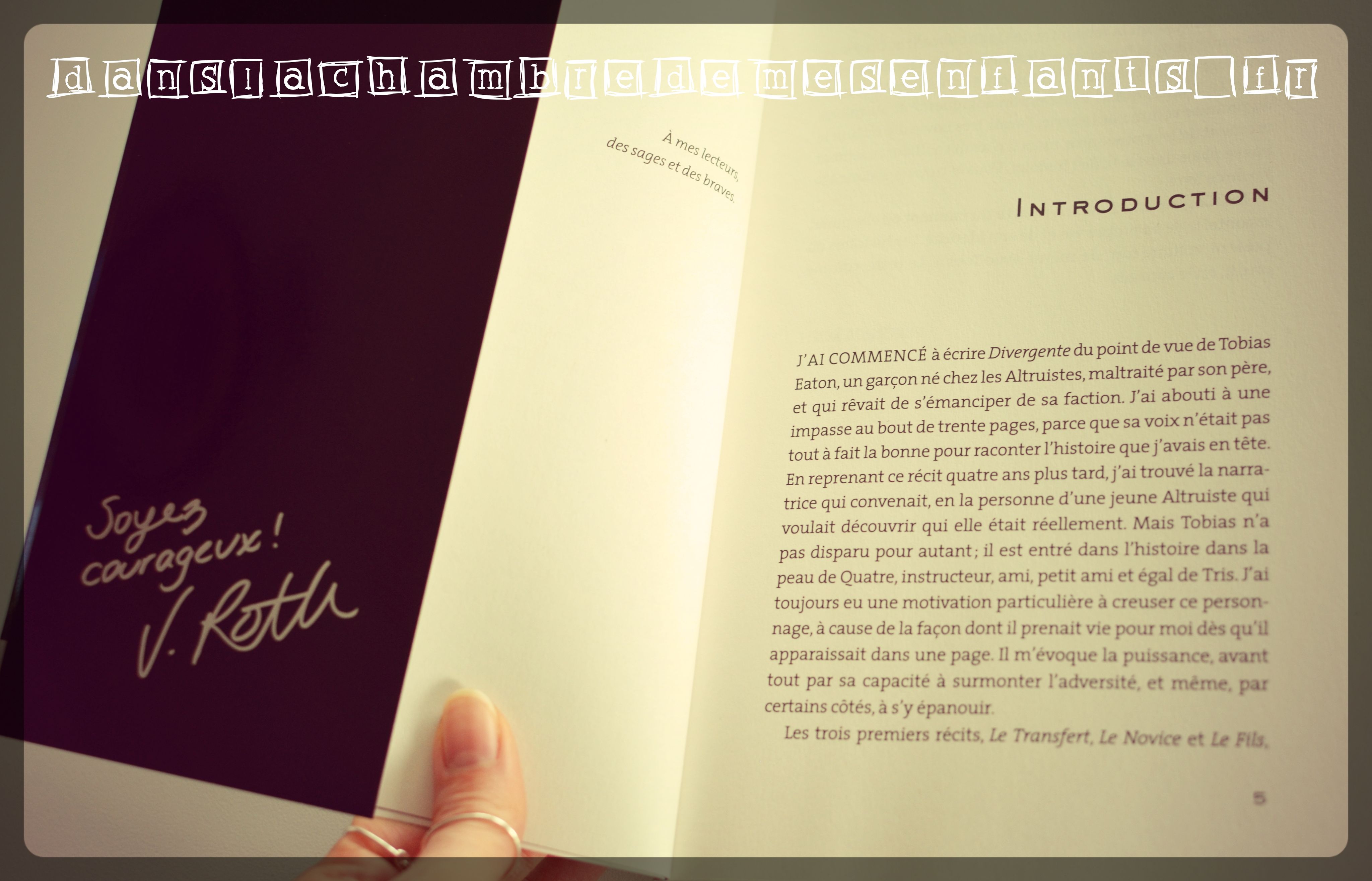 Ce livre se lit avec la motivation d’un curieux des coulisses, un fan de la série. On apprend à connaître davantage Veronica Roth, à travers sa belle plume qui traduit bien les émotions et ses confrontations. Pour se plonger davantage dans le monde de ces romans, c’est une diversité des textes qui est proposée, dynamisant bien la lecture. Les adolescents, à partir de 14 ans, devraient apprécier ce format intéressant, voire ludique notamment avec les tatoos fournis. Quant à l’intérêt pour le fond, la connaissance voire la passion pour « Divergente » est requise ! (N’attendez pas d’être piqué par la curiosité en commençant la lecture par cet ouvrage car vous allez en savoir trop sur la trilogie !… faisons les choses dans l’ordre 😉 )