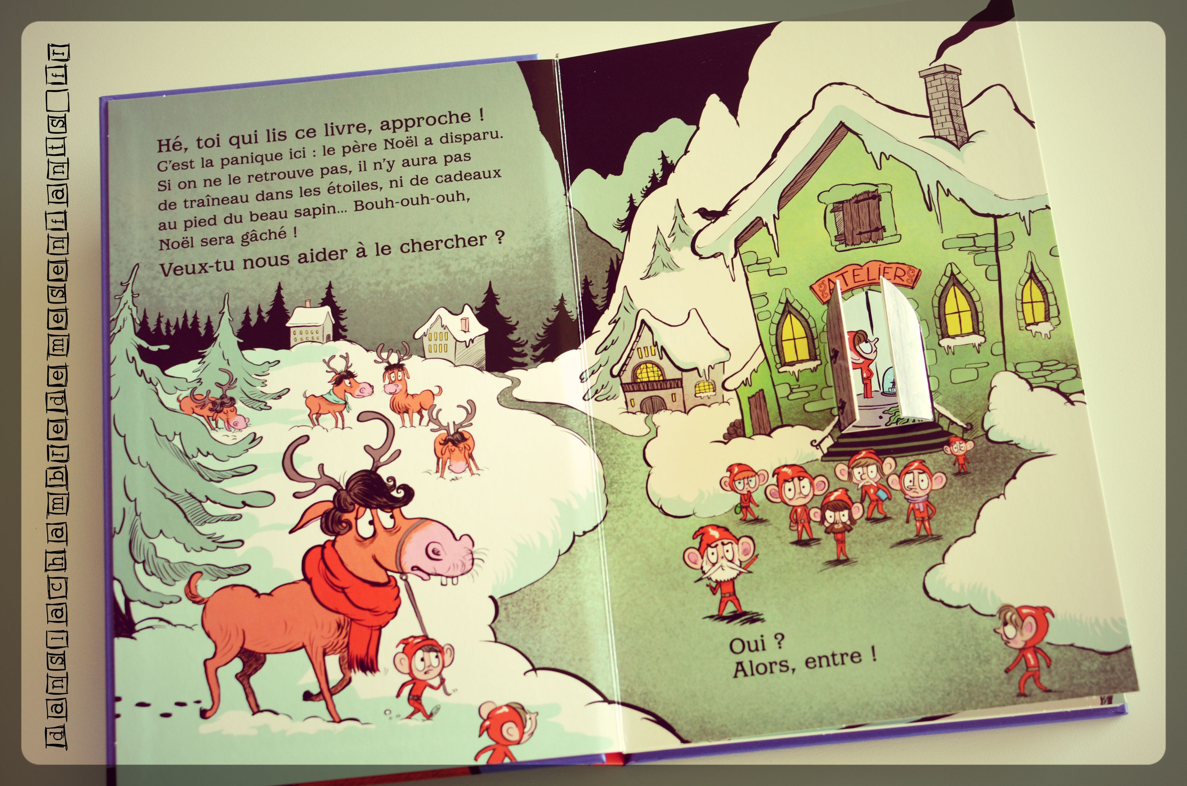 « Hé, toi qui lis ce livre, approche ! C’est la panique ici : le père Noël a disparu. »