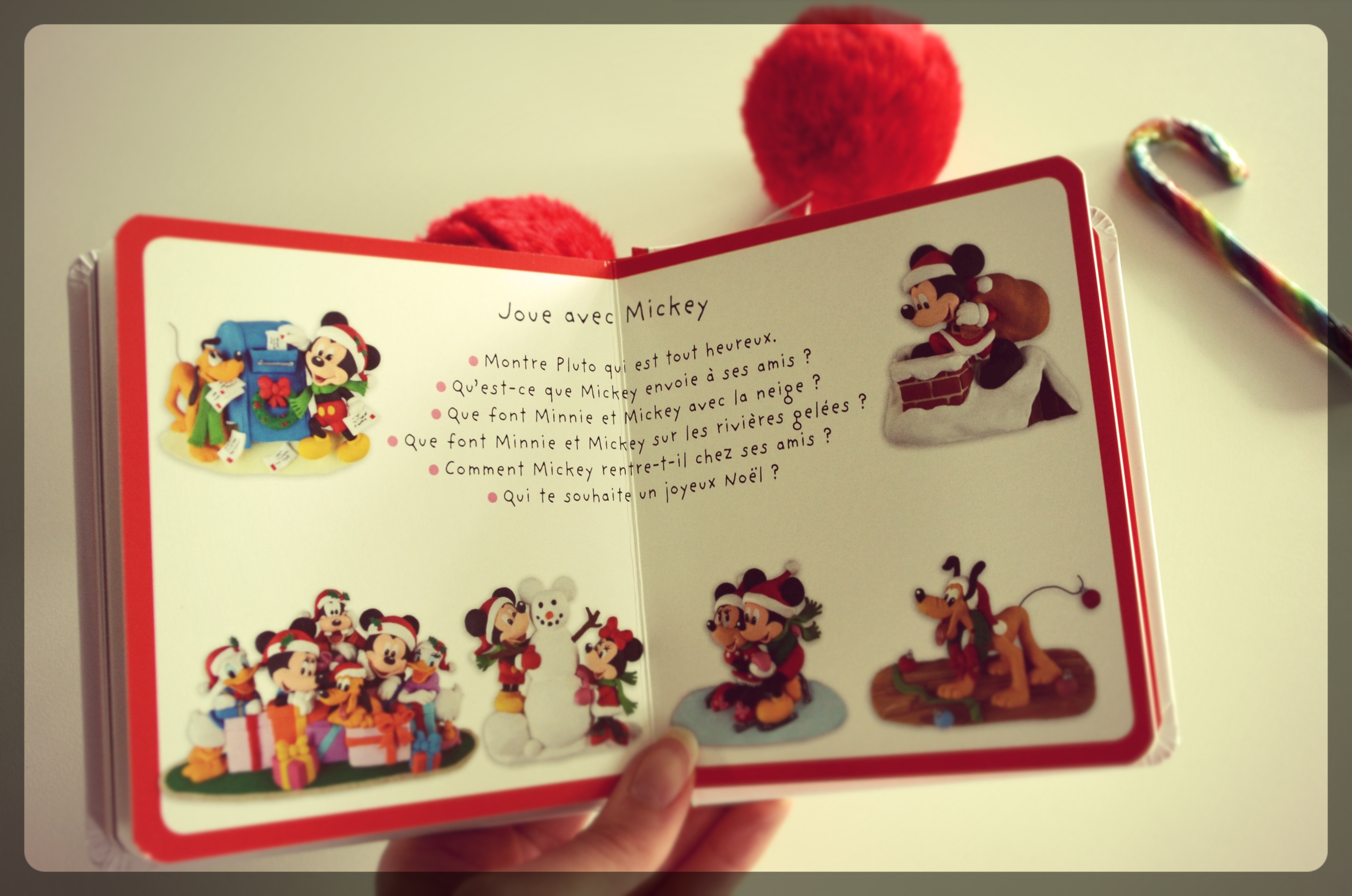 L’avis des enfants : Emi, 23 mois, a sauté de joie en voyant « ické » (…traduction : « Mickey » 🙂 ) surtout pour une nouvelle histoire autour de la fête de Noël. Le très grand nombre d’images de son héros la ravit. Elle ne l’a pas depuis longtemps mais elle a l’air d’apprécier particulièrement son format car ce livre la suit partout (y compris dans la poussette de sa poupée !).