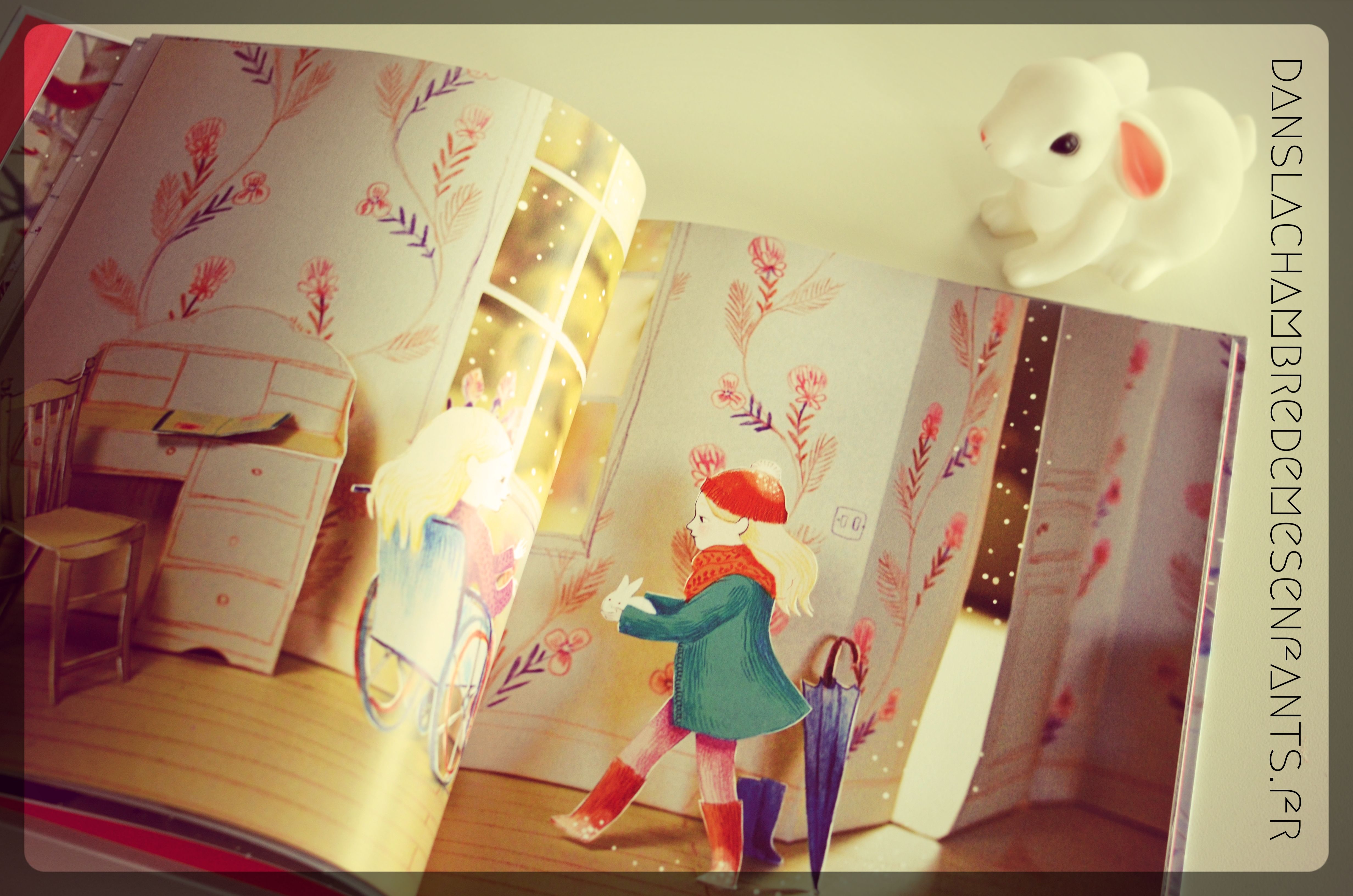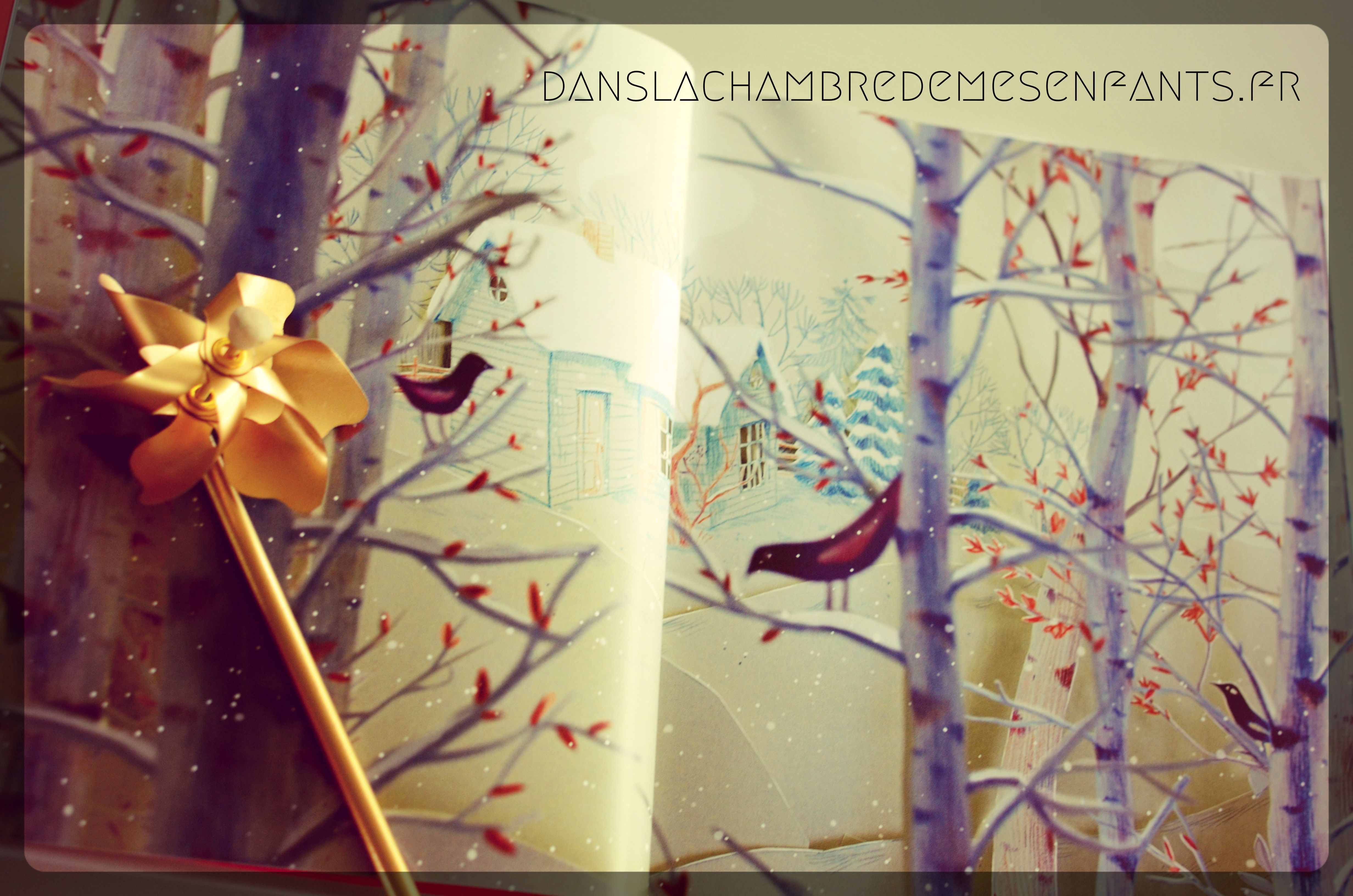 La forme m’a étonnée (je ne vous le cache pas) mais ce « silence » renforce en fait les illustrations (je me suis surprise à imaginer le bruissement de la neige sous les pas de la petite fille). Certes, il faut être sensible à cette poésie mais c’est un ouvrage qui s’en retrouve doté d’un vrai caractère qui ne laisse pas indifférents les enfants (qui ont compris cette finesse avant moi).