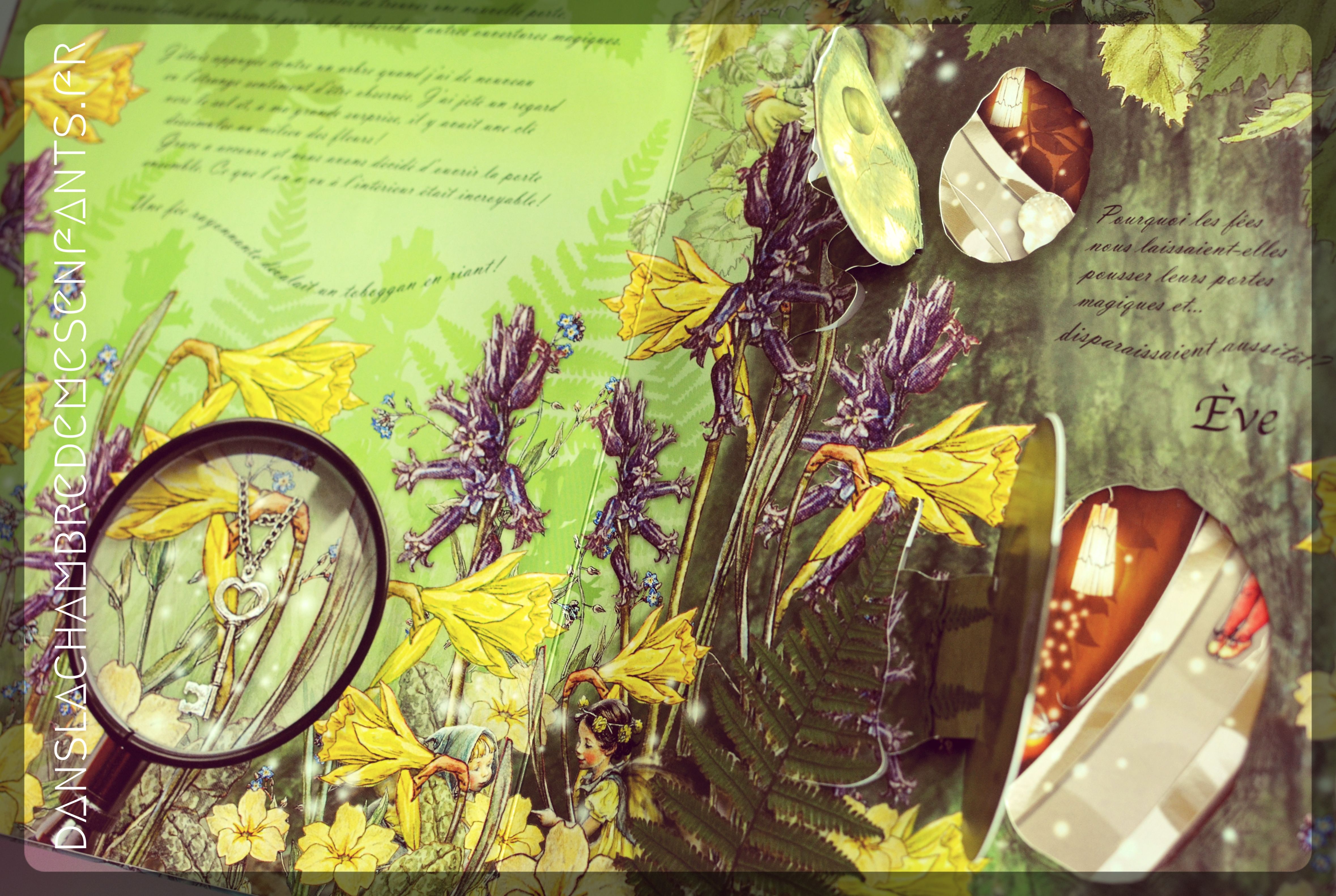 Dès la couverture, la beauté de l’ouvrage est annoncée en lettres dorées et le mystère apparaît en commençant la lecture. Voici deux fillettes, Eve et Grace, qui alternent leurs discours pour raconter leur fabuleuse découverte : une petite porte est apparue à Eve avant de disparaître, puis à Grace dans un massif de fleurs… les portes magiques se sont dévoilées tour à tour, ouvrant sur le monde des fées.