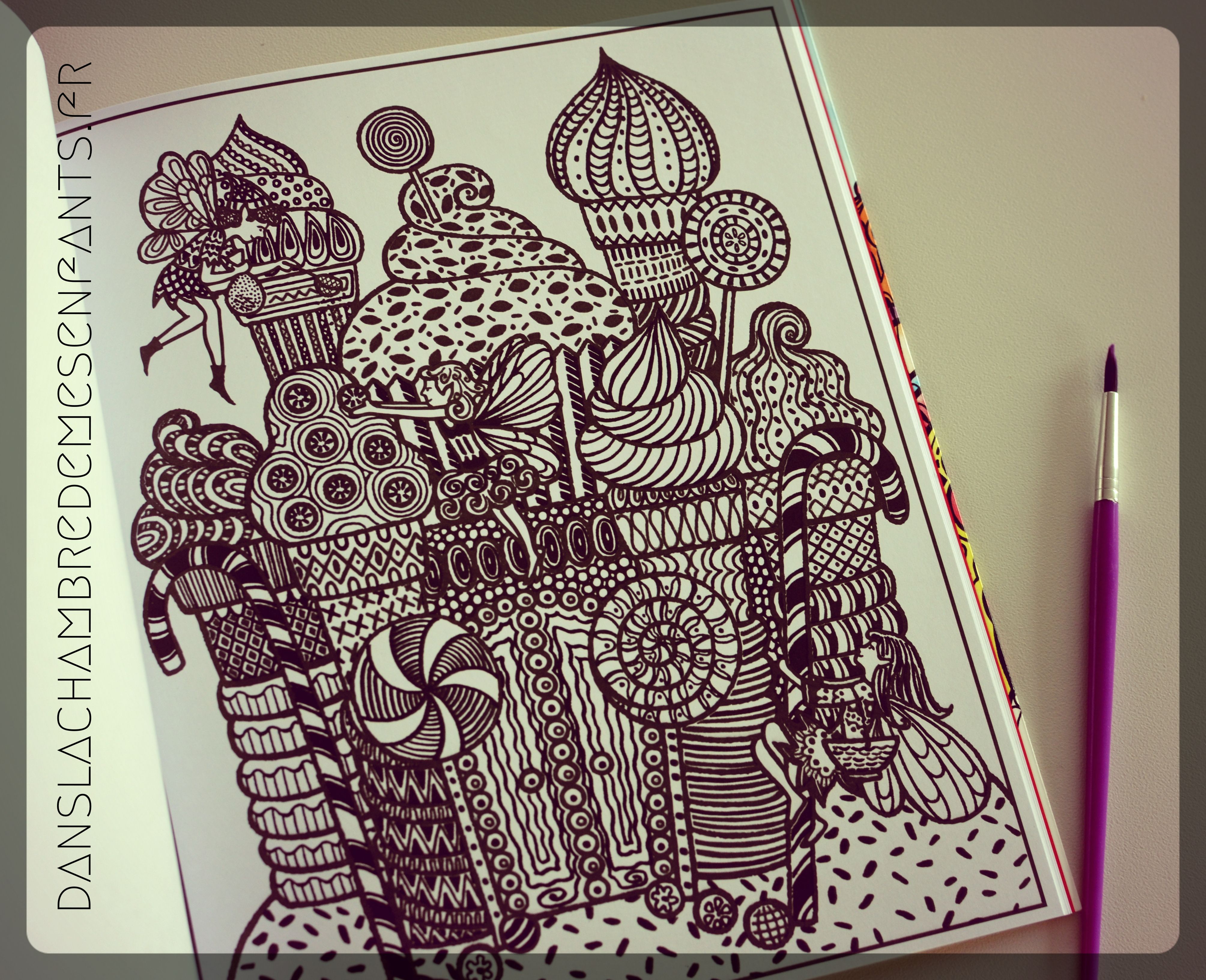 Un simple fond d’eau est suffisant et il est utile de nettoyer légèrement le pinceau avec une feuille de papier absorbant avant de commencer le remplissage d’une autre zone. C’est de nouveau un bel ouvrage qui étonne et enchante les enfants, tout en étant bien pratique par le côté économique et propre de l’atelier. Il est conseillé à partir de 5 ans cependant il me semble pertinent de le réserver aux enfants à partir de 6 ans car les illustrations contiennent souvent de petites zones (ex : la composition complexe du palais de sucreries, le château en champignon…) et du fait de l’utilisation d’un pinceau peu épais. Je préfère cet outil plutôt que le feutre (évitant d’abîmer la feuille en passant trop souvent sur la même zone) cependant j’aime davantage les illustrations du livre de Noël et j’avoue ne pas trop aimer le choix des couleurs.