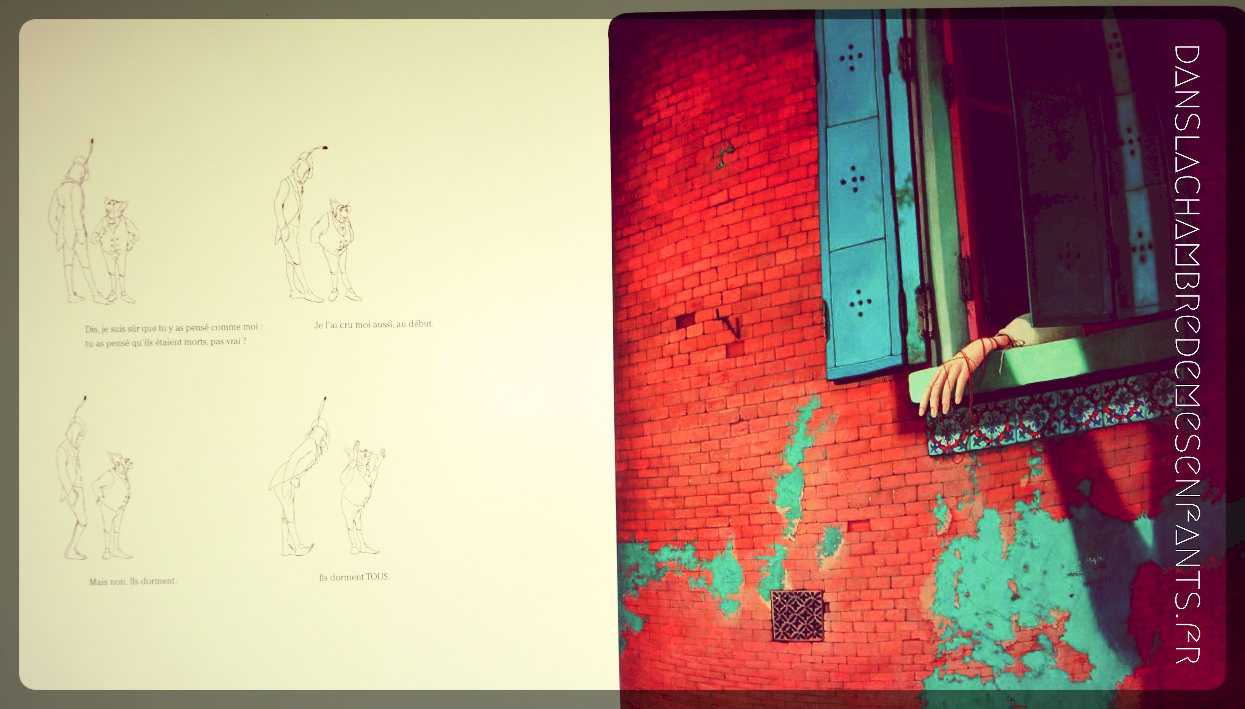 Les illustrations prennent beaucoup de place par leur beauté. On les retrouve parfois seules pour marquer des temps calmes car elles participent complètement à la narration (c’est vous dire ce qu’elles dégagent !). Le format est très personnel pour renforcer le côté décalé de l’histoire : deux personnages, dessinés en noir et blanc discutent, comme dans une aparté, d’une ville endormie où ils se baladent représentée en couleurs et sous des traits travaillés. Et s’il s’agissait d’un enchantement, un vrai… et qui aurait besoin d’un prince ? Si chacun ne restait pas spectateur et que l’on prenait le risque de passer de l’autre côté, de changer l’histoire…