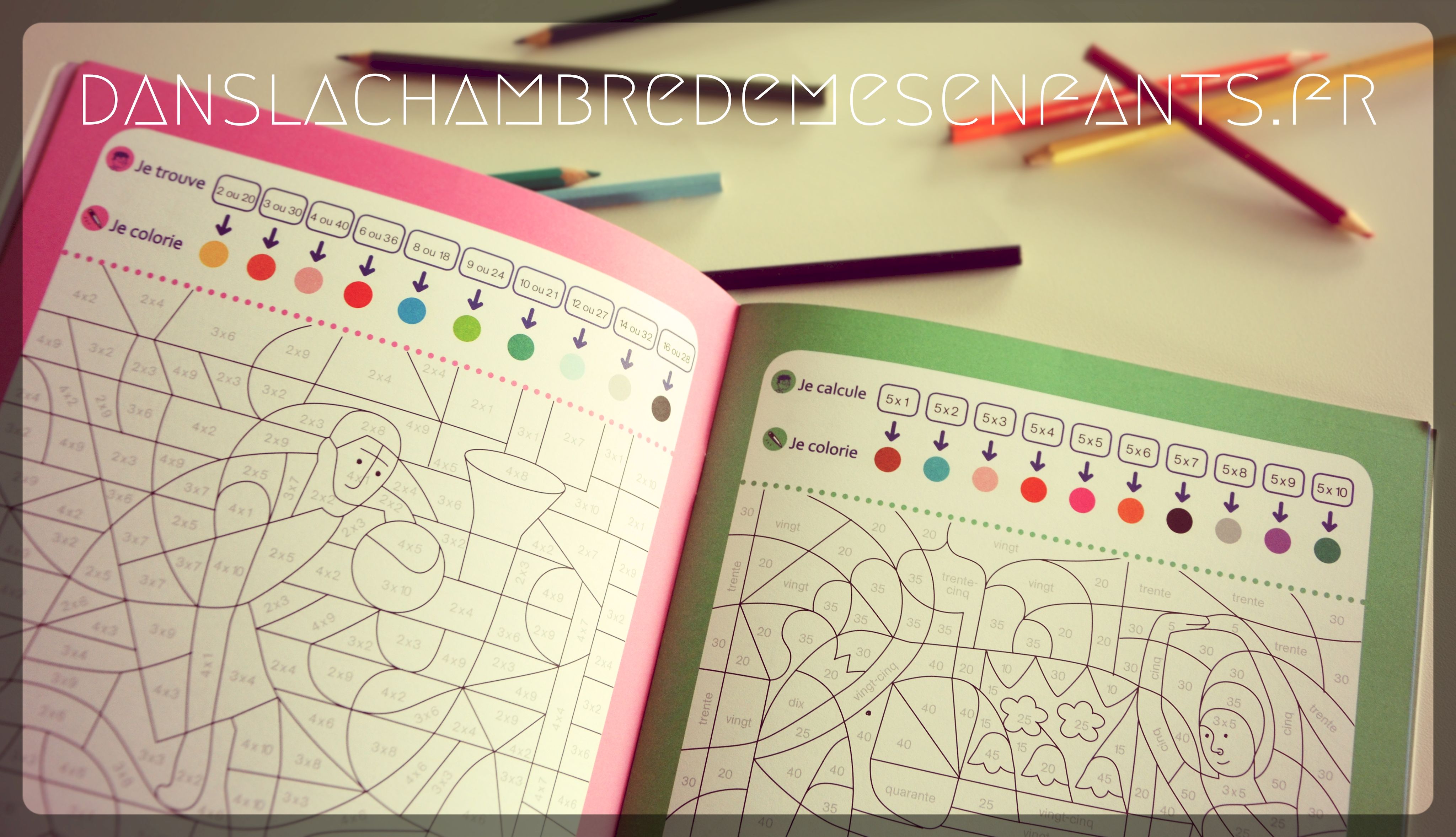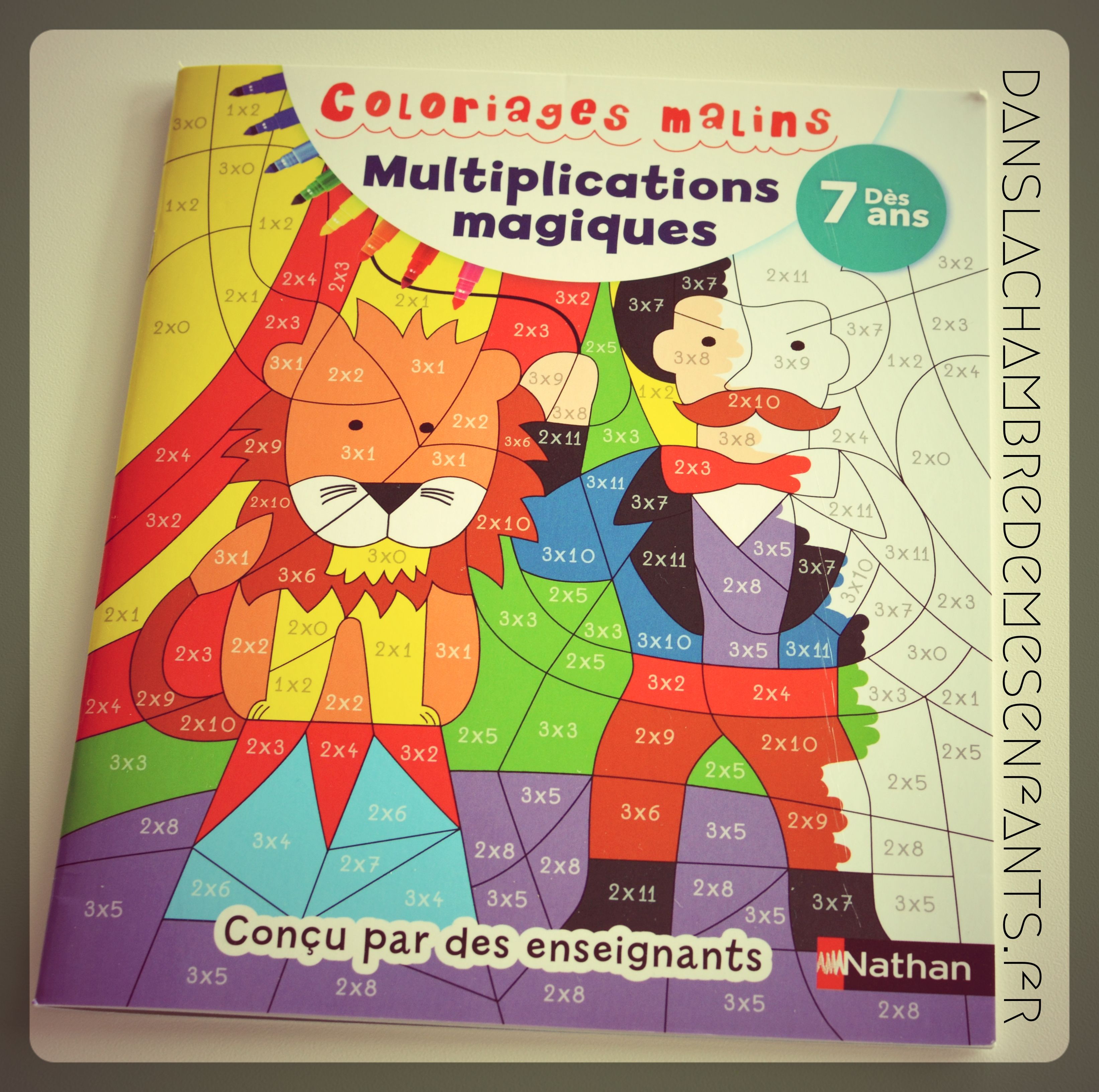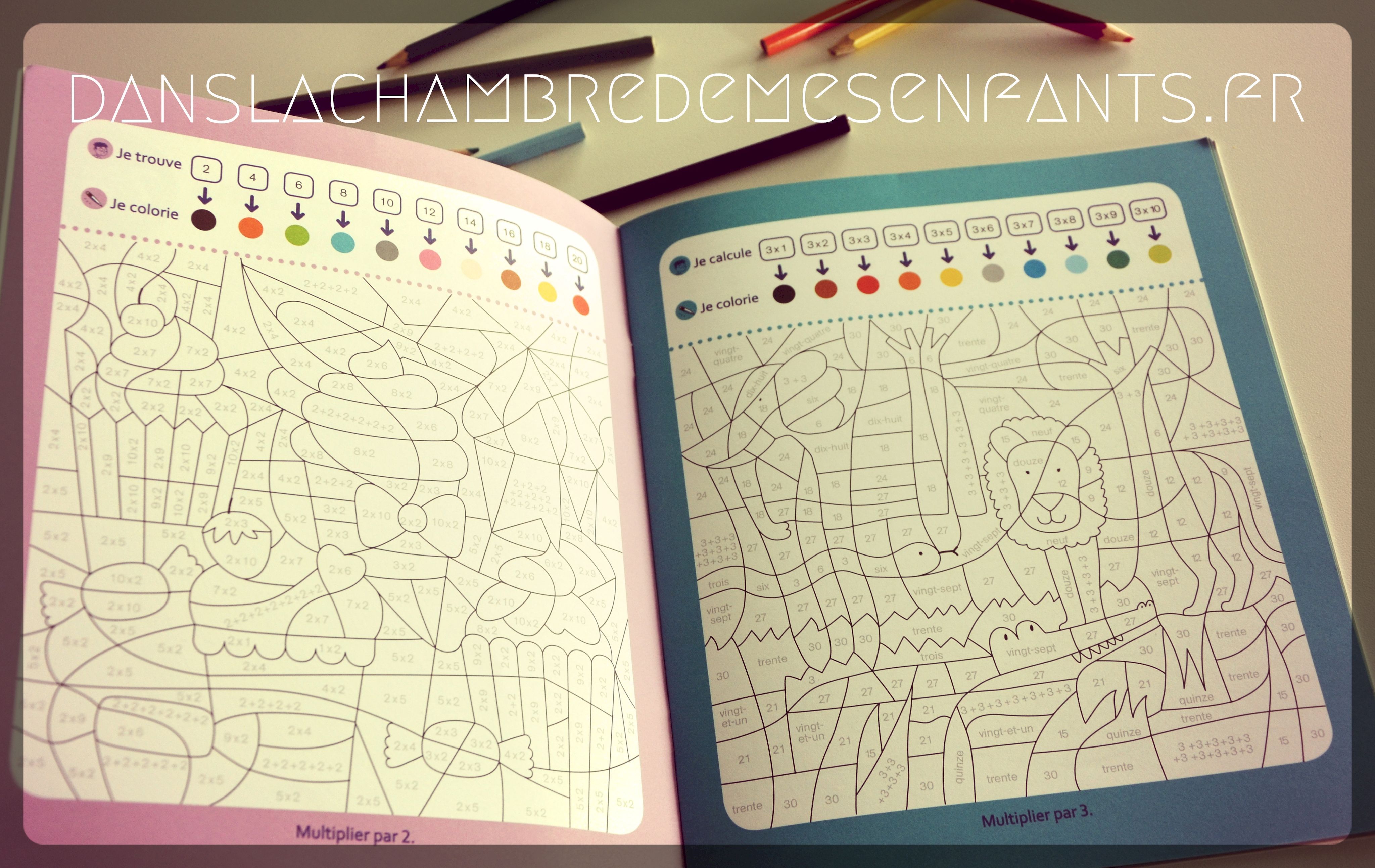 Cette fois-ci il est question d’un ouvrage ludique et axé sur un seul type de calcul, la multiplication. En effet, il a été conçu par une enseignante pour reprendre cet exercice à travers des tableaux à colorier de façon codifiée uniquement.