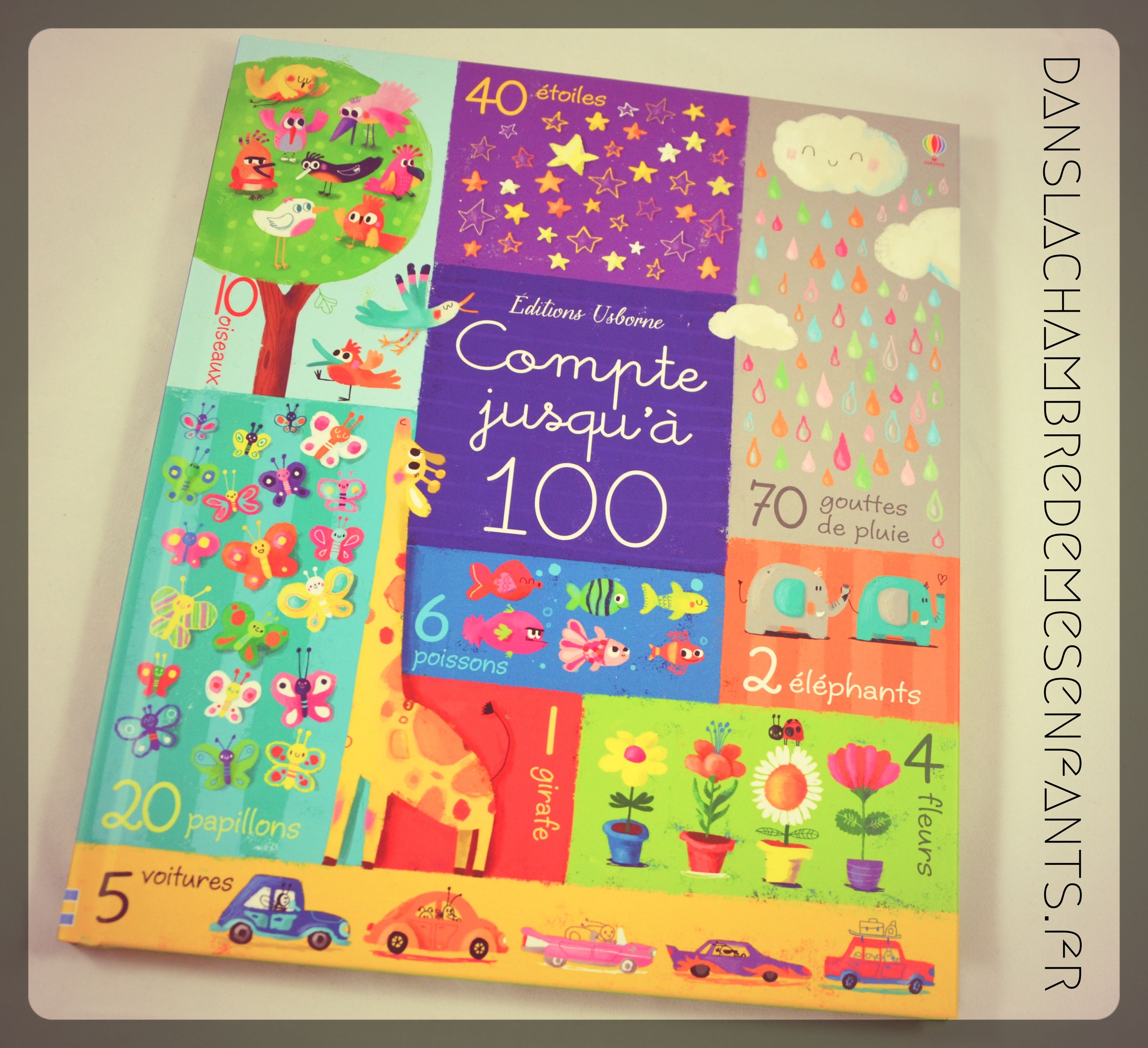 Cet ouvrage n’est pas sans me rappeler « Le grand livre des couleurs » et il me plaît tout autant ! Il s’agit d’un grand livre cartonné qui guide l’enfant, à partir de 3 ans, vers un comptage jusqu’à 100 à travers de nombreuses illustrations très colorées.