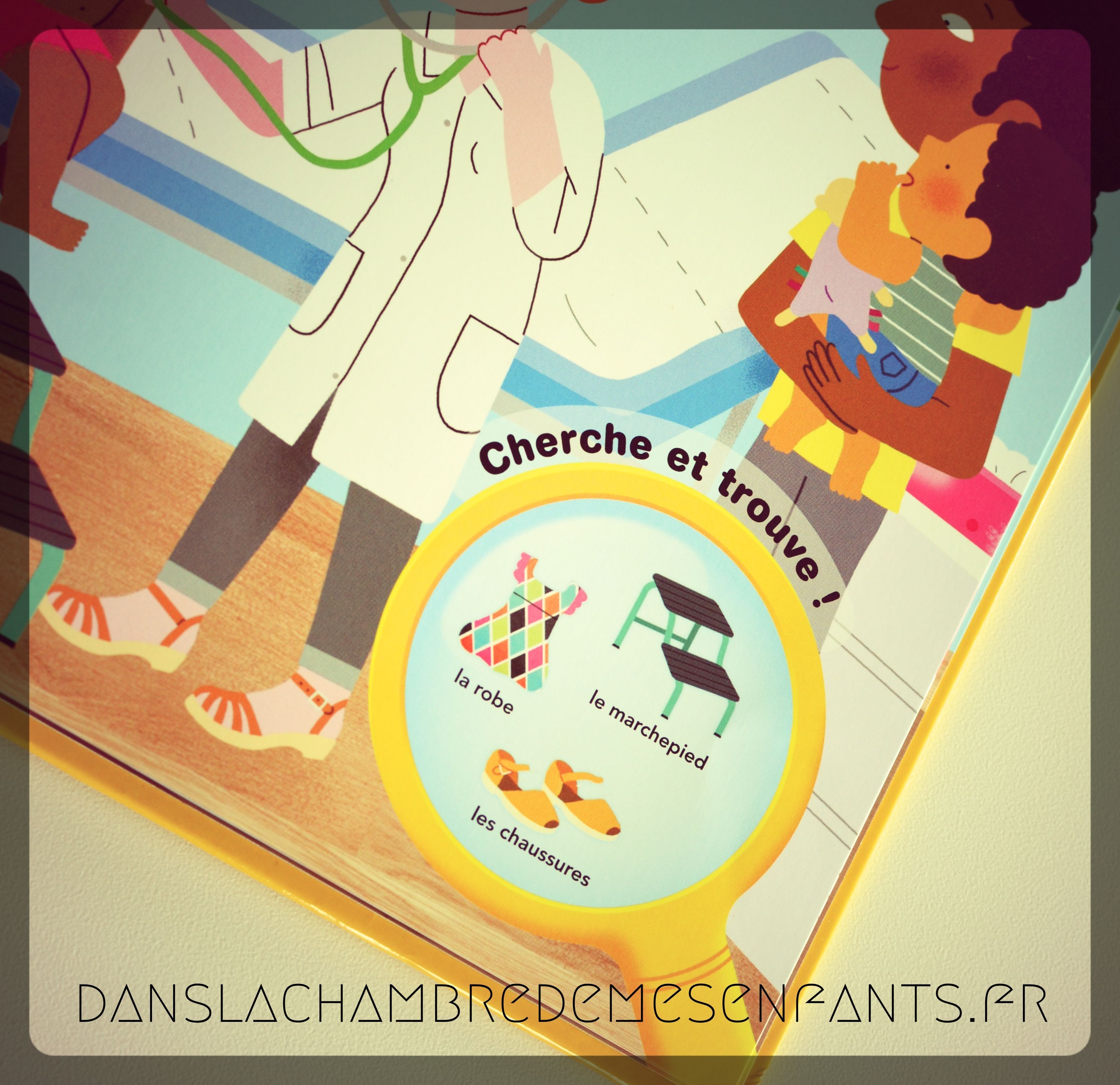 L’avis des enfants : Emi, 2 ans, est maintenant habituée aux « Questions-Réponses » et je lui confie volontiers puisqu’ils sont assez résistants. Ce titre l’a intéressée car elle a gardé le souvenir du dernier vaccin et, depuis, elle va chez le docteur… à reculons ! Cela n’a pas changé sa vision (j’ai espoir…) mais elle se familiarise avec ce « passage obligé » sous un format qui est parlant pour elle (livre) et de façon agréable. Je lui représenterai avant le prochain rendez-vous (merci d’avoir pensé à la question « Est-ce qu’il est gentil, le docteur ? ») ! De plus, elle aime énormément le jeu de recherche.