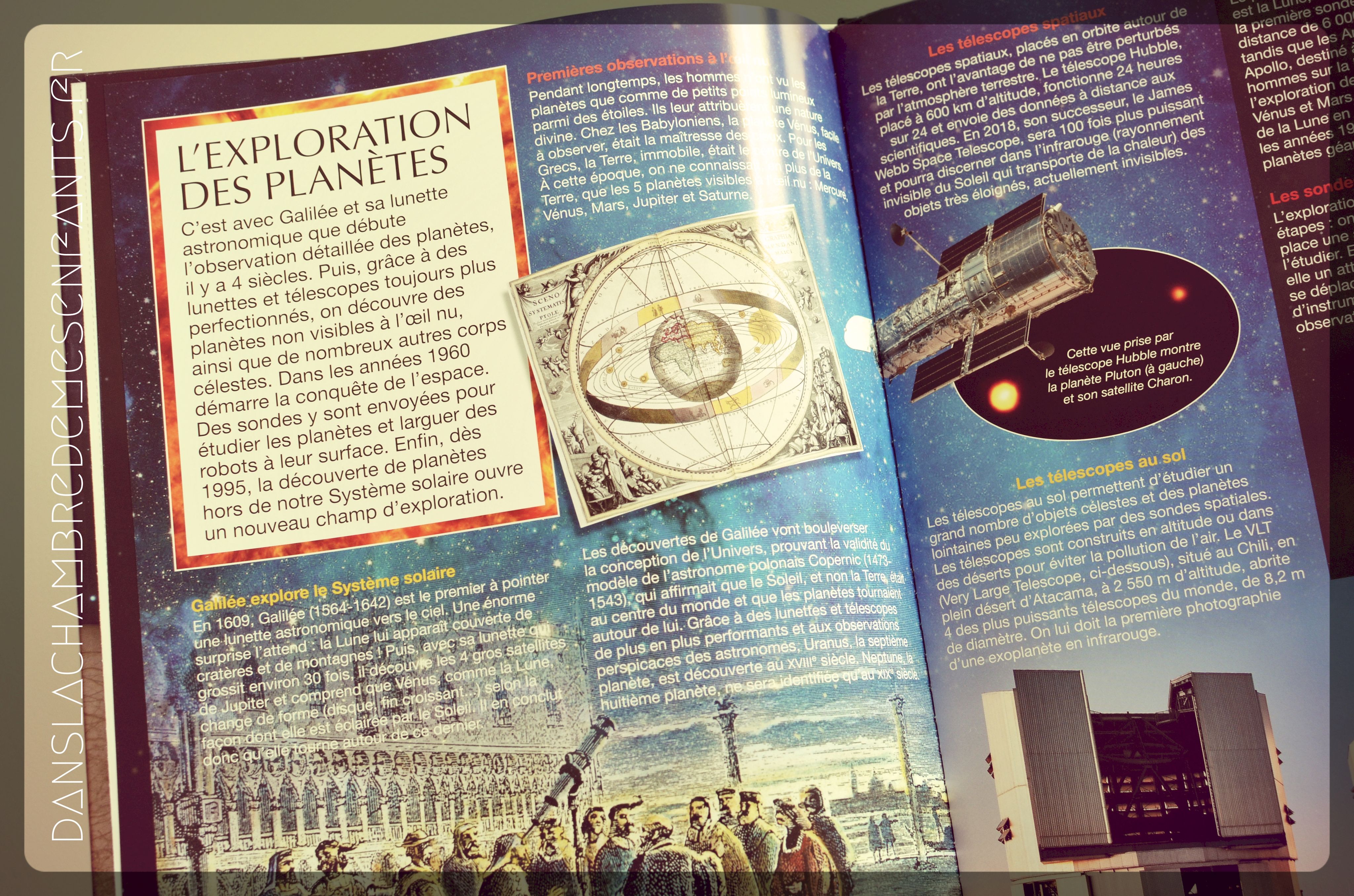 - L’exploration des planètes : « Premières observations à l’œil nu », « Les télescopes au sol »…