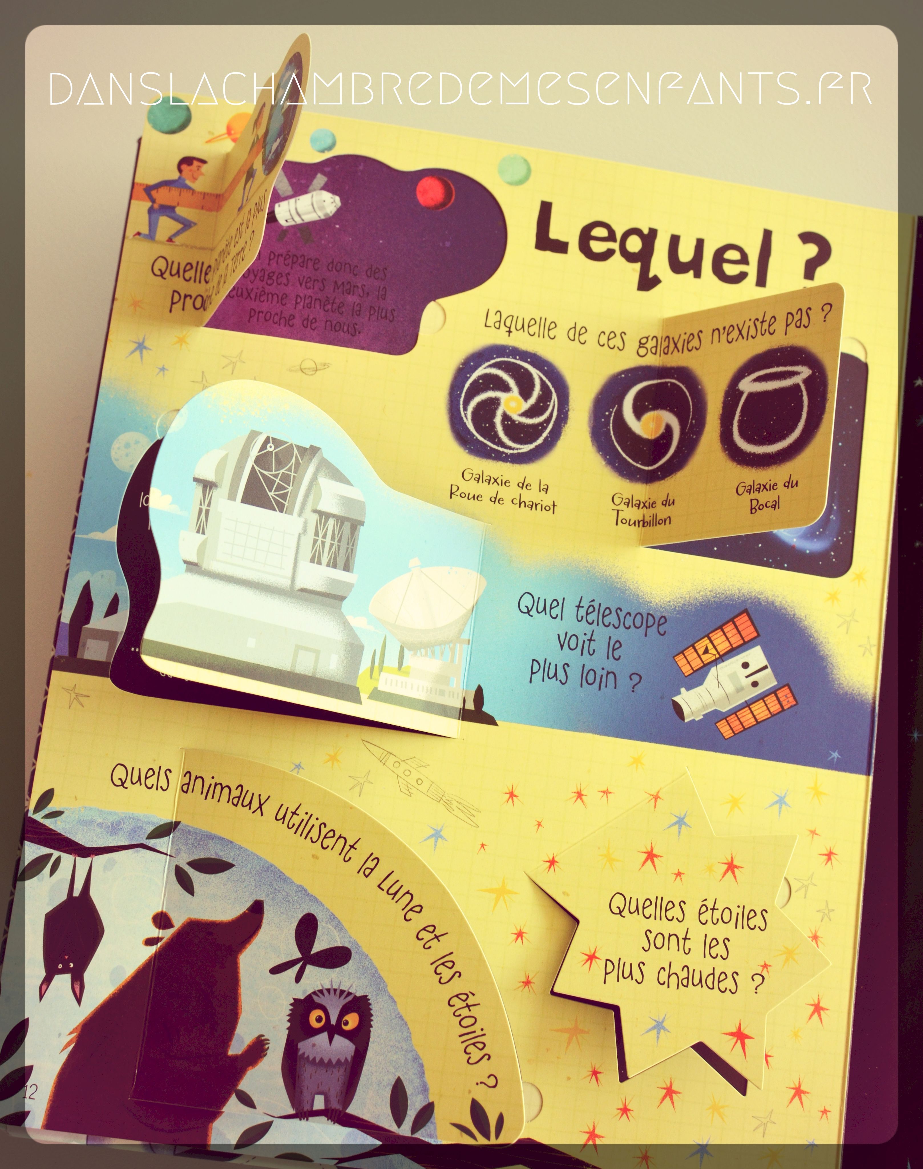 C’est une lecture pertinente qui sait « parler » aux enfants, à partir de 5 ans : un jeu d’animations très nombreuses auquel ils ne peuvent pas résister (complété par une sorte de quiz), un sujet détaillé autour de questions brèves et intéressantes ; les 2 réunis, permettent une lecture « à la carte », en soulevant le rabat choisi, même au hasard. J’étais déjà fan de cette collection et c’est vraiment mon coup de cœur.