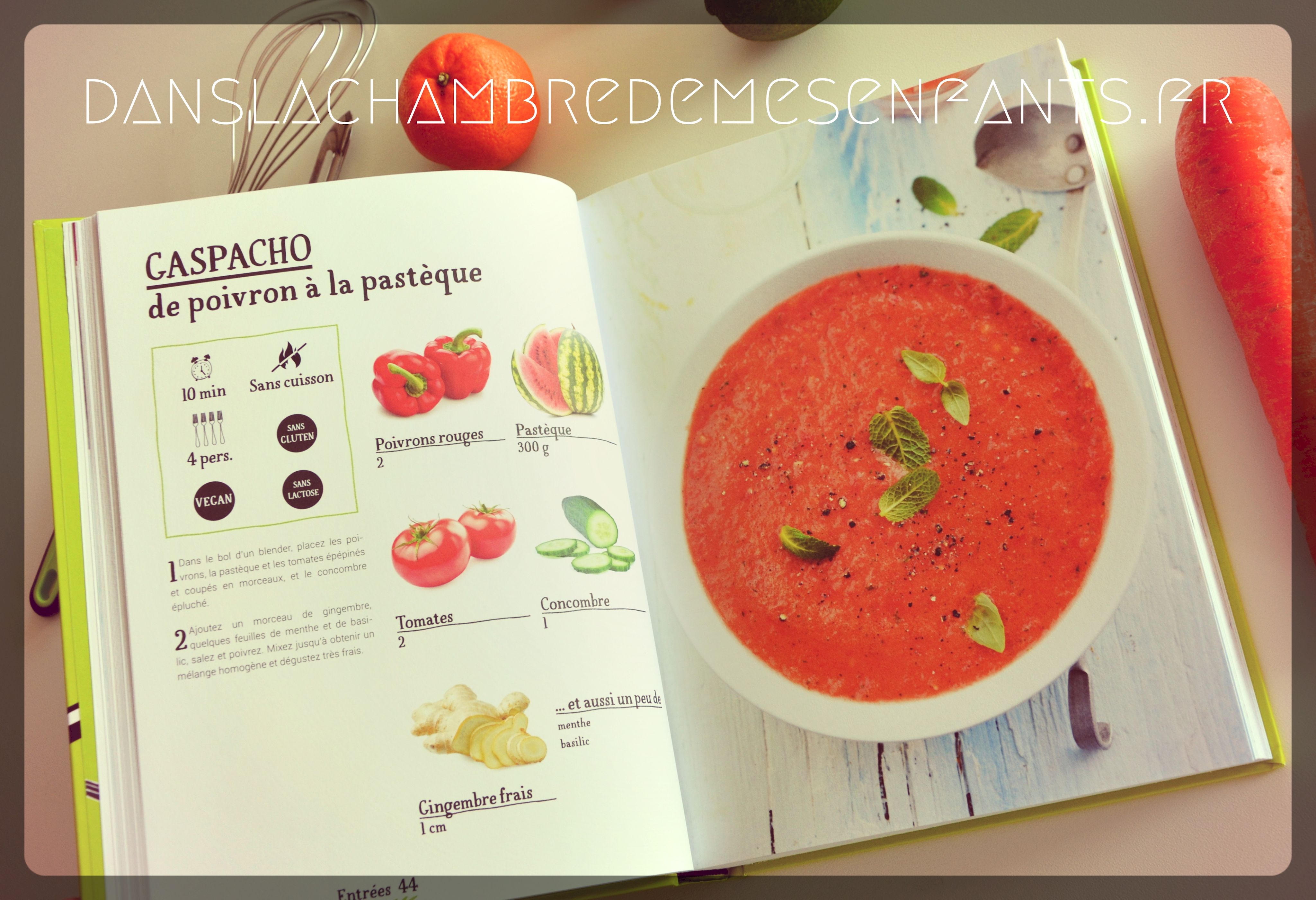 Cet ouvrage est bien épais car il renferme 200 recettes. Pour alléger le tout, il a un visuel moderne et très coloré. Les recettes ont aussi une présentation simplifiée avec, en 1er plan, les ingrédients en photo puis la recette en 2 ou 3 étapes, accompagnée d’une grande photo. Ce format n’est pas commun et il me plaît beaucoup : je trouve qu’il participe à me donner envie et à m’encourager à adopter l’ouvrage.