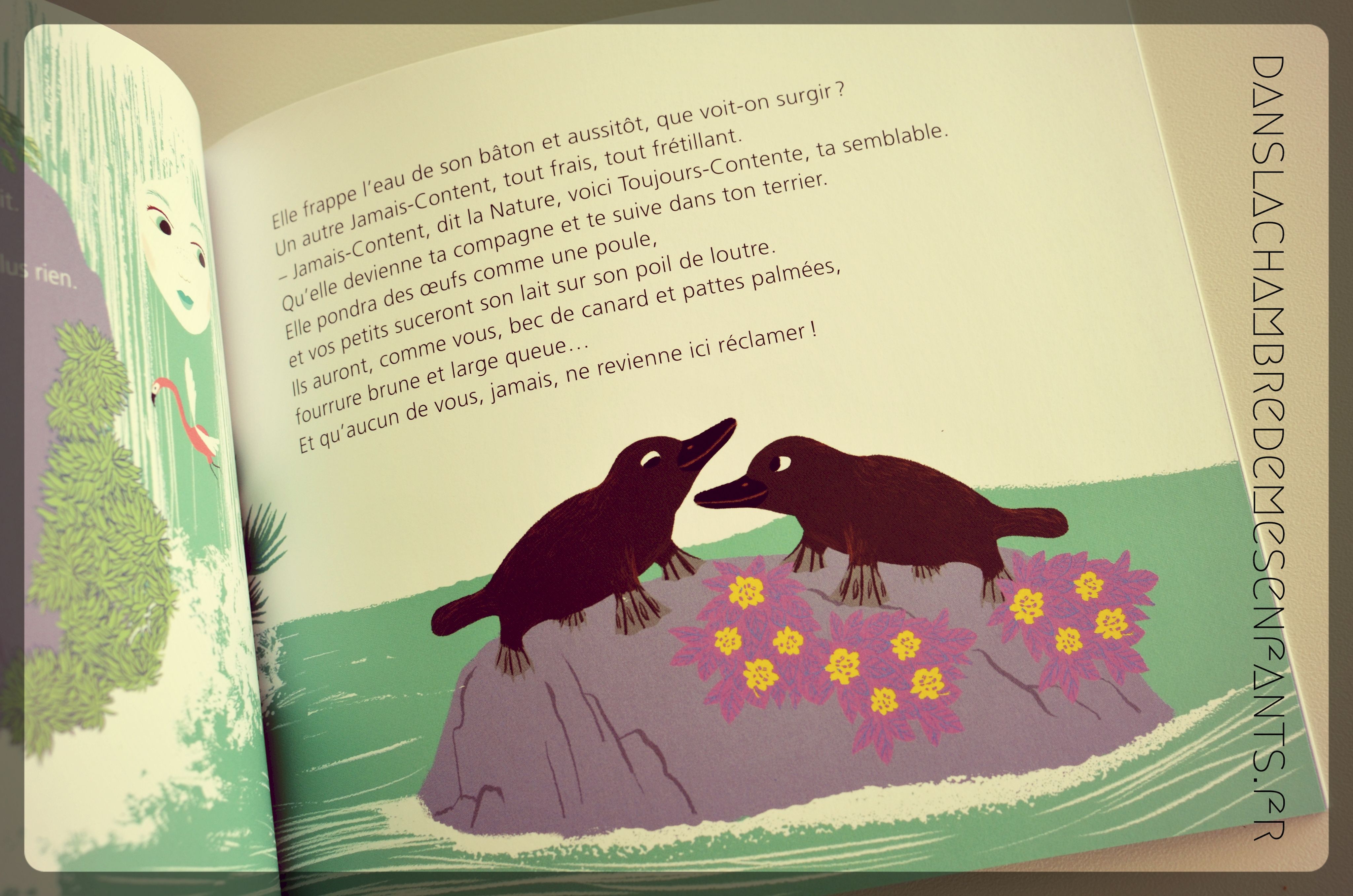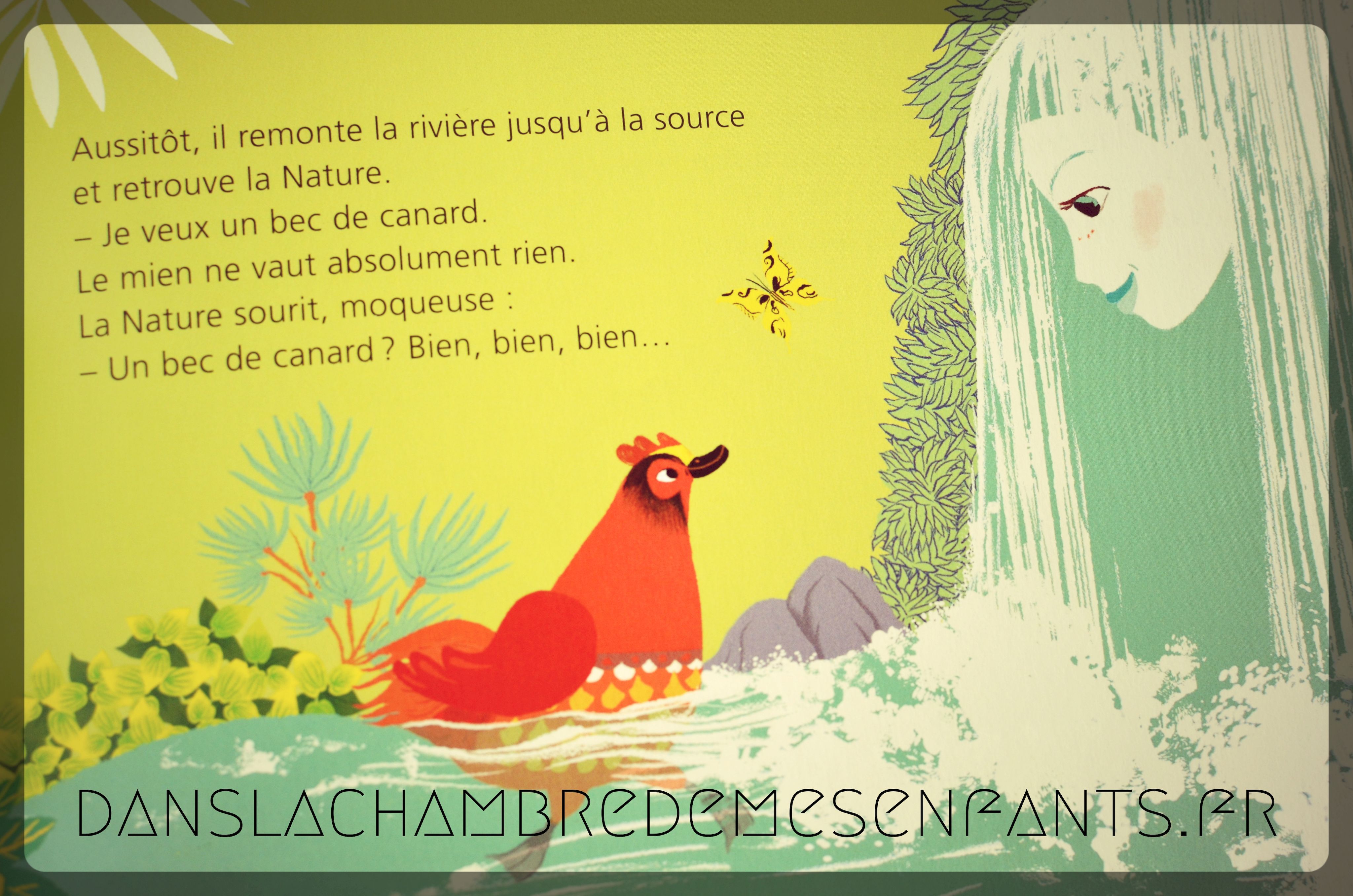 Le format est allégé par une couverture souple et de petites dimensions qui permettent d’en faire facilement la collection (également grâce à son prix). Pour faciliter le choix (ils sont nombreux tout de même) les ouvrages sont classés, celui-ci portant sur les origines, la différence et l’humour. Il est accessible dès 4 ans. Je tiens à relever la beauté des illustrations qui apportent de la modernité et beaucoup de vie (jolie Dame Nature !).