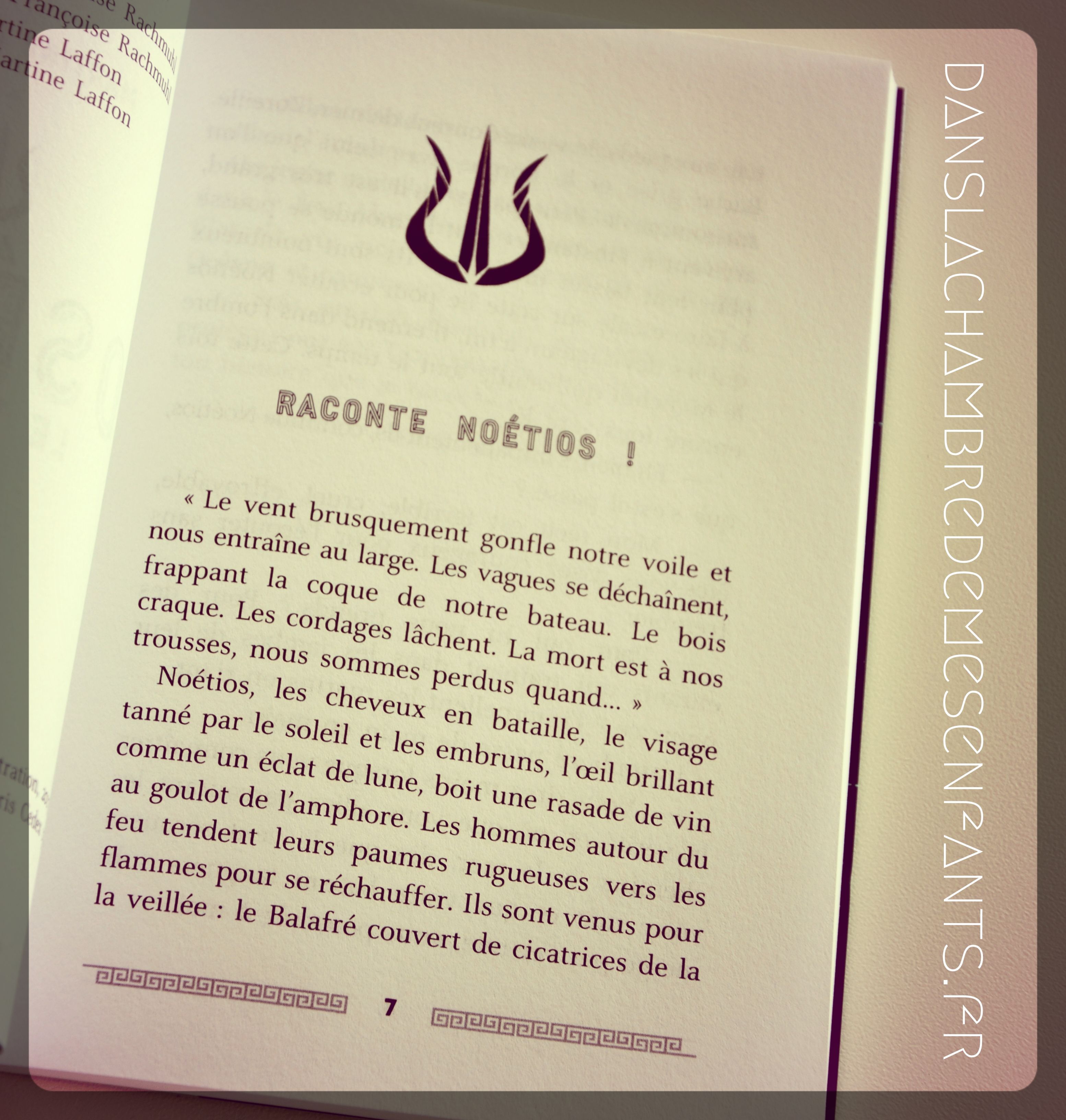 Il est ici question de découvrir le grand Poséidon à travers le récit de Noétios, un conteur choisi par le Dieu de la Mer et de la Terre, qui commence ainsi : « Le vent brusquement gonfle notre voile et nous entraîne au large. Les vagues se déchaînent, frappant la coque de notre bateau. Le bois craque. Les cordages lâchent. La mort est à nos trousses, nous sommes perdus quand… […] Vous rirez moins lorsque vous connaîtrez la vérité et, où que vous alliez parcourant les chemins de la mer, dès que le vent secouera votre mât et que votre bateau tanguera submergé par l’écume, vous penserez à moi. » L’histoire est racontée à des marins, durant 7 soirs, à la lueur d’un feu de bois et ce pendant des millénaires encore sur des îles inconnues du royaume des Mers.