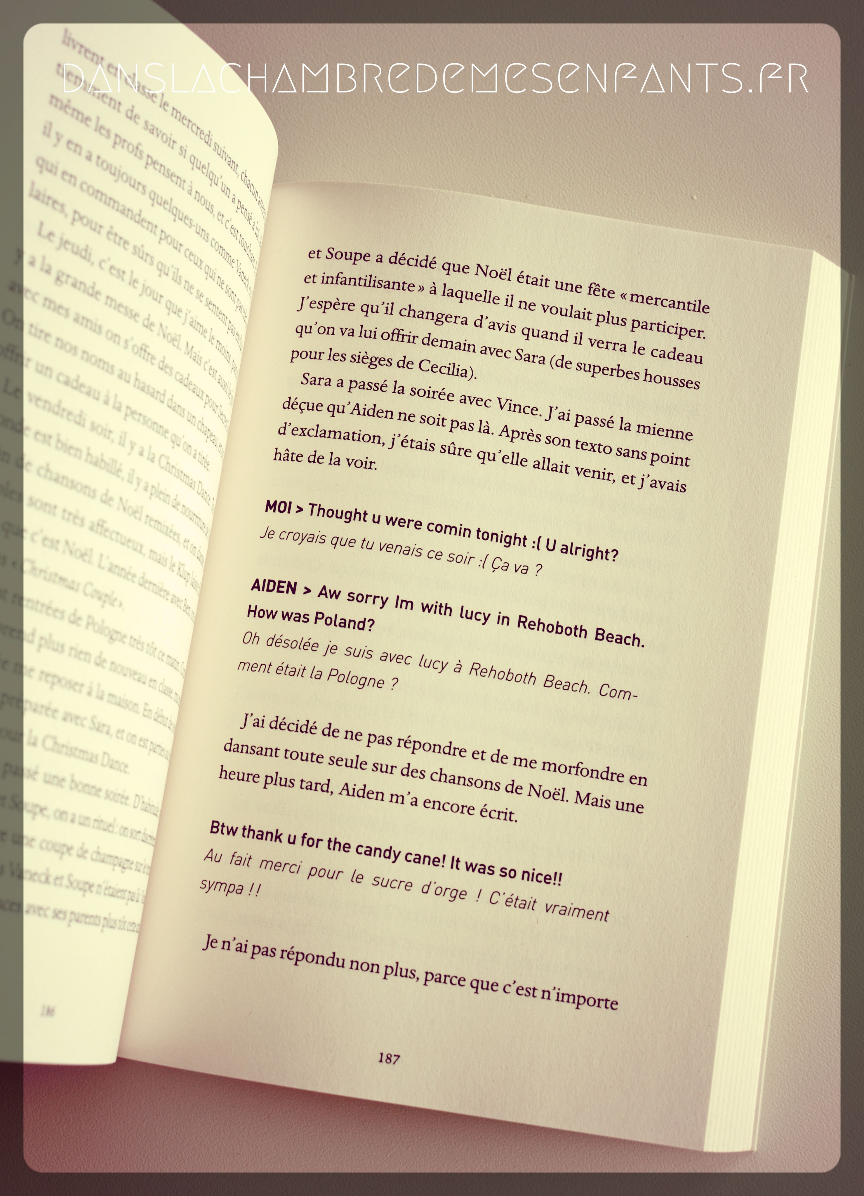 Voici un roman bien de son époque puisqu’il s’agit d’un blog, celui de Capucine, une adolescente américaine d’origine française. Elle y raconte son année scolaire, ses rencontres et surtout celle avec Aiden. Leur proximité lui fera découvrir des affinités avec sa nouvelle amie qui changeront sa vie. La découverte de son homosexualité sera un tournant raconté simplement et progressivement, ce qui mettra son cœur (sa vie) en joie.
