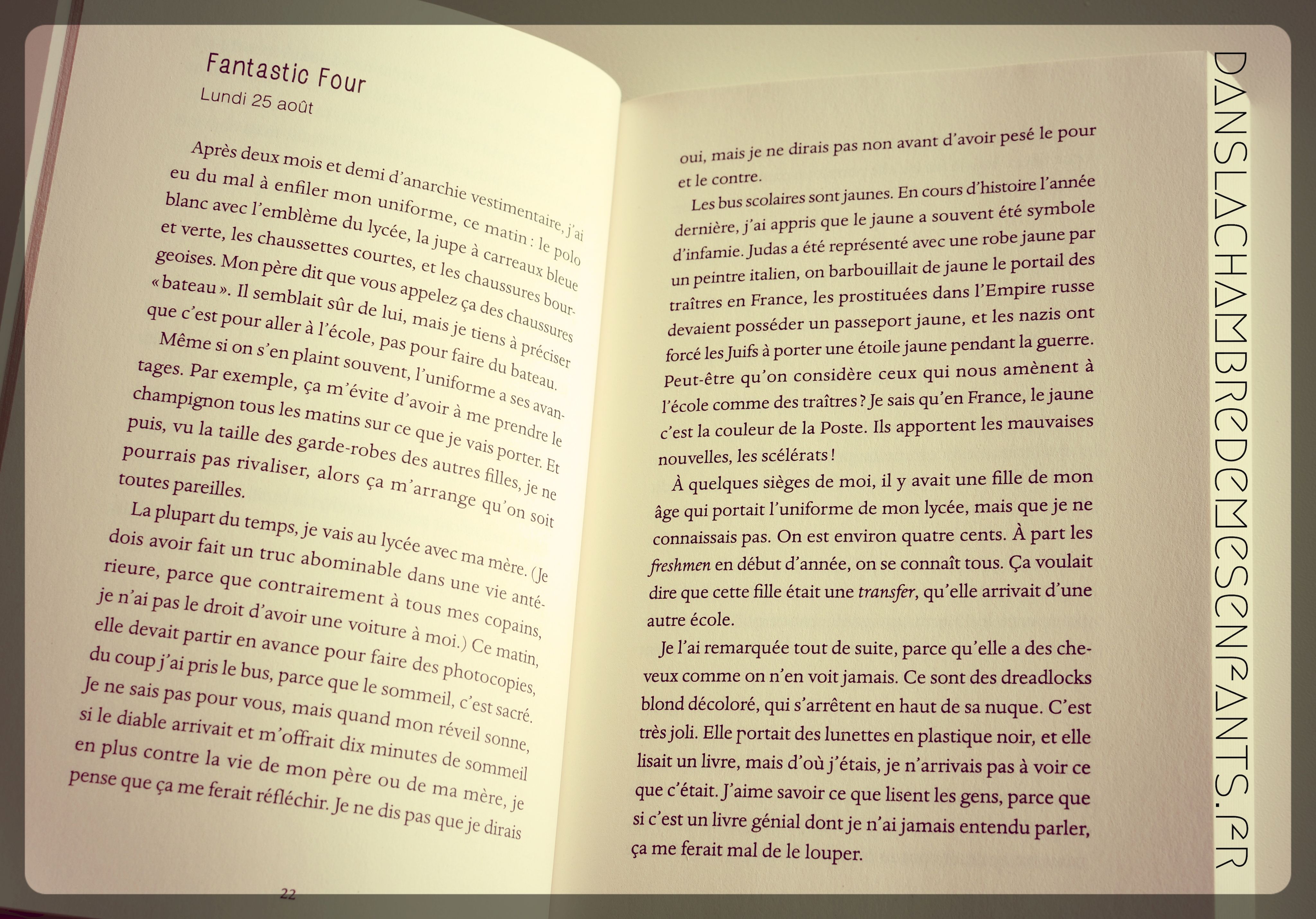 De par sa forme, cette lecture est accessible aux jeunes lecteurs, à partir de 14 ans, mais elle me semble susceptible d’être davantage appréciée par les filles, souvent plus intéressées par les histoires humaines. Personnellement, je trouve la narration agréable et assez documentée pour faire une immersion dans la vie à l’américaine. Cependant, je trouve le récit un peu trop linéaire pour un blog, d’autant plus que le texte est très développé.
