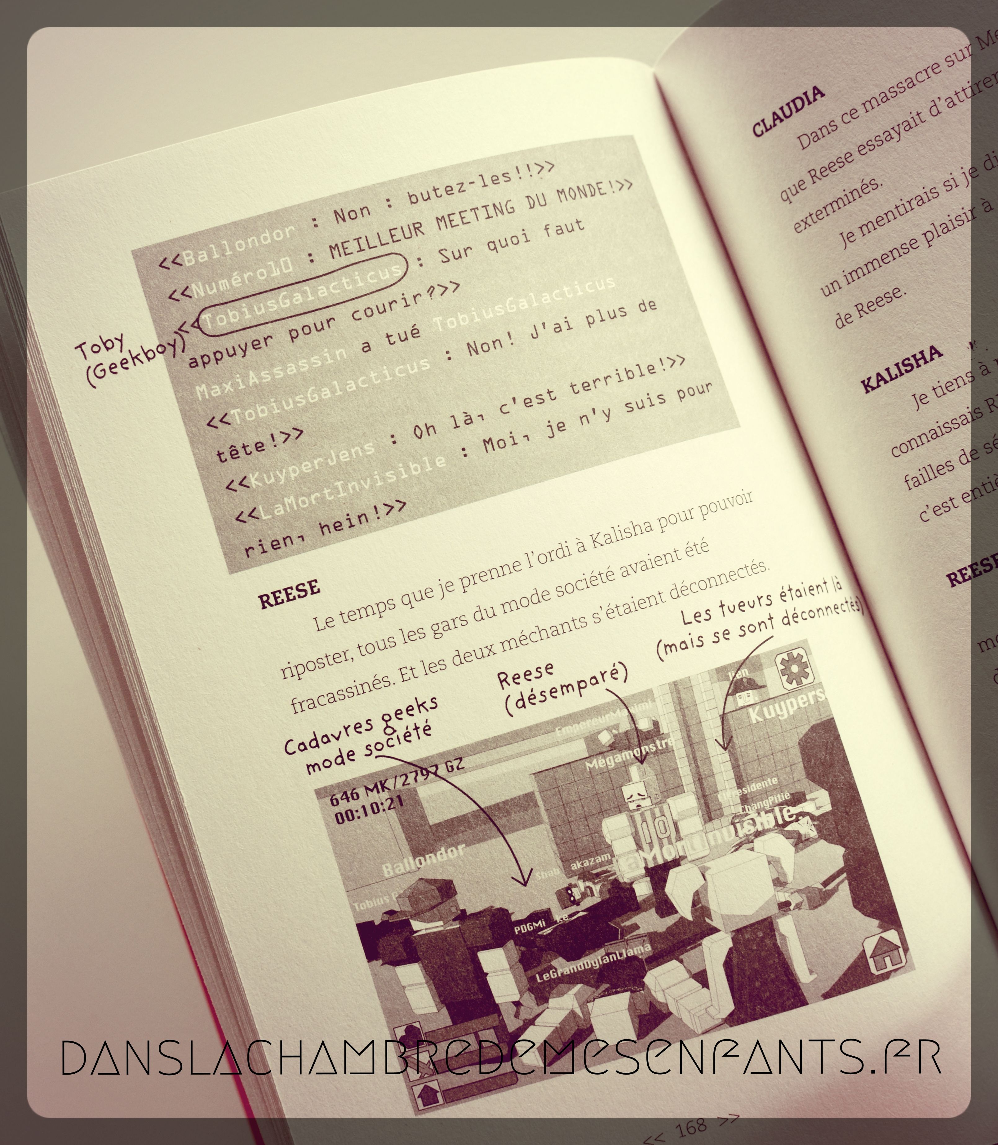 Les personnages expliquent brièvement à leur tour l’histoire, entrecoupée de croquis, d’annotations, de photos, textos… une « histoire orale » qui fait le caractère de la collection. Cela peut paraître un peu désorganisé mais cela dynamise assez la lecture pour capter l’attention des pré-ados, à partir de 10 ans. Le style est intéressant et assez captivant même si tout va un peu vite (il faut le dire) !
