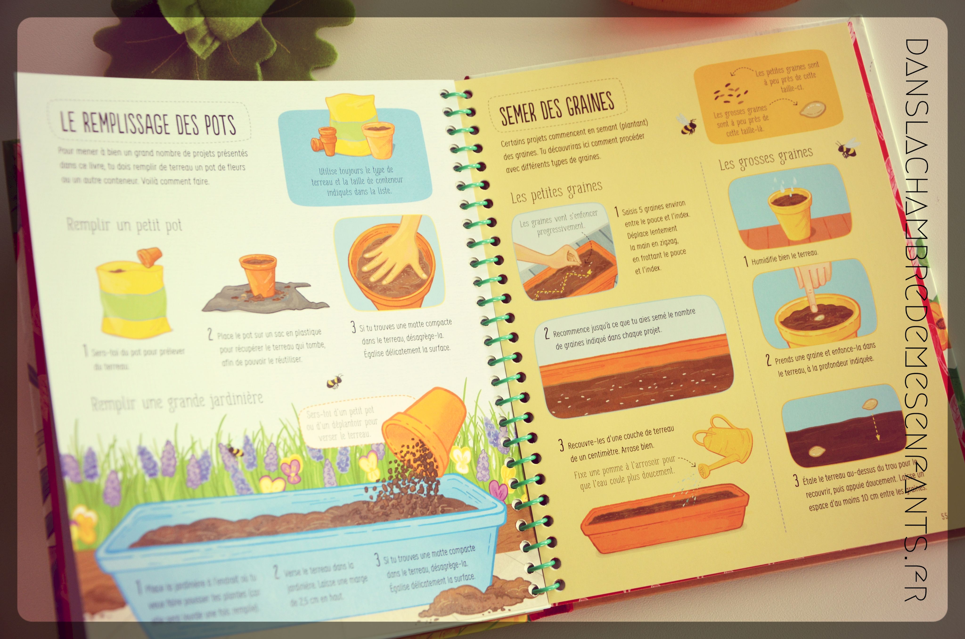 Voici un ouvrage plus pratique pour les enfants à partir de 7 ans, qui peut tout de même être entrepris avec des plus jeunes de façon plus sommaire. Il présente le même format solide que « Le livre du petit écrivain » et il propose de parfaire l’apprentissage grâce à des informations générales et des pas-à-pas de plants différents :
