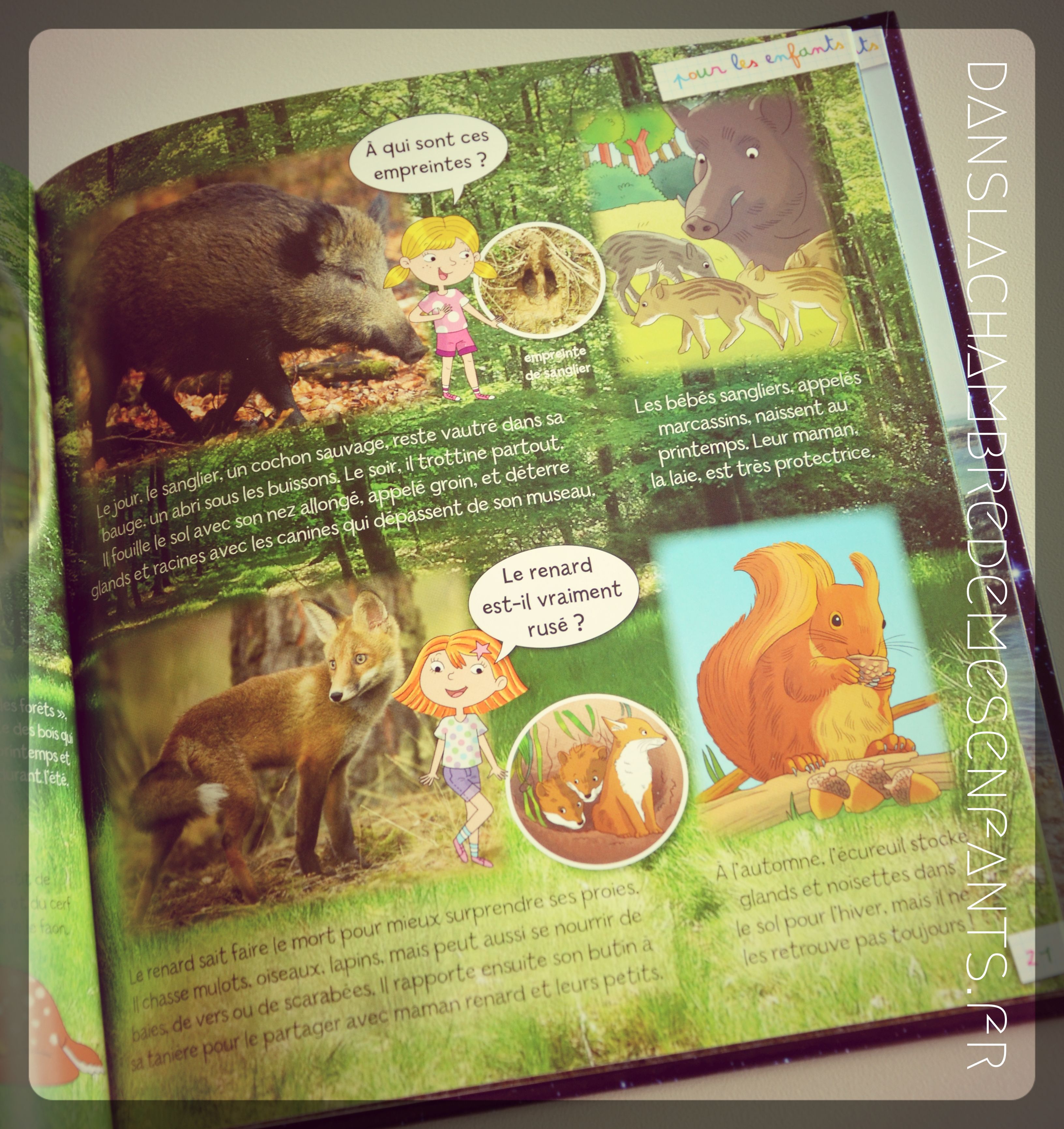On retrouve le petit format, fourni et coloré, de la collection « Pour les enfants » mais cette fois-ci sur le sujet précis des animaux. L’ouvrage est très documenté et à double lecture puisque, d’une part, de courts commentaires présentent les différentes parties, illustrés de photos voire de dessins, souvent sous légendes, et, d’autre part, des enfants dessinés avec beaucoup de rondeurs posent des questions et se mettent en situation (ex : dans la savane).