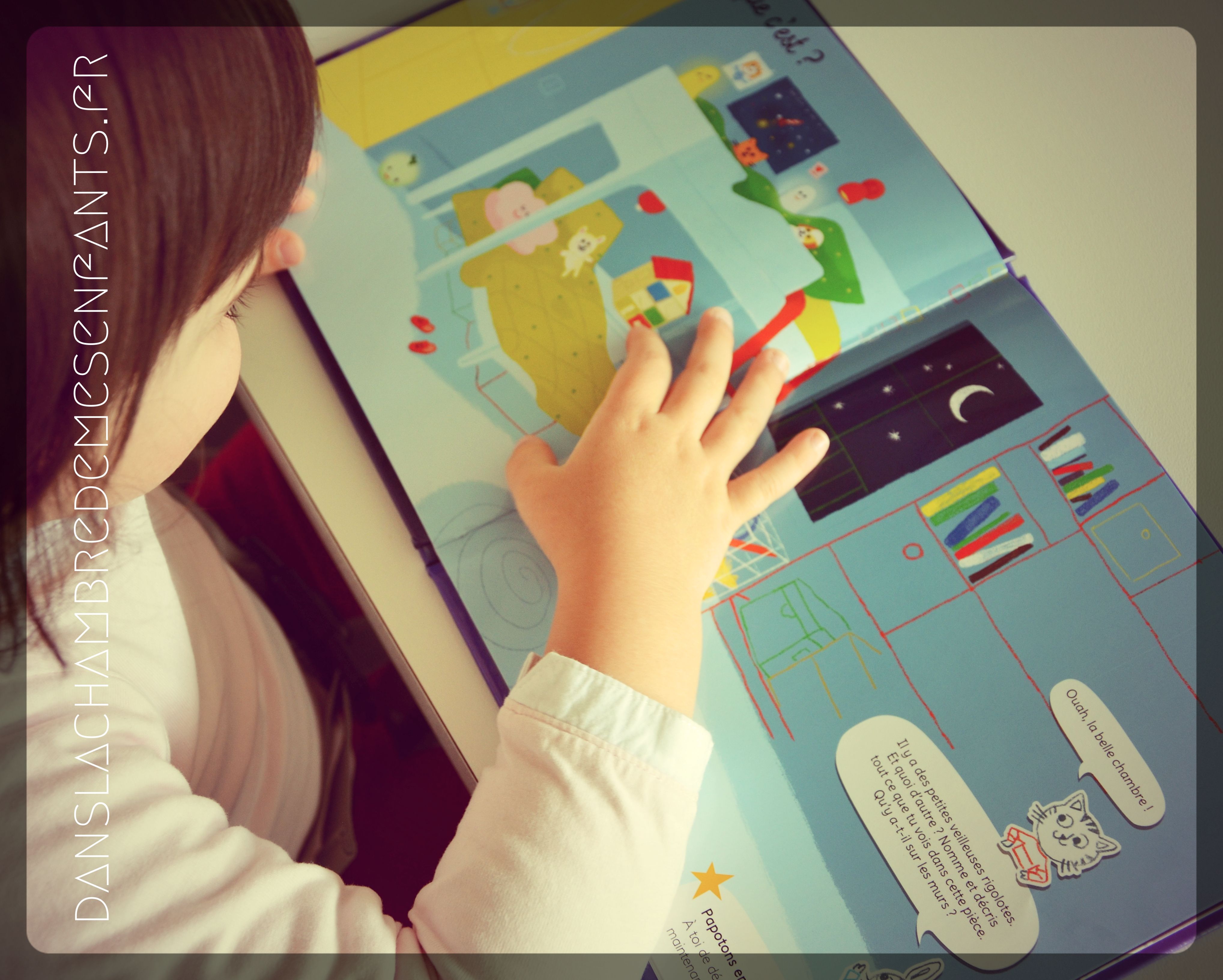 Dans ces ouvrages, il est question d’apprendre et/ou de développer l’expression orale à travers des scènes du quotidien : oui, ici ce sont les enfants qui font le texte de l’histoire accompagnés de 2 petits bavards.