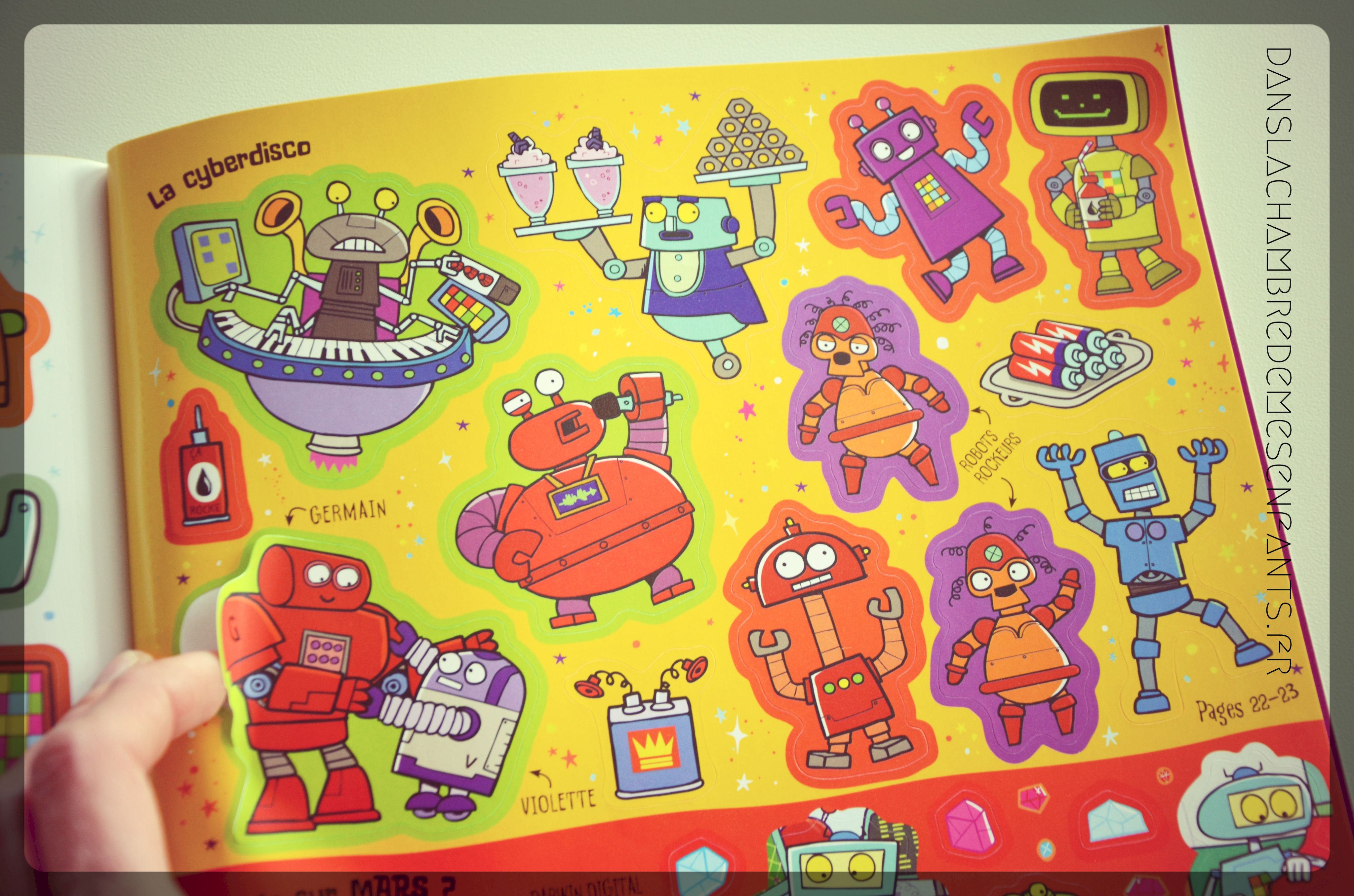 Il est cette fois-ci question du monde des robots, à travers 12 tableaux accompagnés de commentaires racontant à la façon d’une petite histoire et permettant de comprendre une logique pour la disposition de certains stickers (ex : « Gus Anvert se débat avec le flux d’énergie ») : Le centre de contrôle, Fait à Roborantin, La ville robot, La ménagerie mécanique, Des droïdes dernier cri […] La vie sur Mars ? ».