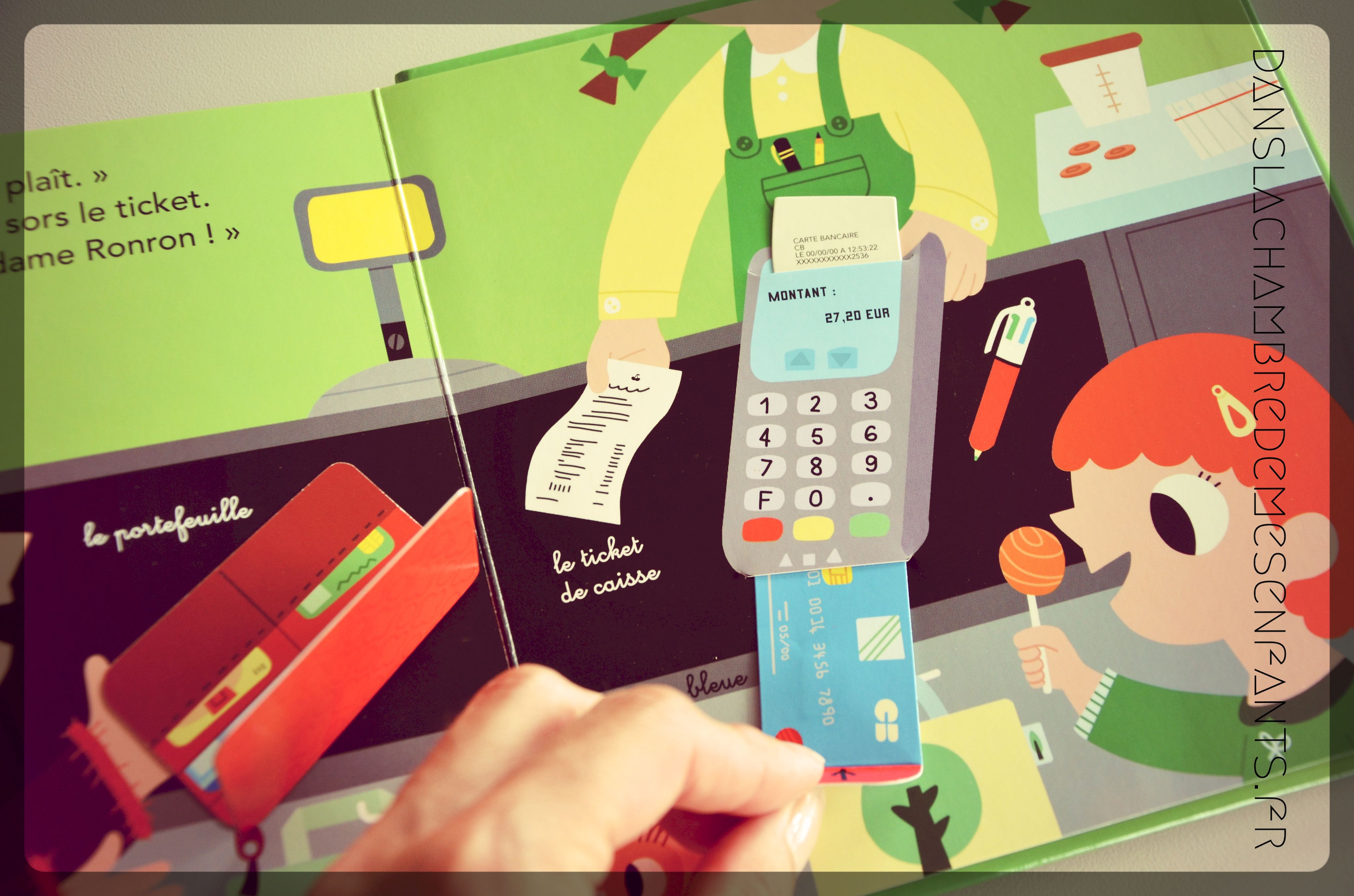 L’avis des enfants : Emi aime beaucoup cette collection. Elle est d’abord intéressée par les animations, ne donnant pas encore toute l’utilité aux connaissances contenues à travers les scènes (surtout les commentaires). C’est donc un ouvrage qui la suivra encore quelques temps. Elle a parcouru ce titre différemment, se prenant vraiment au jeu de la marchande en imitant la caissière (je sais que c’est indiqué dans le titre mais la mise en scène a apparemment bien été réalisée !).